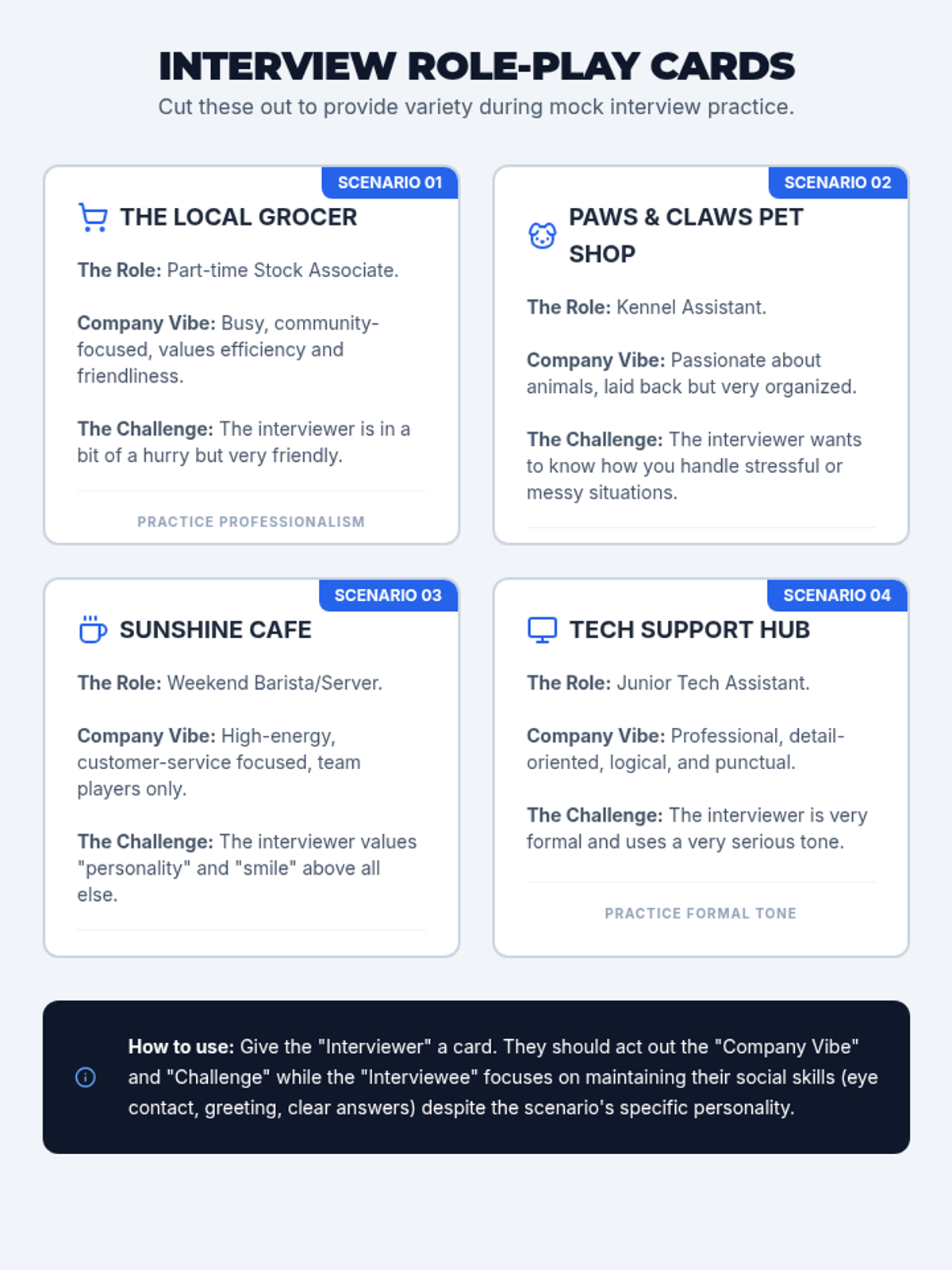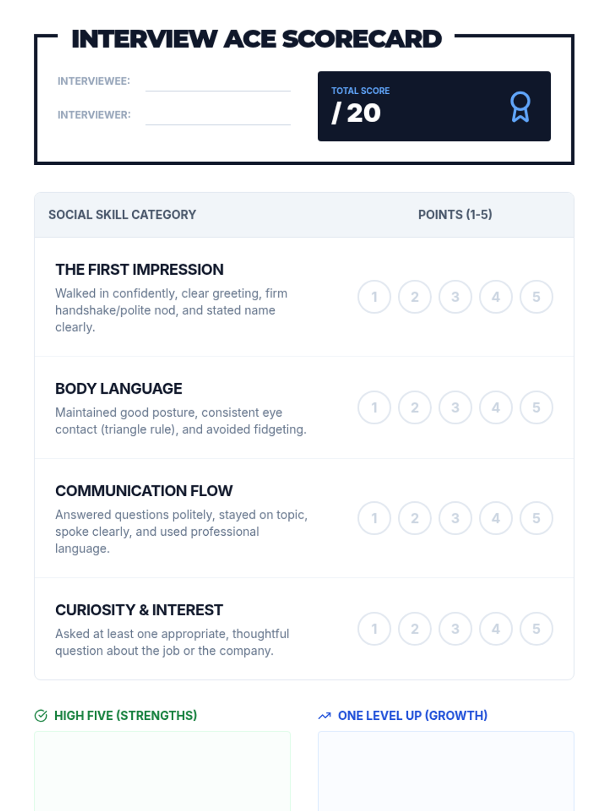 A comprehensive lesson designed to equip students with essential social skills for job interviews, including professional greetings, nonverbal cues, and effective communication strategies.