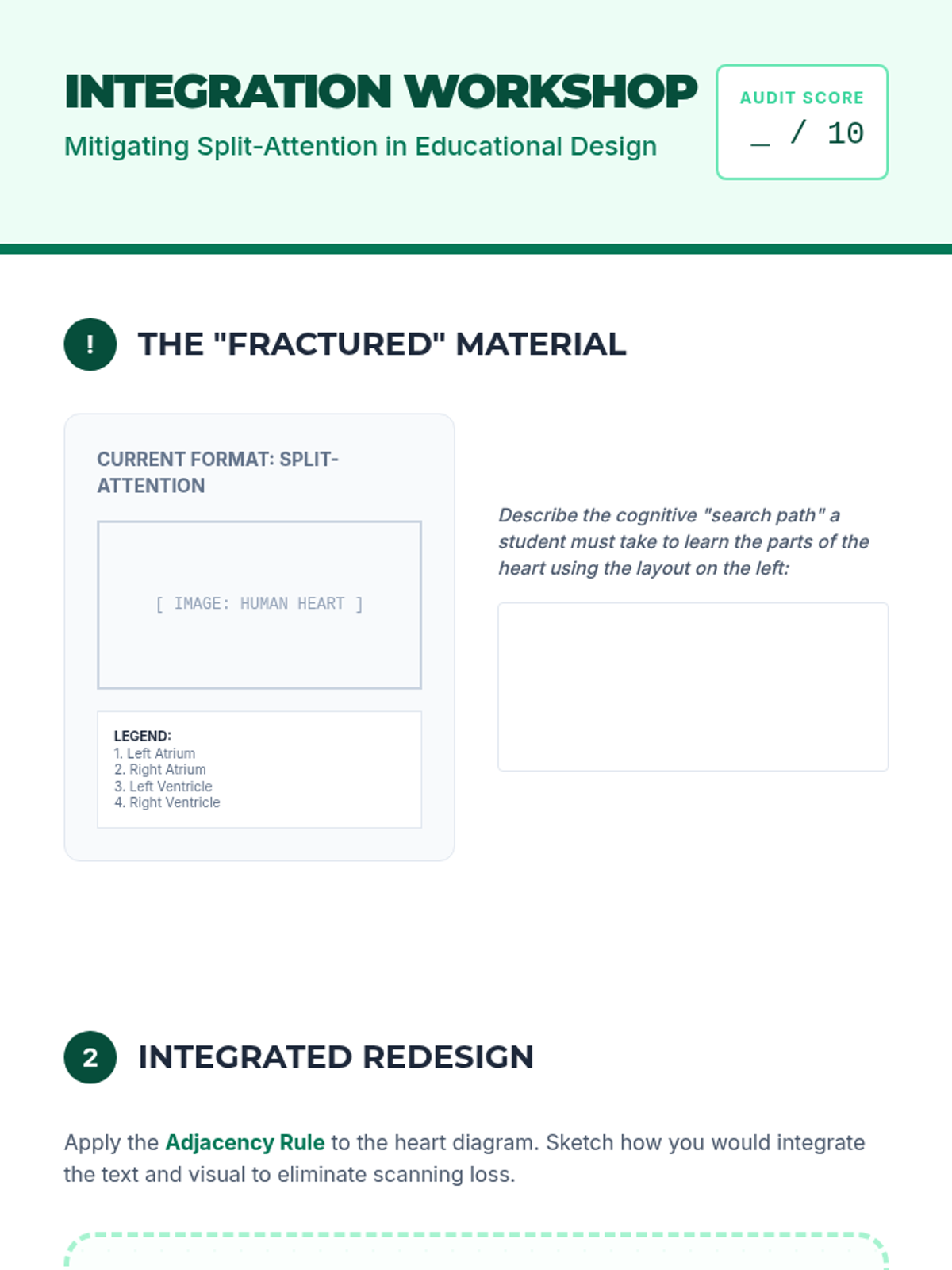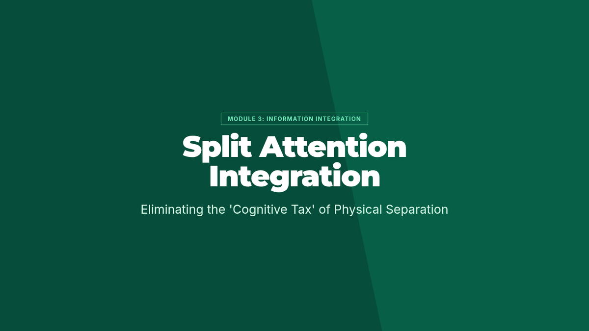 This lesson focuses on the split-attention effect, teaching students to integrate text and visuals to support immediate processing and reduce cognitive cost.