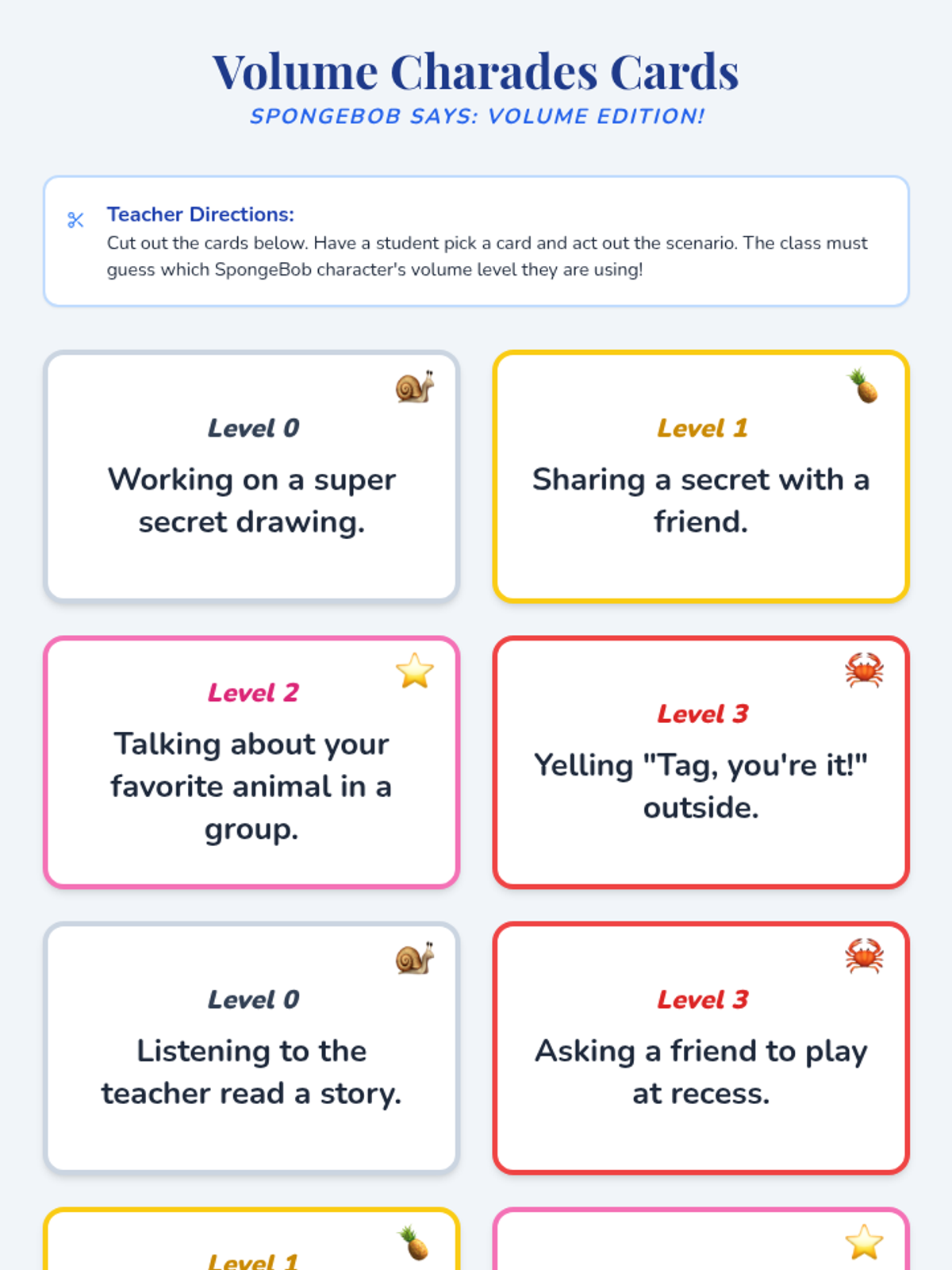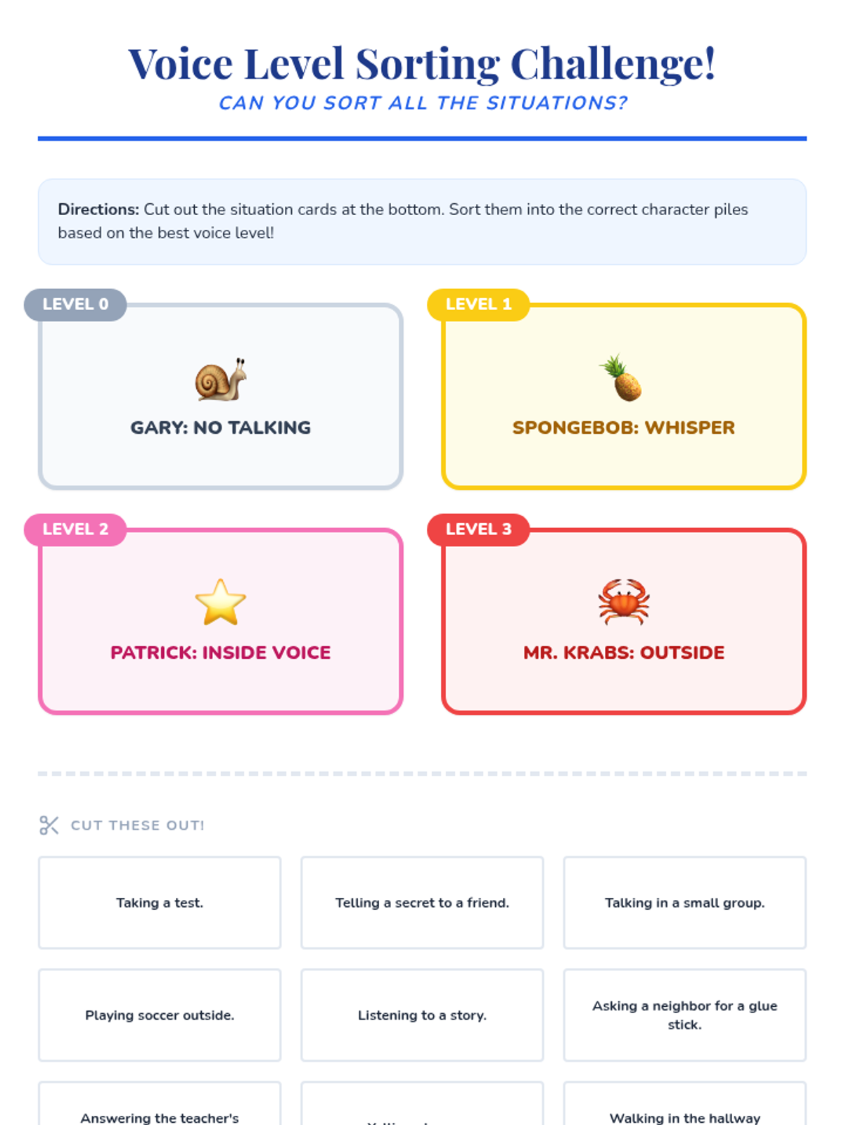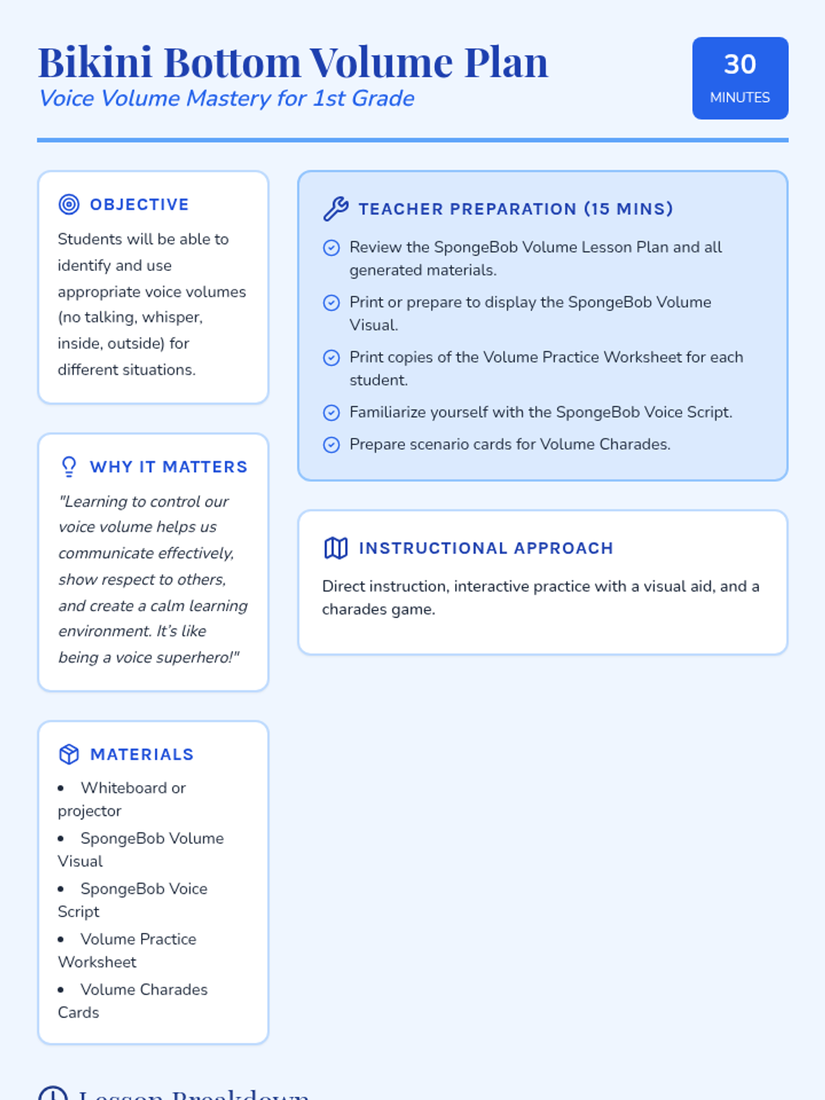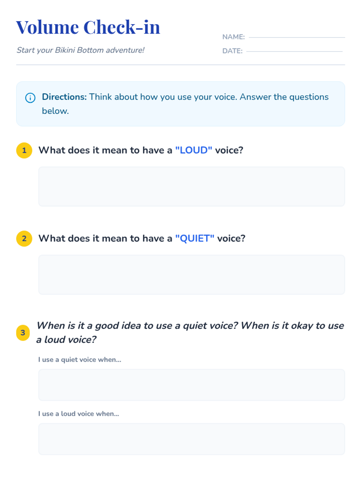 A fun, interactive lesson using beloved SpongeBob characters to help 1st-grade students understand and practice appropriate voice volume in various classroom settings.