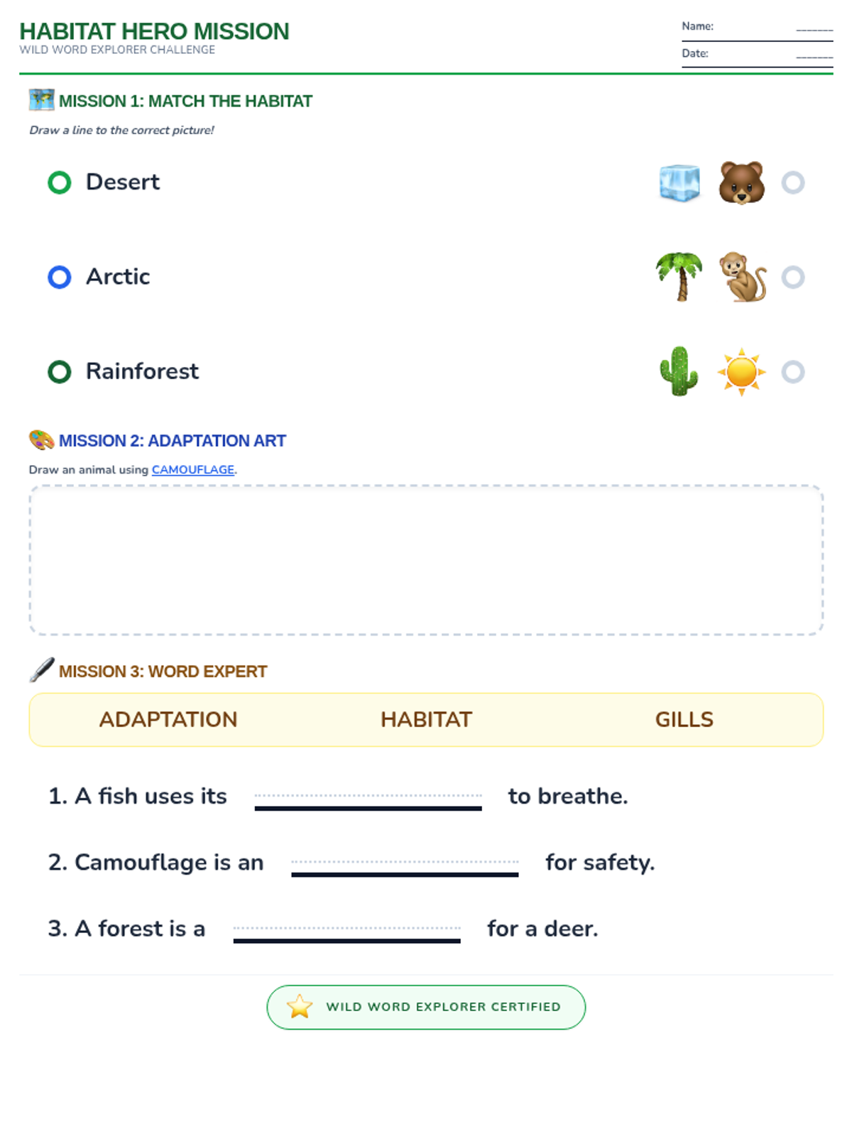 A captivating lesson for young explorers to discover the vast ocean habitat, focusing on salt water and amazing creatures like whales, sharks, and crabs.