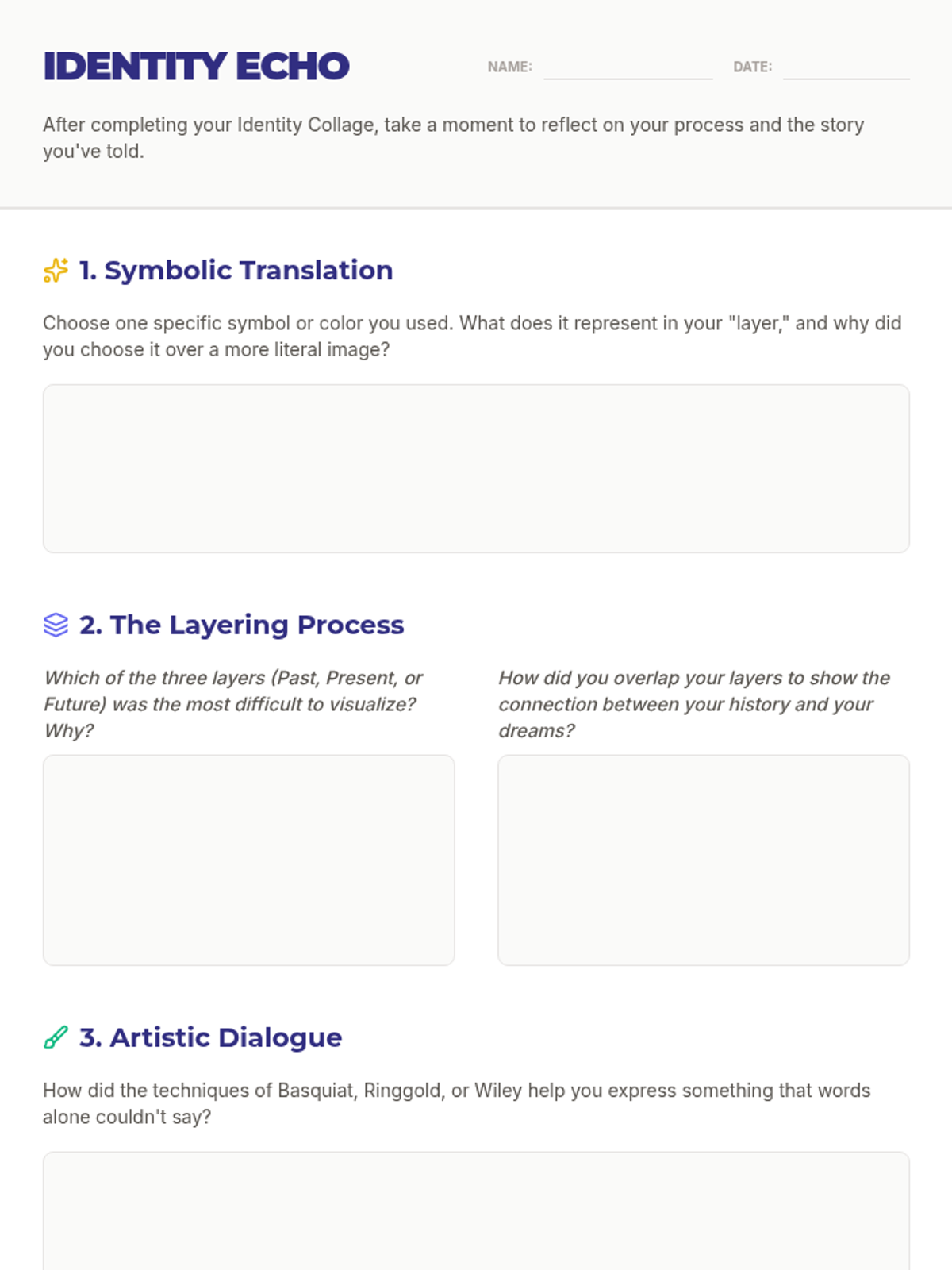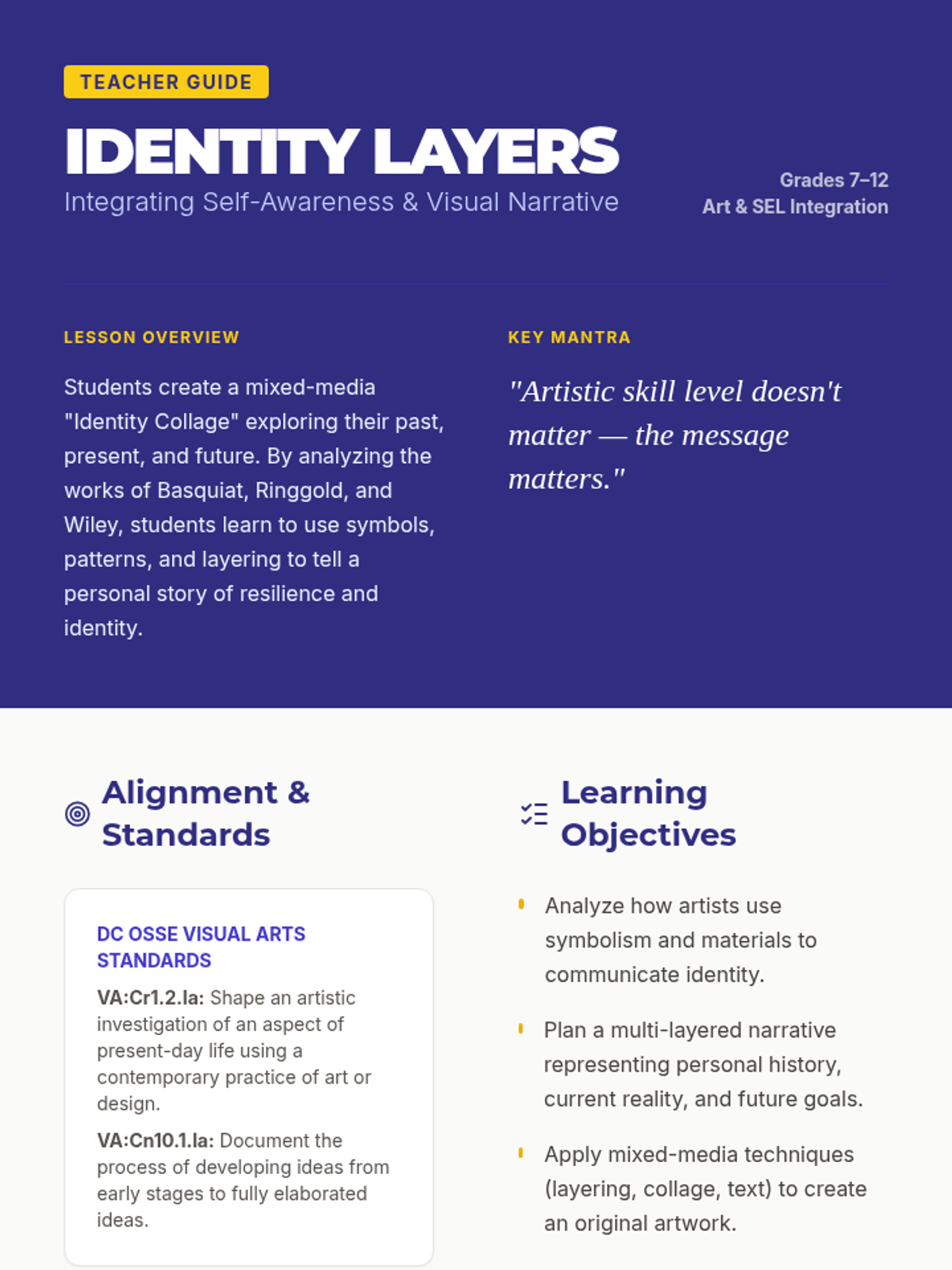 This lesson explores how artists blend and draw inspiration from various cultures, focusing on cultural fusion, symbolism, and identity in global art. Students will analyze contemporary artists and create their own fusion-inspired designs.