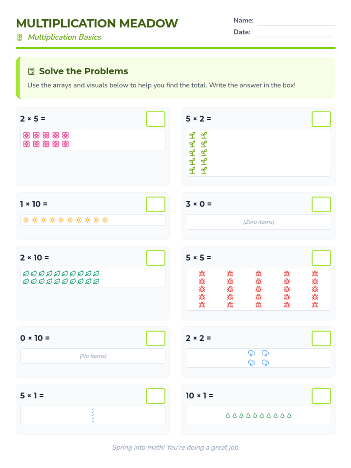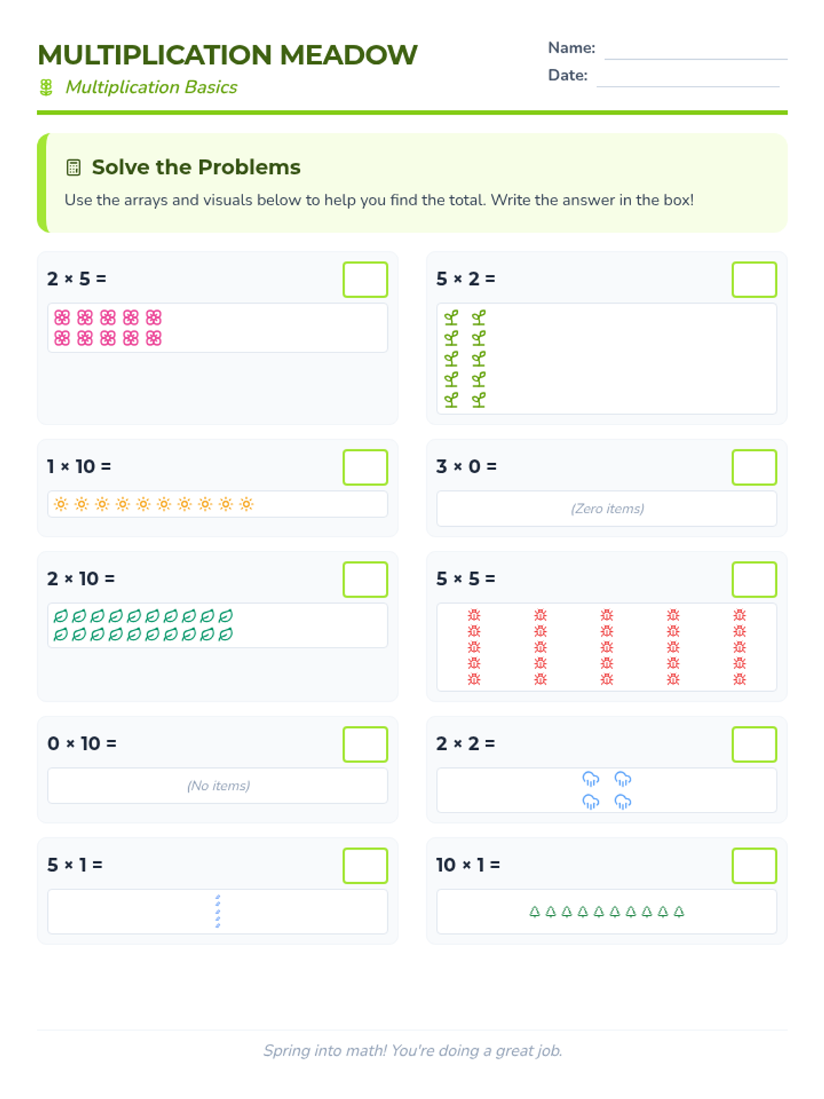 Reinforcing the concept of area through counting squares in arrays and understanding the relationship between rows, columns, and total area.