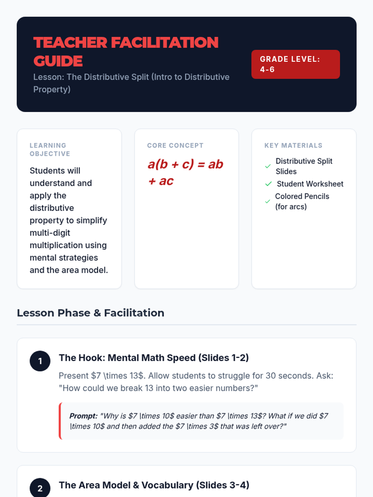 An introductory lesson on the distributive property using whole numbers, featuring a 'Number Ninja' theme to help students visualize splitting and sharing numbers to simplify multiplication.