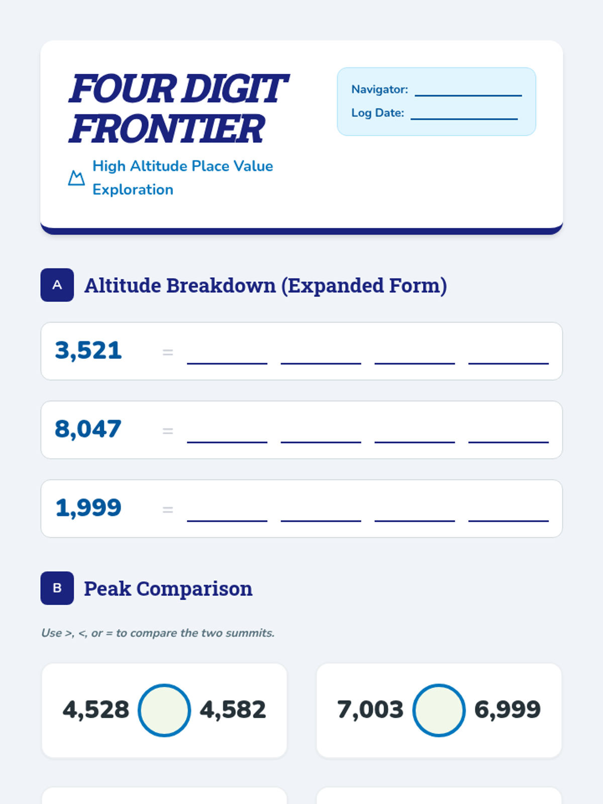 Conquering four-digit numbers up to 10,000, focusing on place value logic for large-scale comparisons.