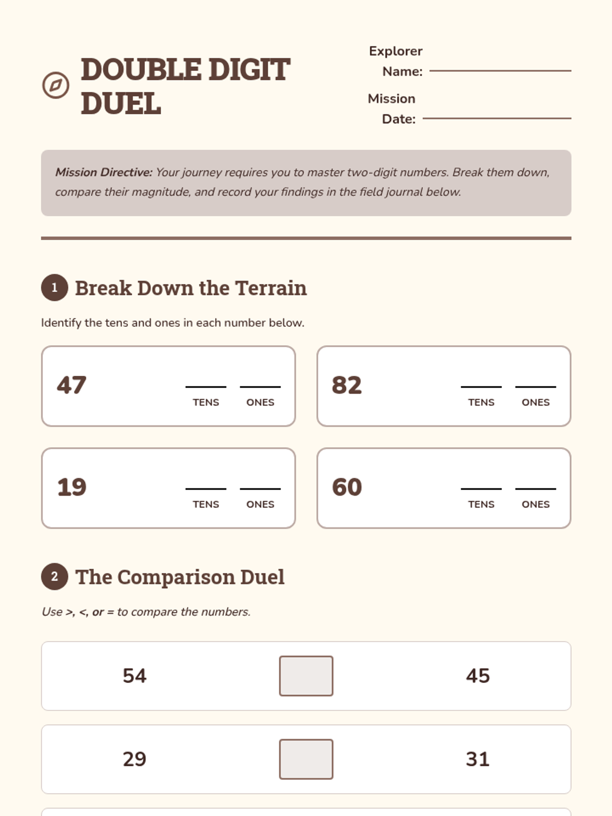 Mastering numbers up to 100 with a focus on tens and ones, using visual models to compare magnitude.