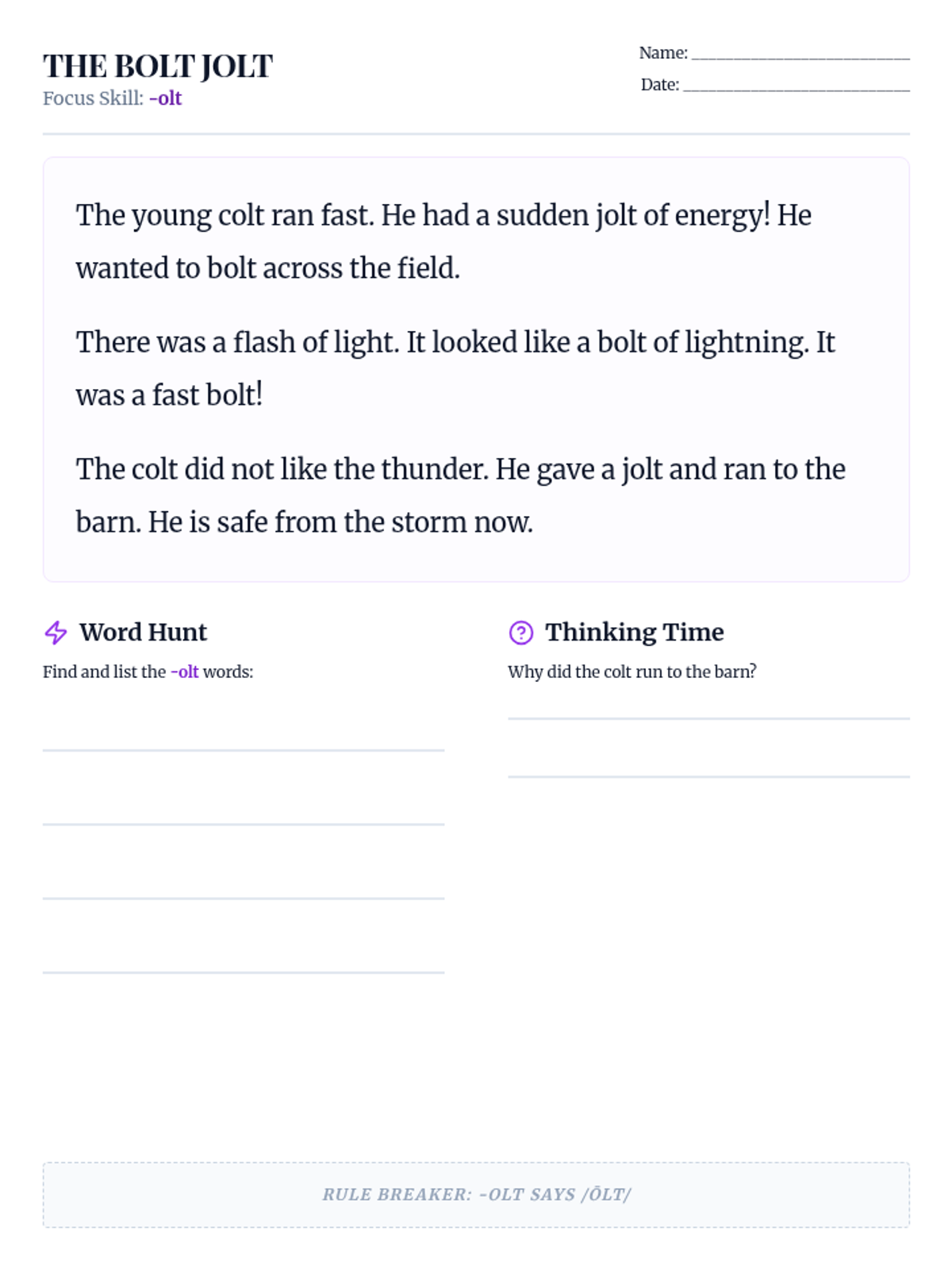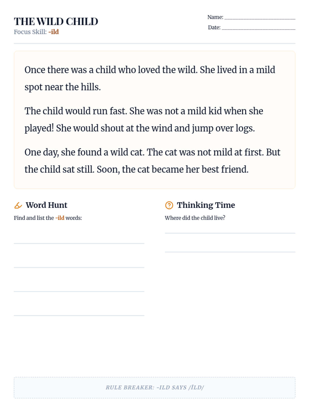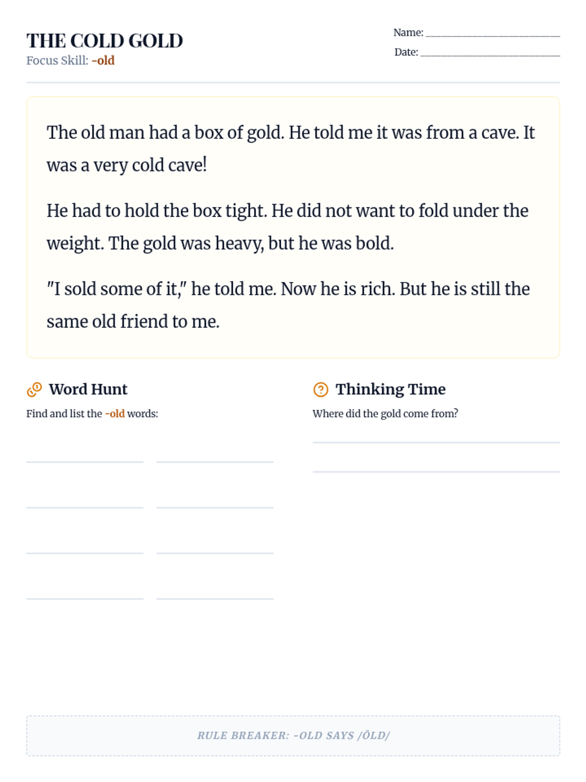A focused lesson on closed syllable exceptions (-ost, -ild, -ind, -olt, -old), featuring decodable passages, instructional slides, and teacher support materials designed for grades 1-3.