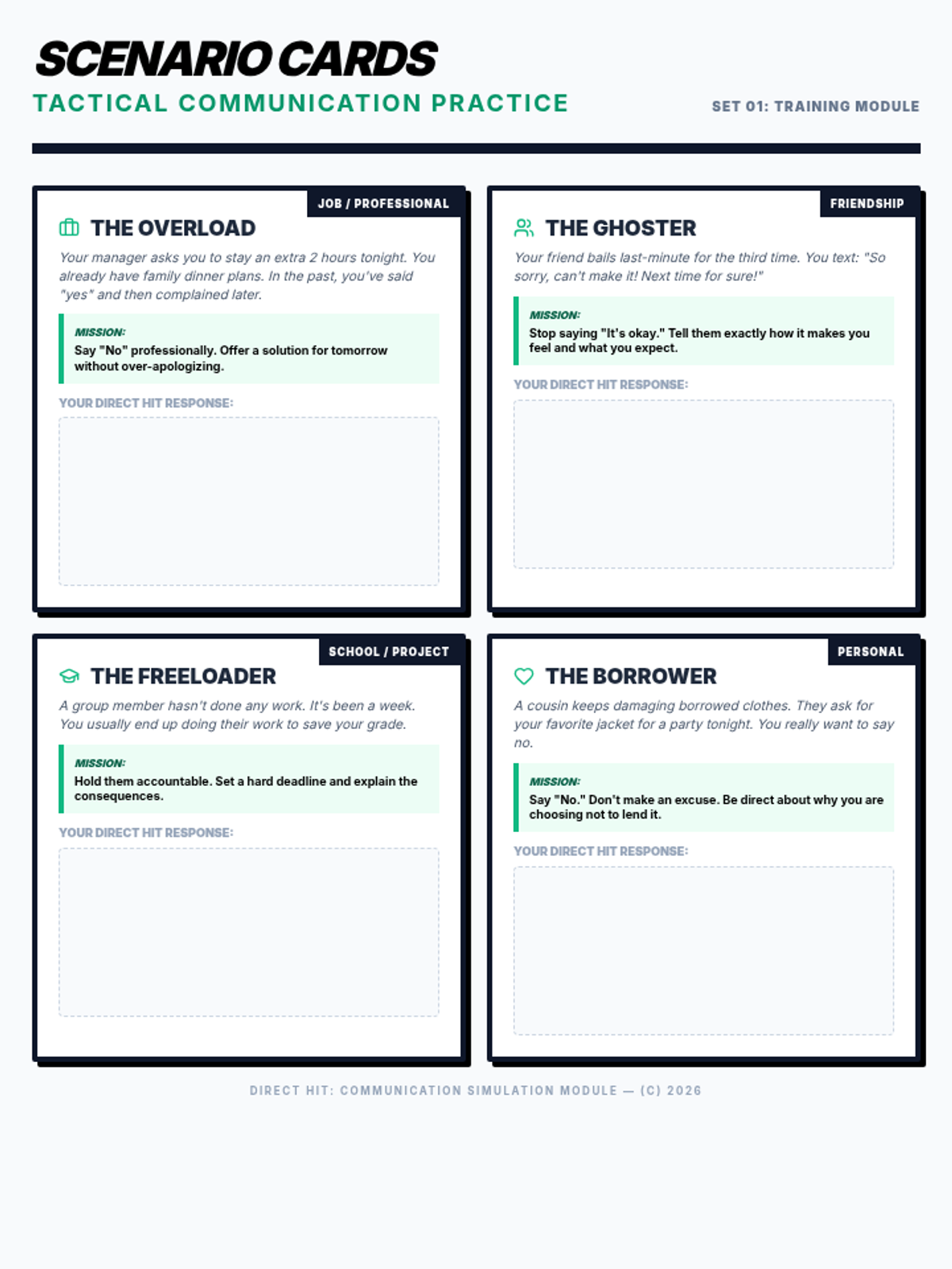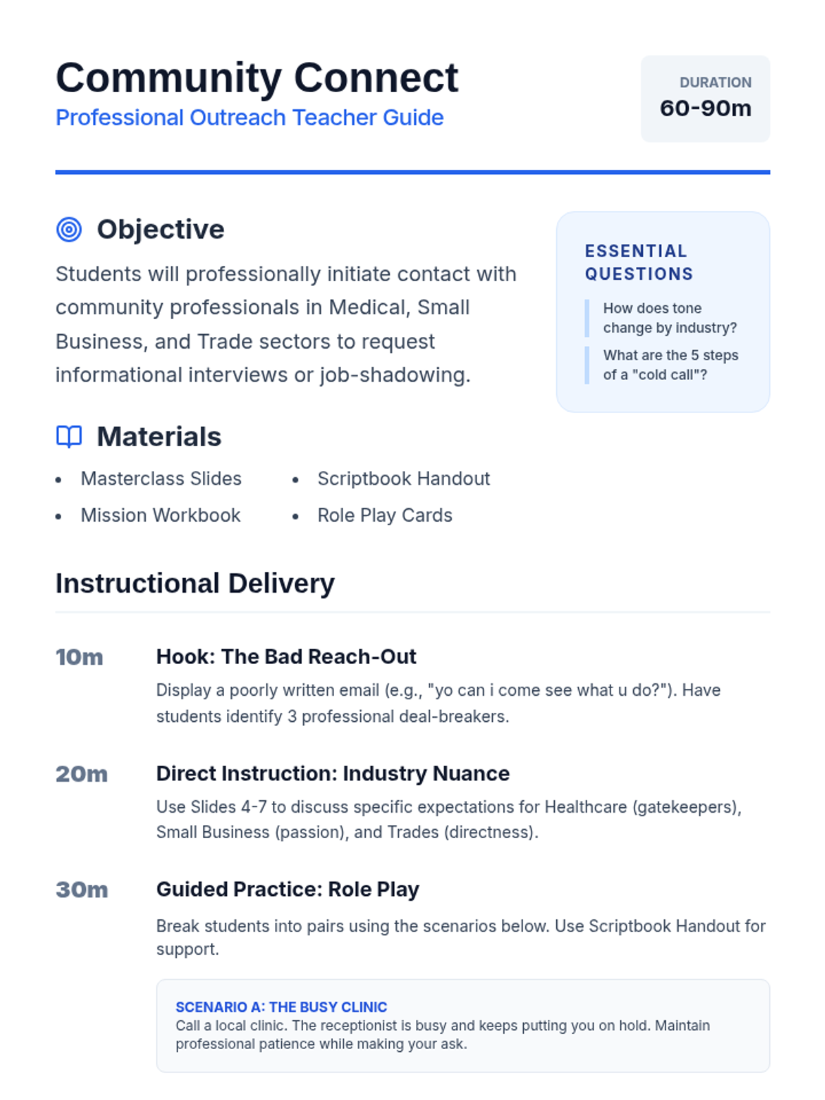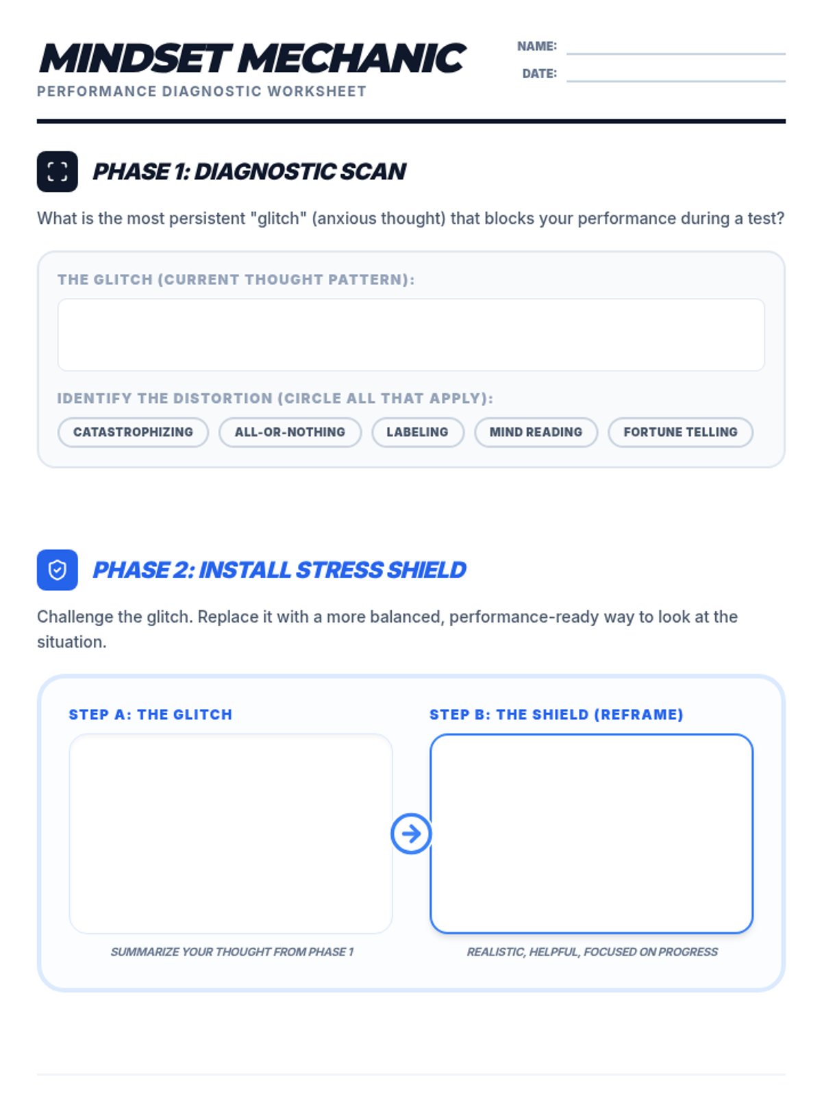 A supportive set of Spanish-language materials designed for a 10-year-old student (2nd-grade reading level) struggling with school anxiety, avoidance, and perfectionism. The lesson focuses on identifying triggers, practicing teacher interactions, and reframing mistakes through role-play and reflective activities.