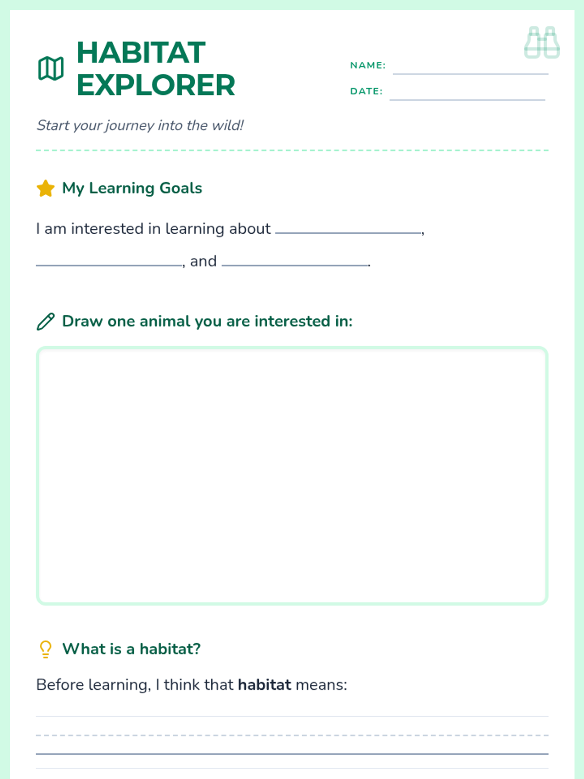 An introductory lesson to kick off a unit on animals and their habitats, focusing on activating prior knowledge and sparking curiosity.