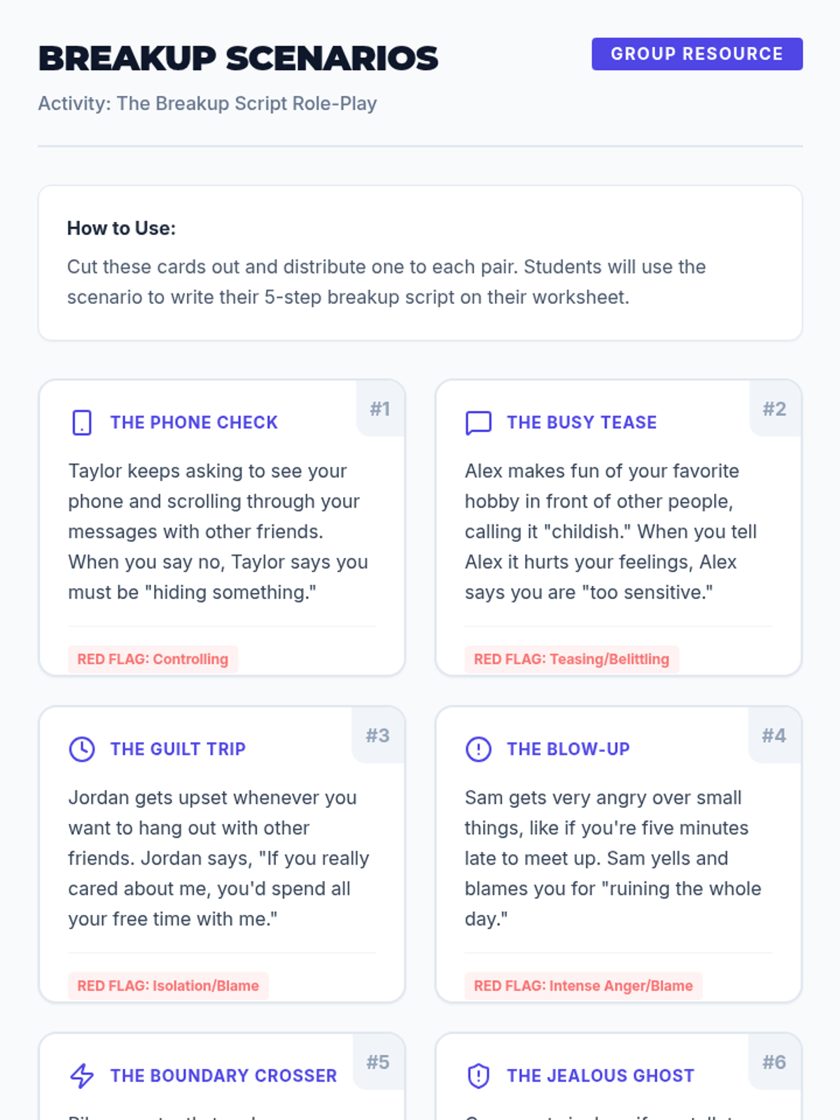 A comprehensive lesson for middle schoolers on identifying unhealthy relationship behaviors and practicing assertive communication using a 5-step breakup plan. Includes a slide presentation, teacher guide, and student worksheets.