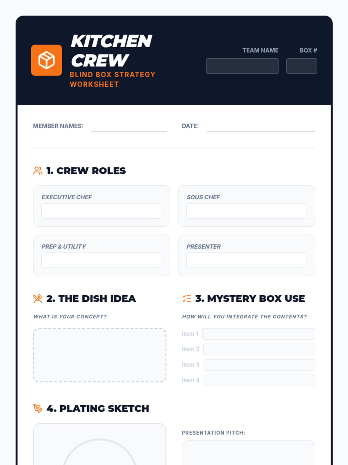 A team-building culinary challenge inspired by the "Chopped" competition style, designed to foster cooperation, creativity, and kitchen safety skills.