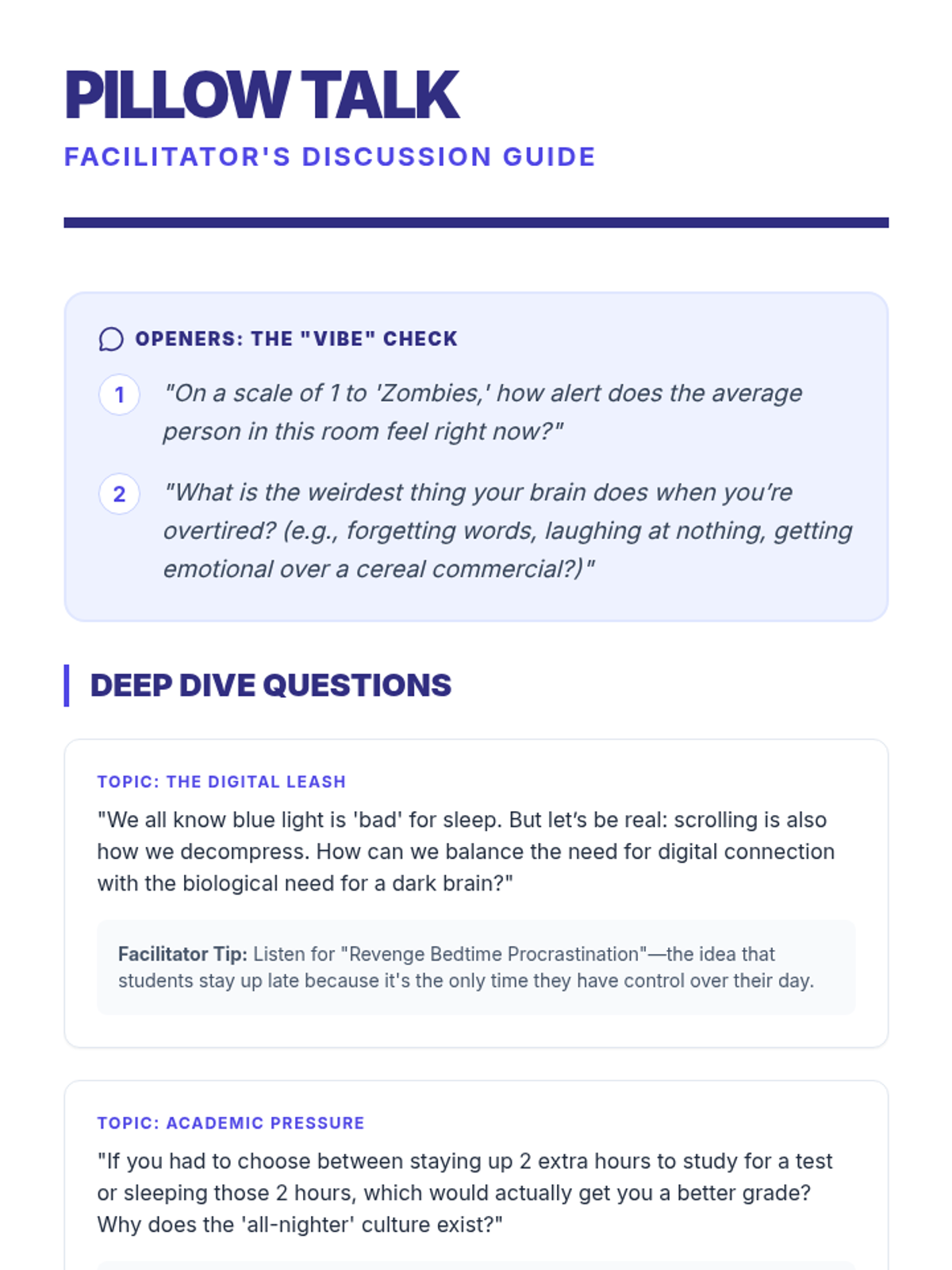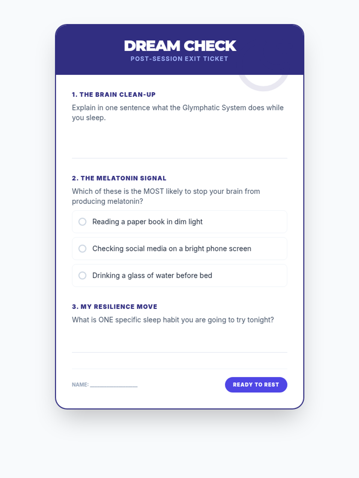 A comprehensive lesson exploring the science of sleep, its impact on teen health and performance, and practical strategies for improving sleep hygiene.