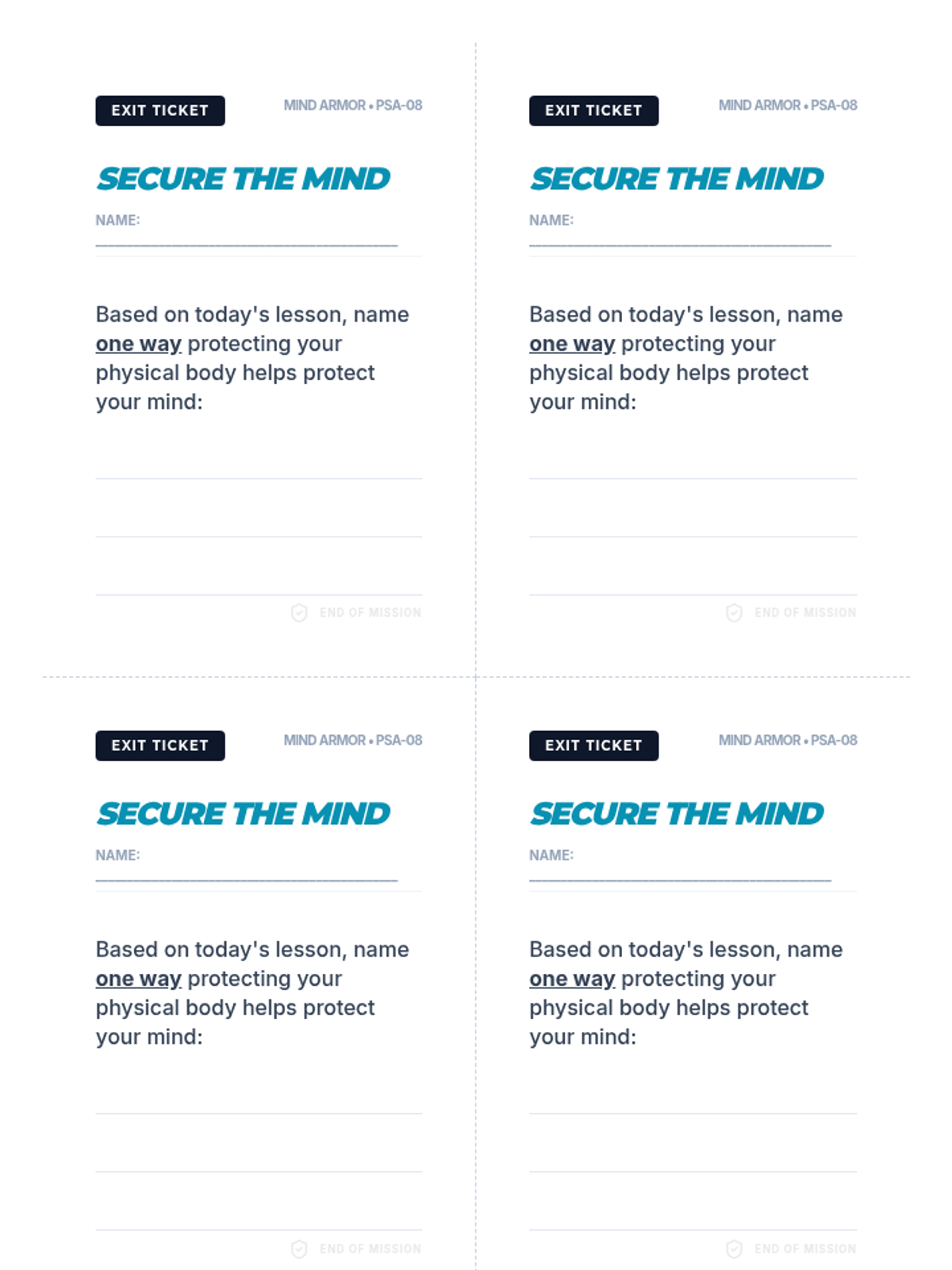 Students learn how to fuel their bodies and keep them moving while mastering the art of rest and emotional balance. Includes interactive discussions, goal-setting, and practical habit-building activities.