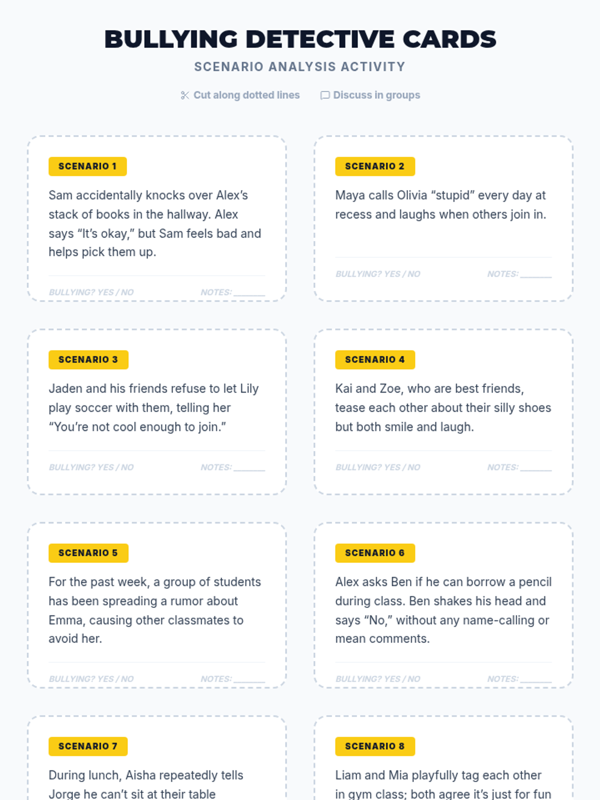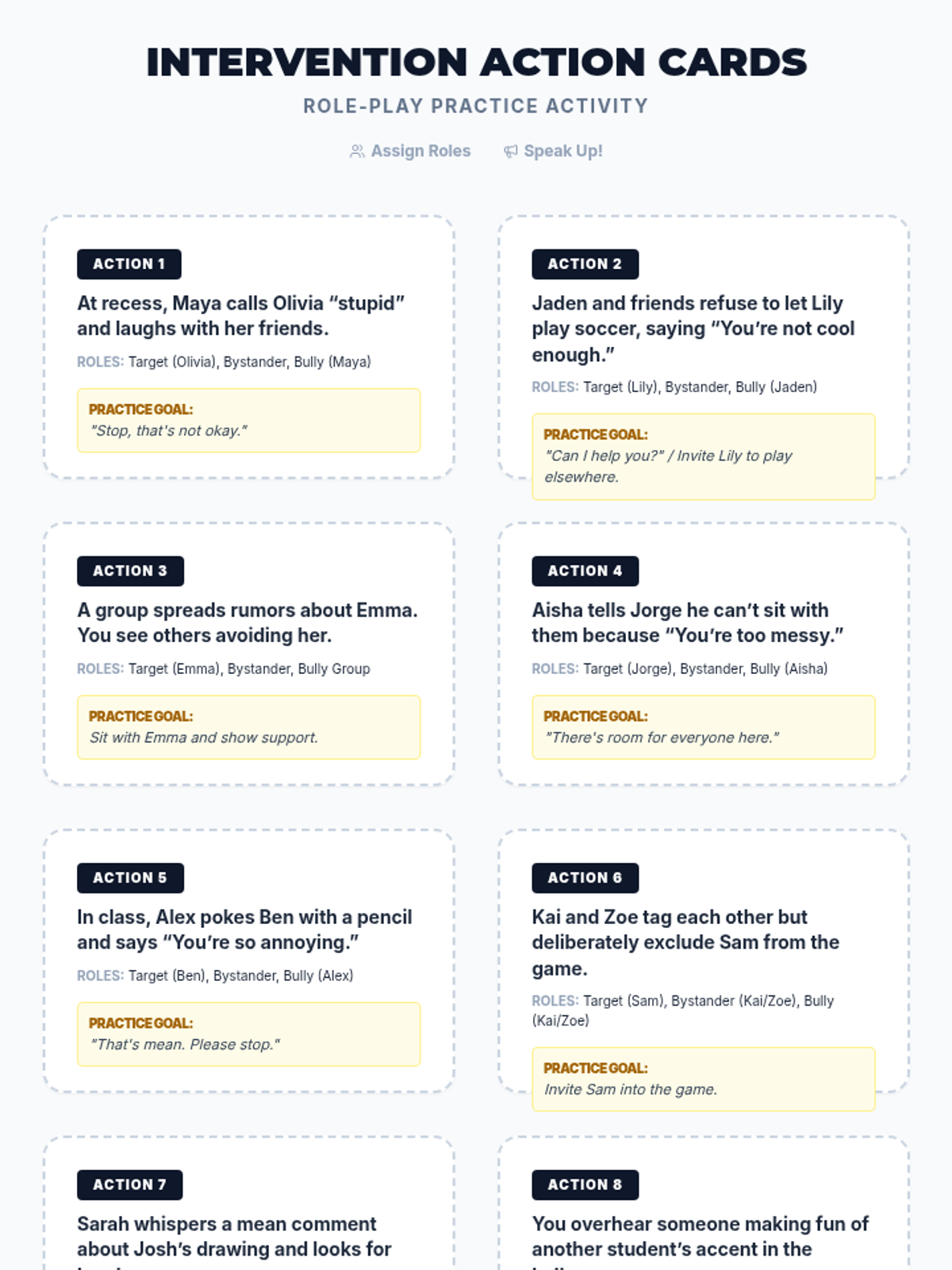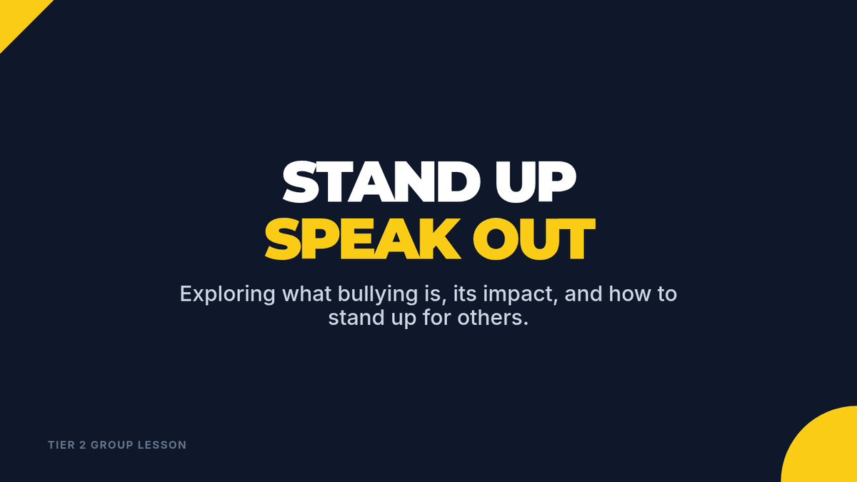 A 30-minute Tier 2 group lesson for 5th graders to identify bullying, understand its impact, and practice safe bystander intervention strategies.