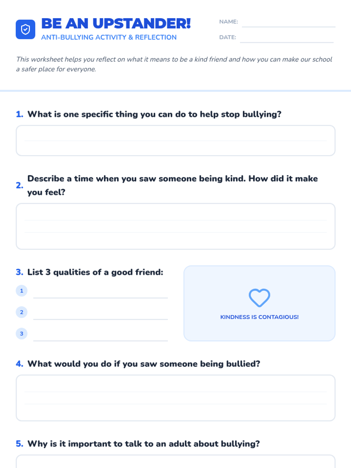 This lesson empowers 4th-grade students to recognize bullying and take action as upstanders. Through discussion and creative activities, students build empathy and learn the importance of a supportive school culture.