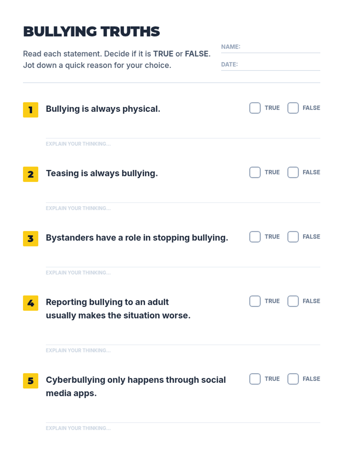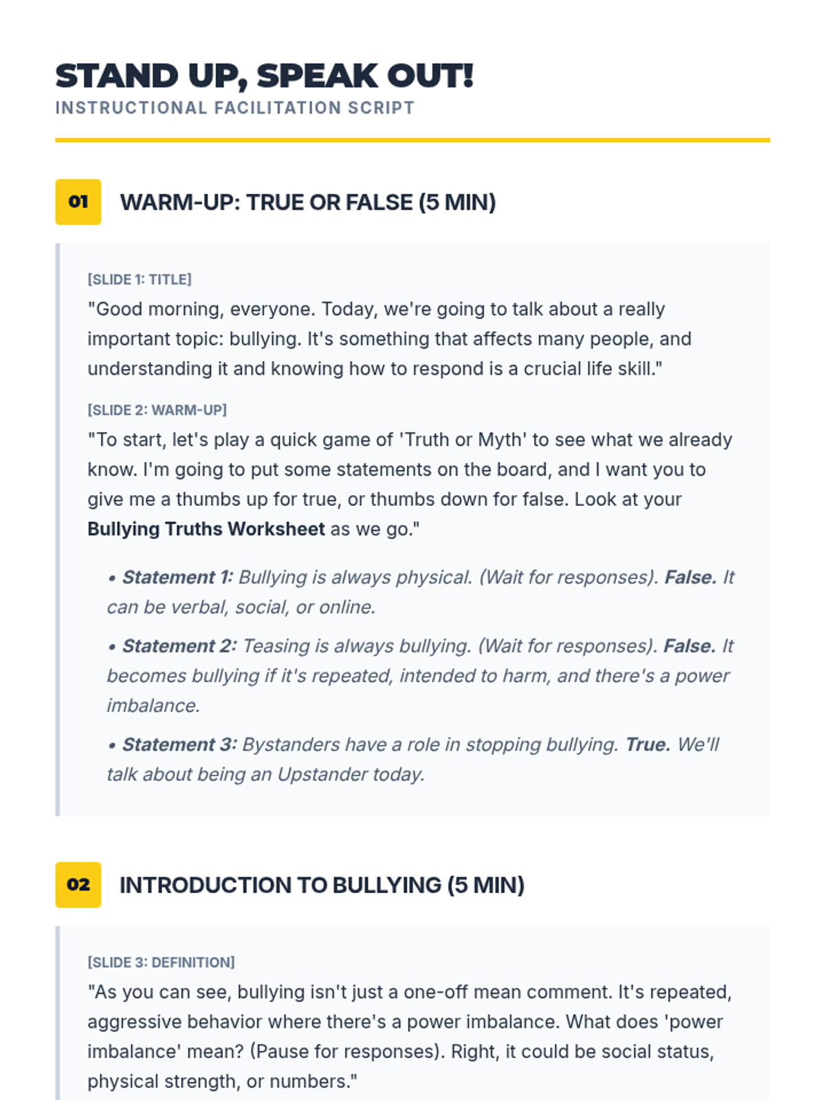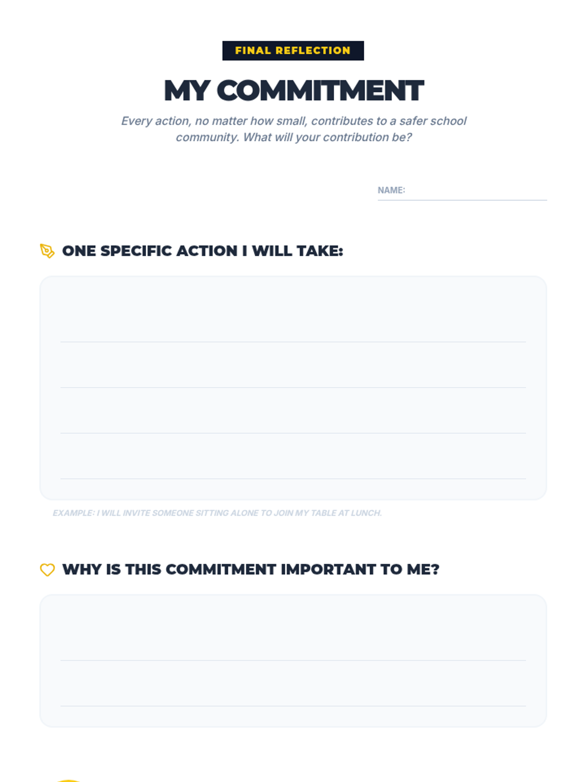 A 30-minute social-emotional learning lesson for 8th-grade students focused on recognizing, responding to, and preventing bullying to foster a safe school environment.