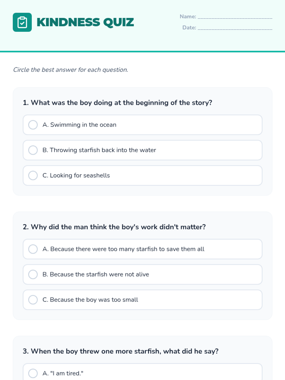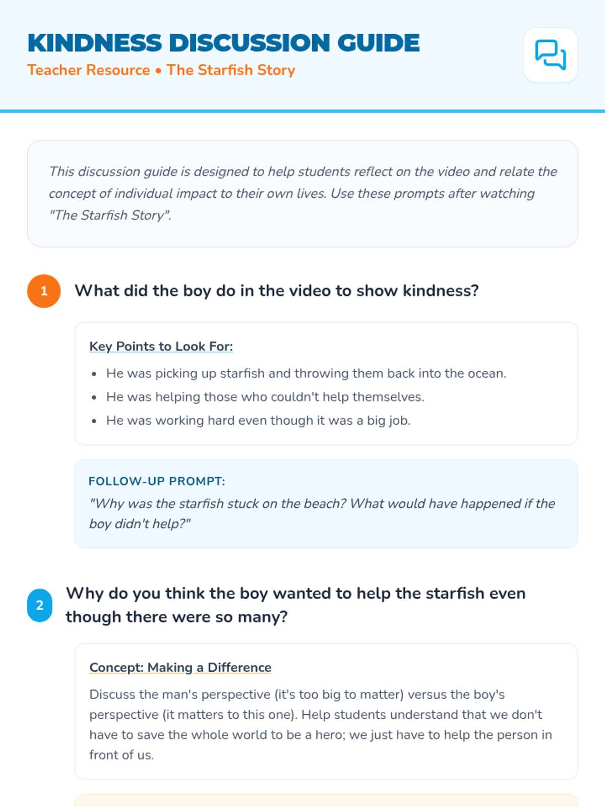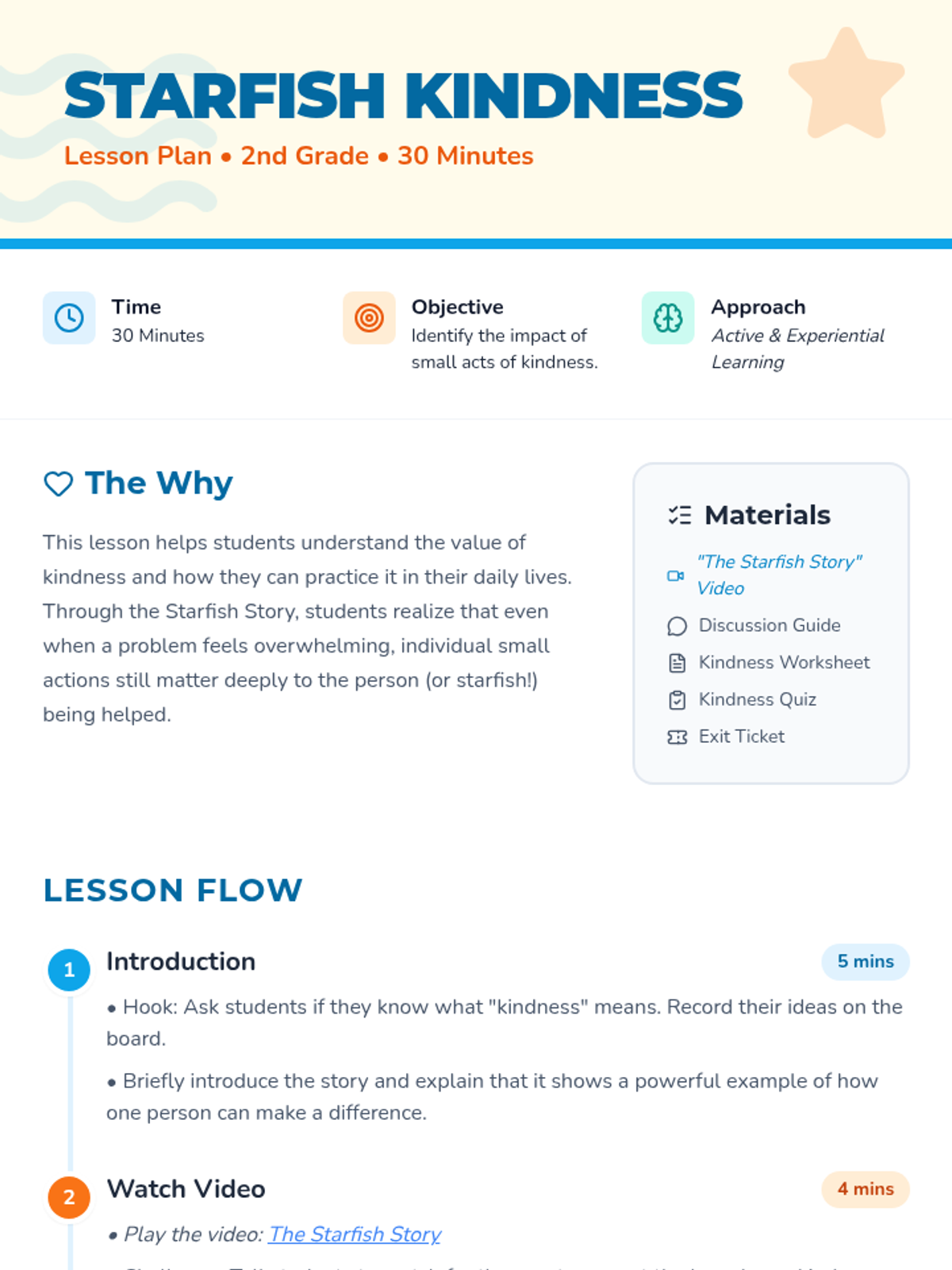 Students will explore the power of small acts of kindness through the classic story of the starfish, learning that even the smallest gesture can make a world of difference.