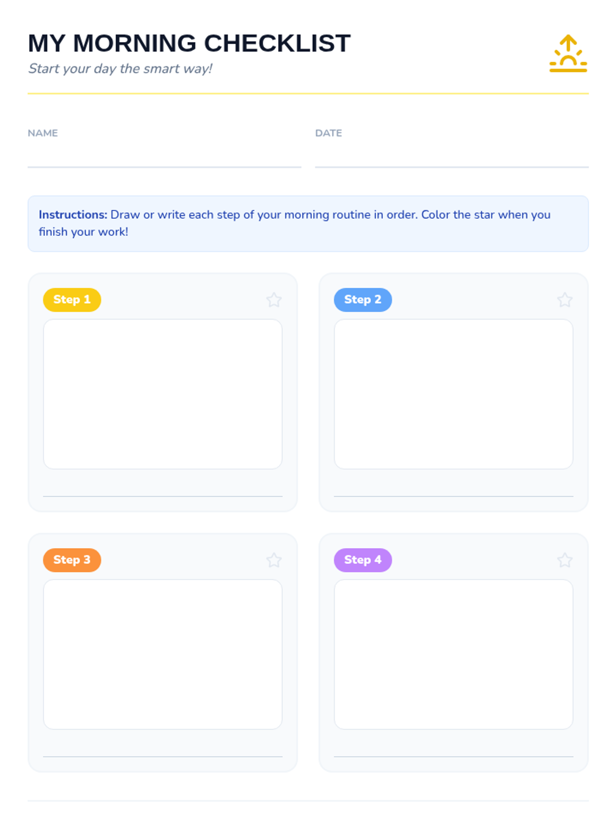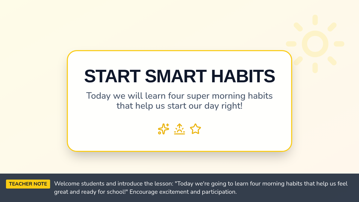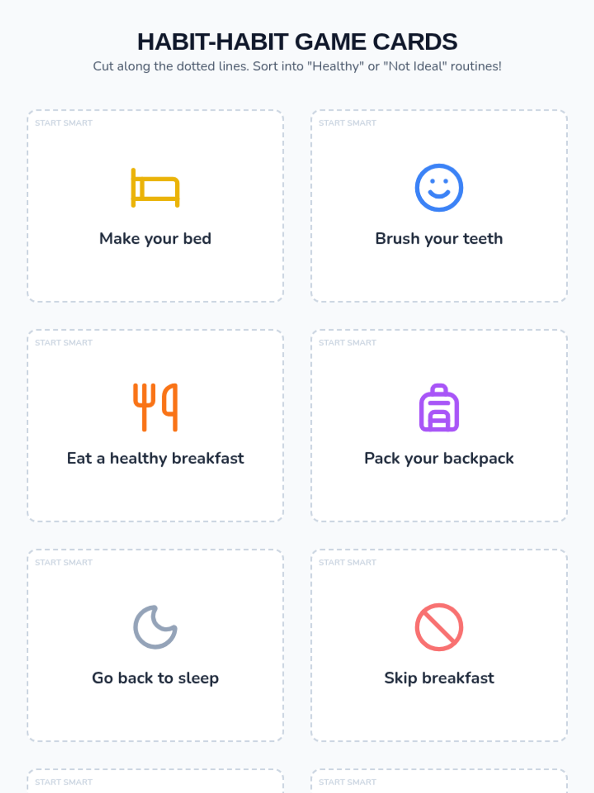 A 30-minute lesson for 2nd graders on essential morning habits to build independence and focus. Students learn four key habits through movement, discussion, and interactive sorting.