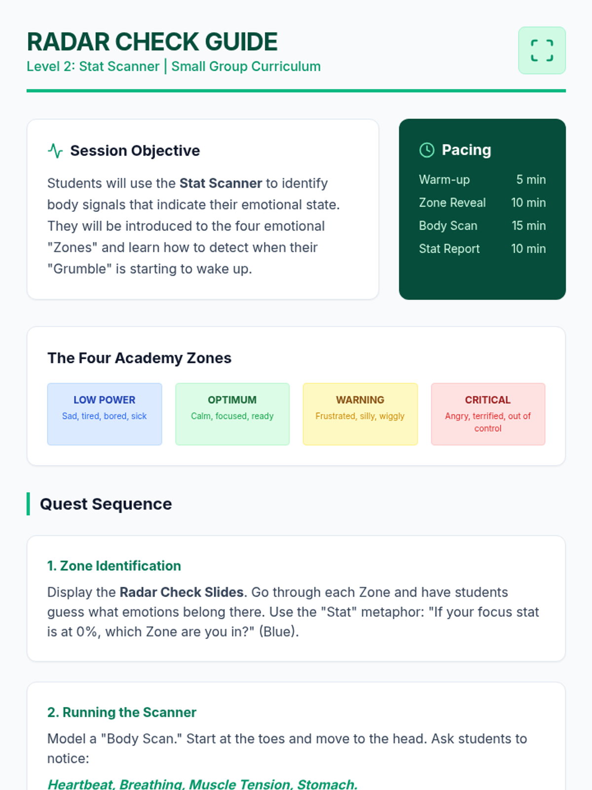 Identifying emotions through body signals and internal feelings using the 'Stat Scanner' concept.