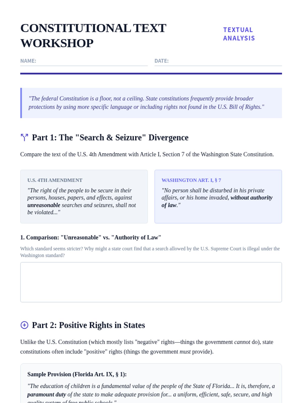 Introduces 'New Judicial Federalism' and explores how state constitutions provide broader protections than the U.S. Constitution through independent state grounds.