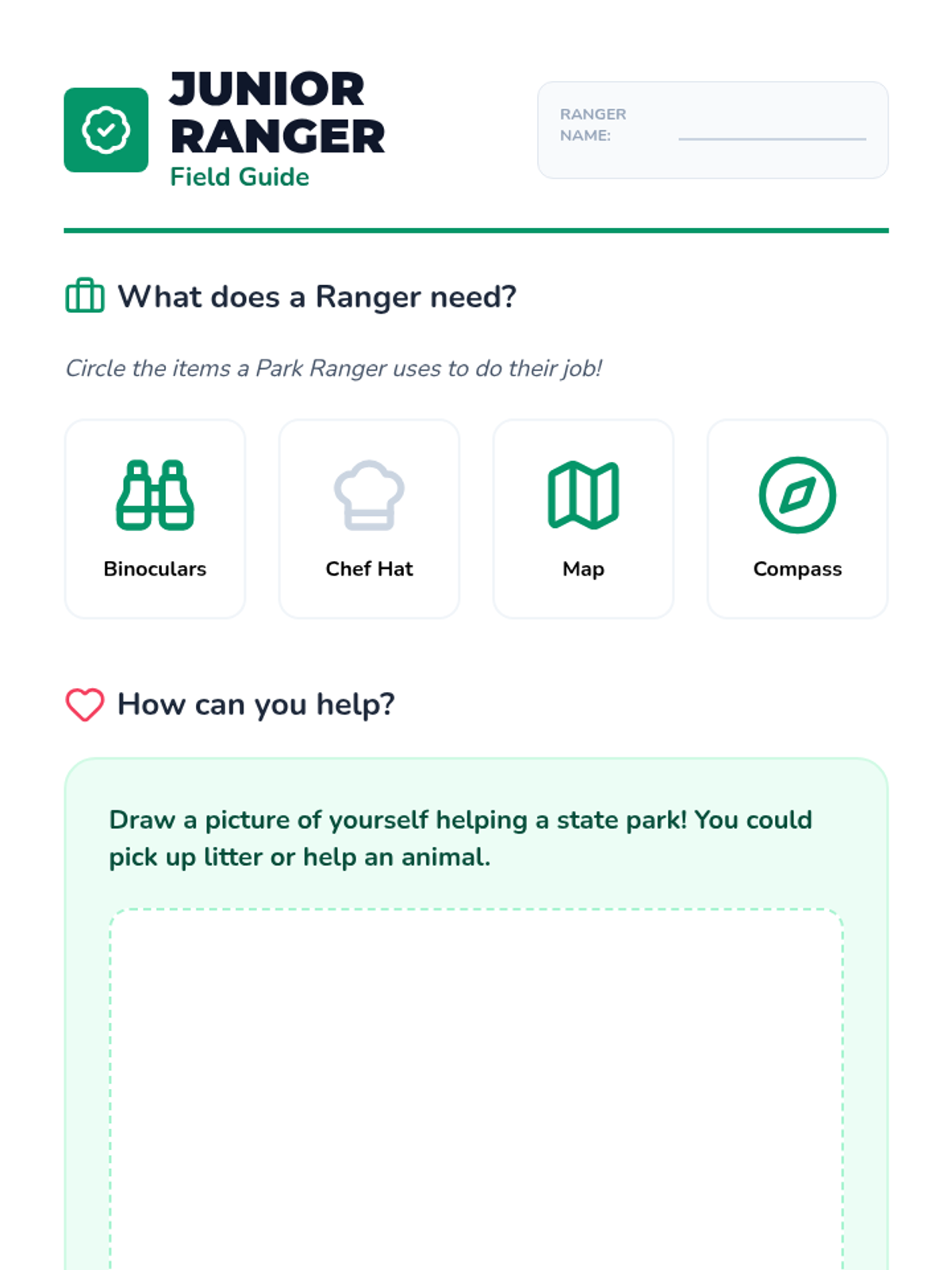 Students learn about the importance of state parks and the role of park rangers in protecting the environment.