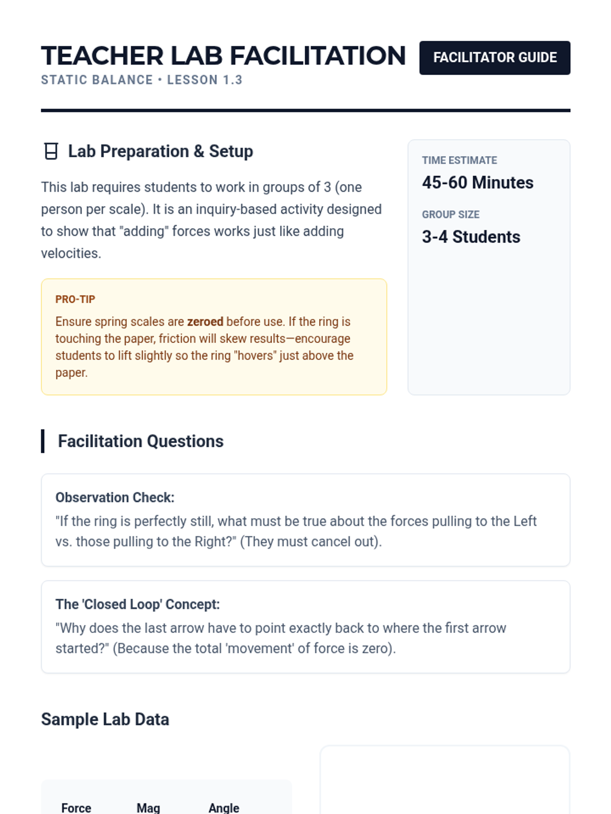 An investigation into equilibrium where students balance forces at angles to prove the vector sum is zero.