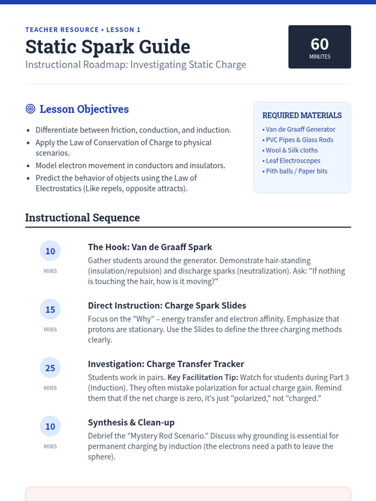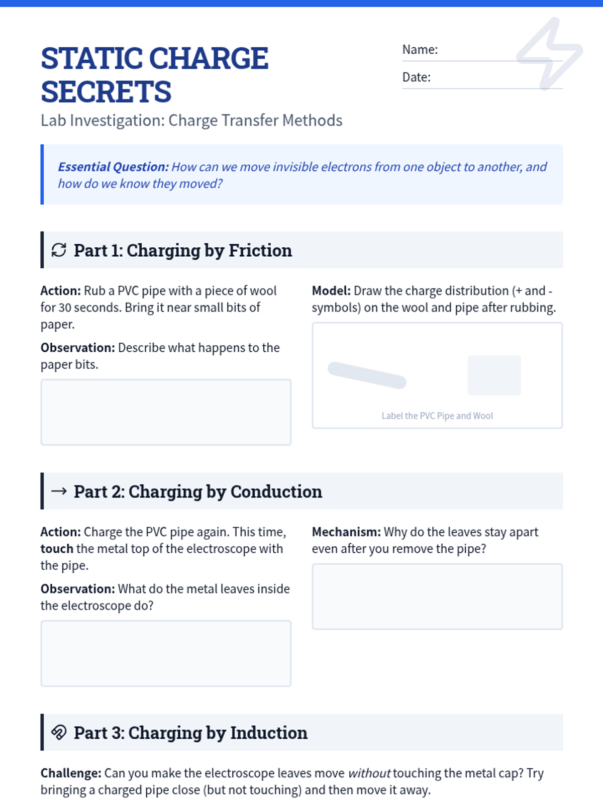 Students explore charging by friction, conduction, and induction using electroscopes and pith balls, developing a model to explain electron transfer and the conservation of charge.