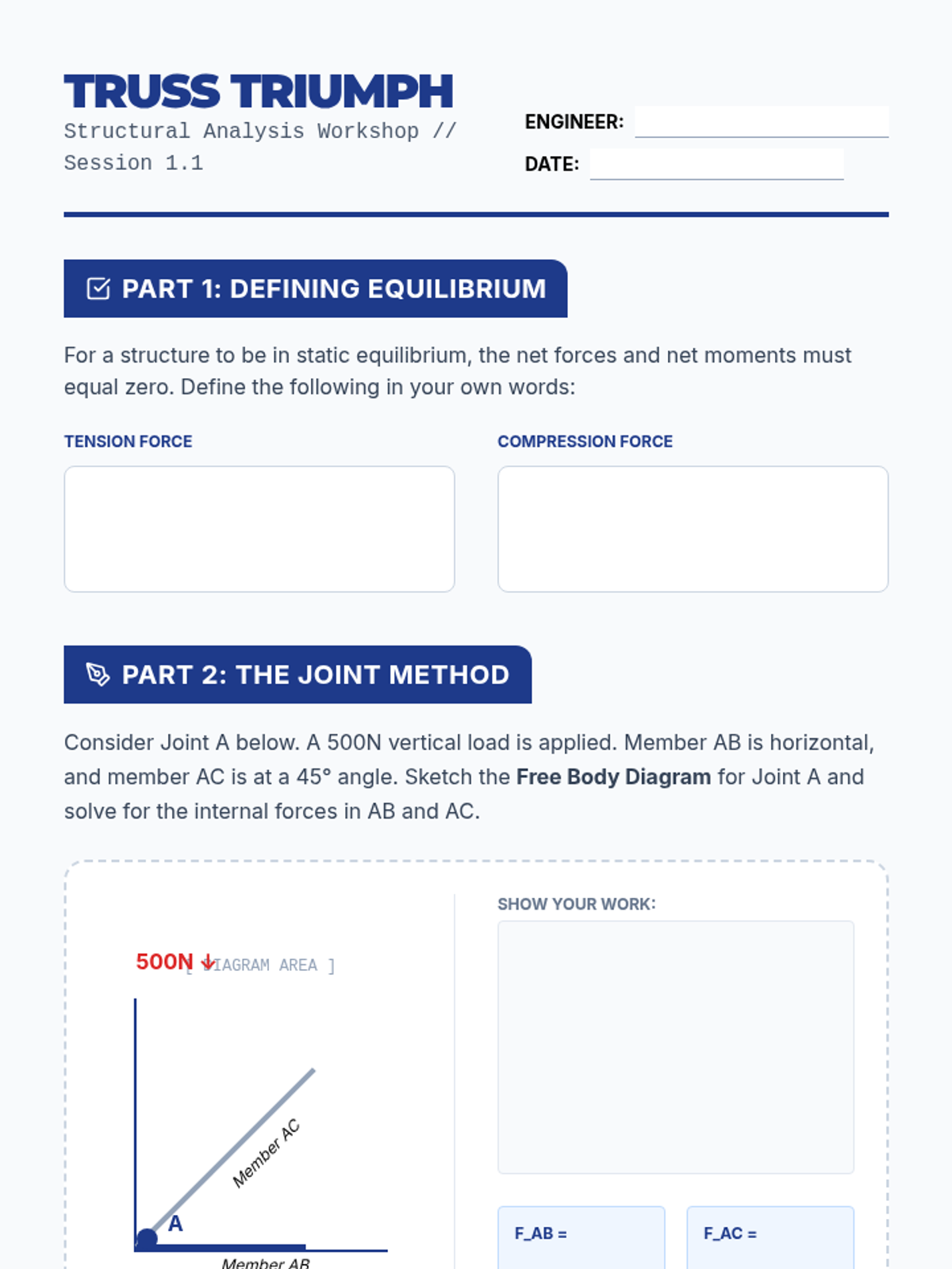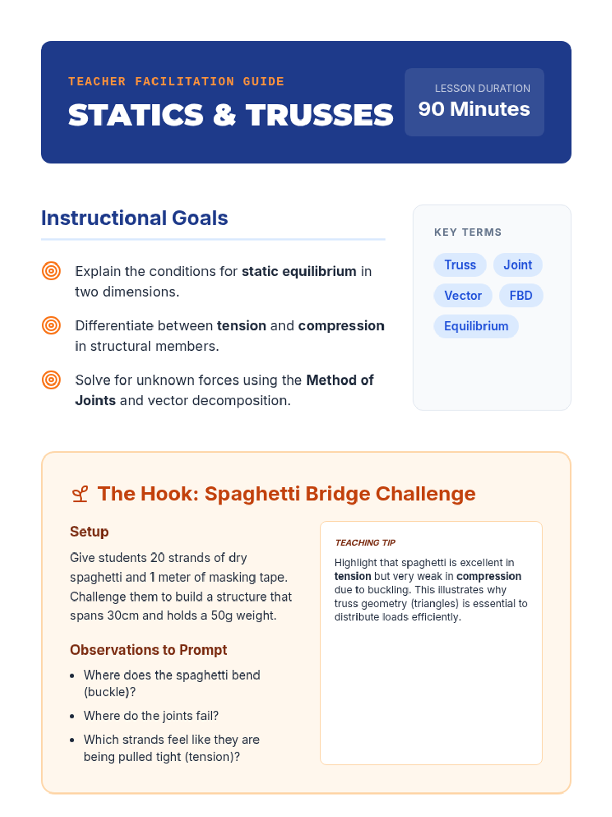 Students explore Newton's laws as applied to stationary structures, calculating forces within simple truss designs. They use vector algebra to determine tension and compression in structural members to identify potential failure points.