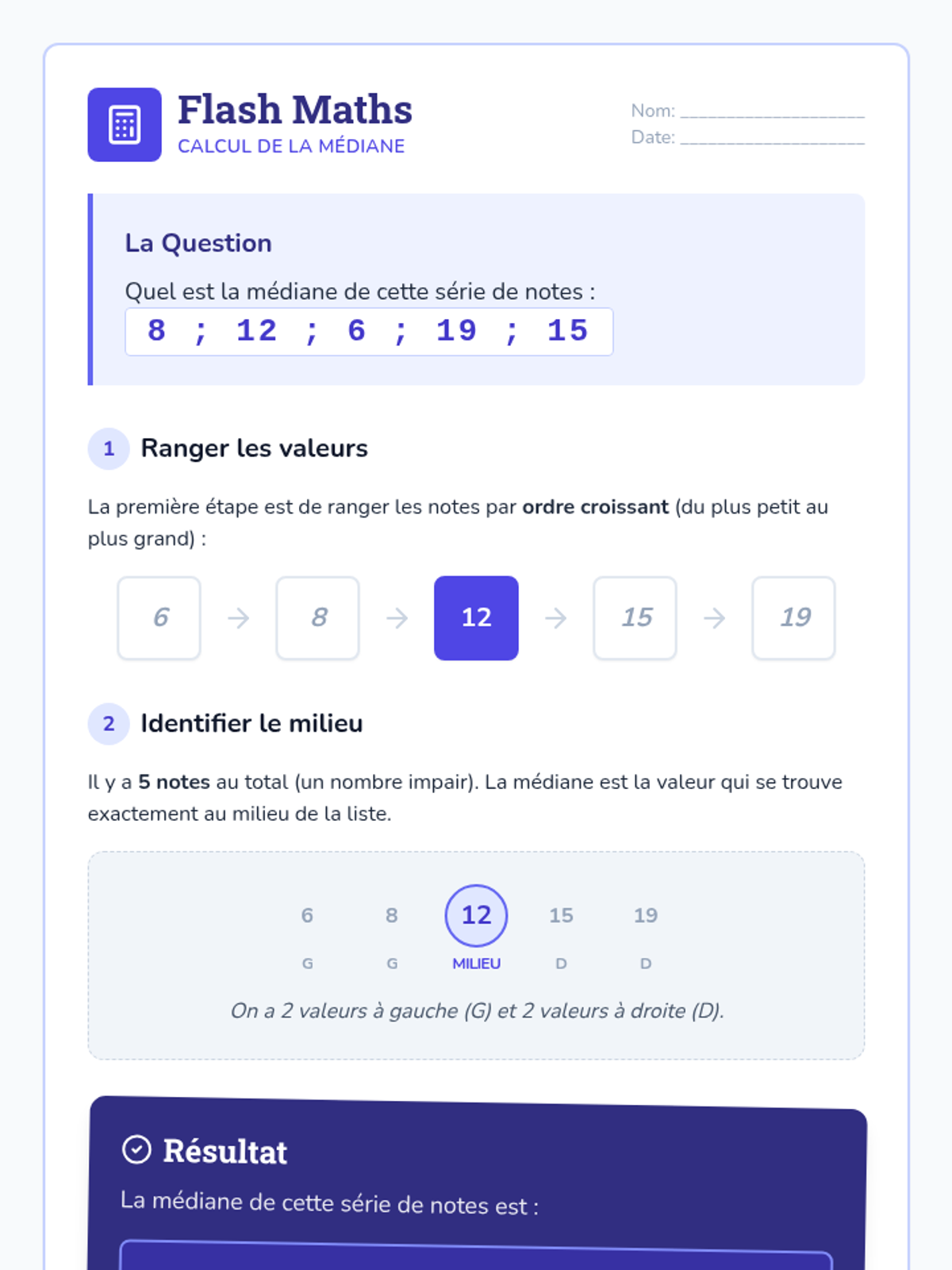 Une mini-leçon sur le calcul de la médiane d'une série statistique, utilisant l'exemple concret des notes d'élèves.