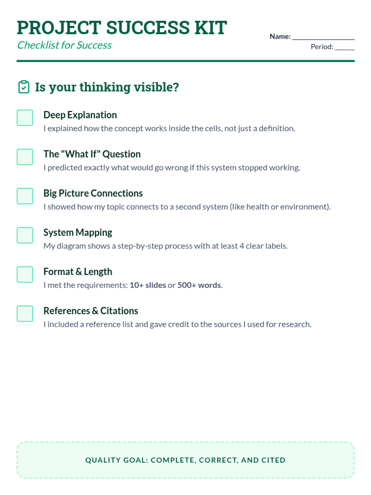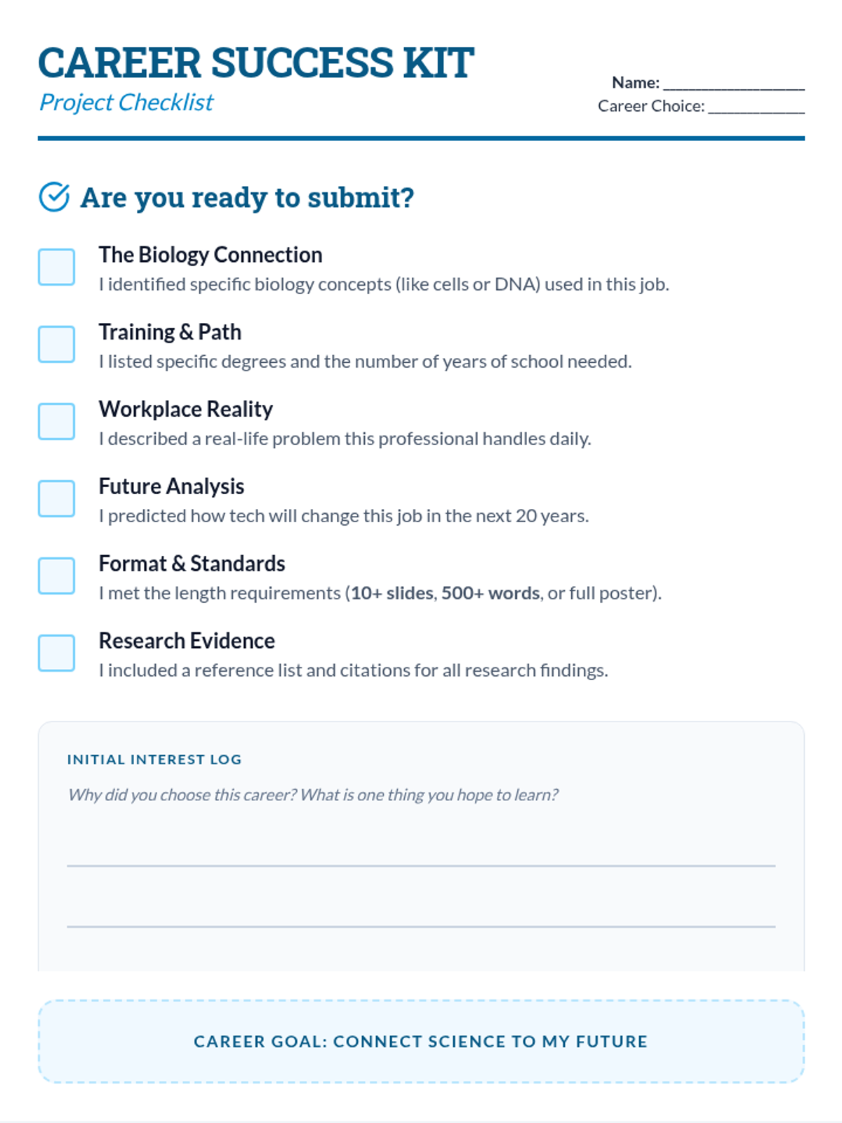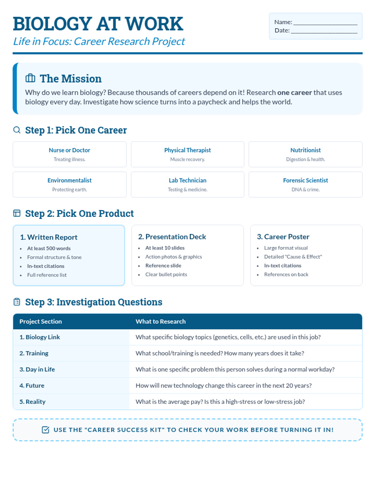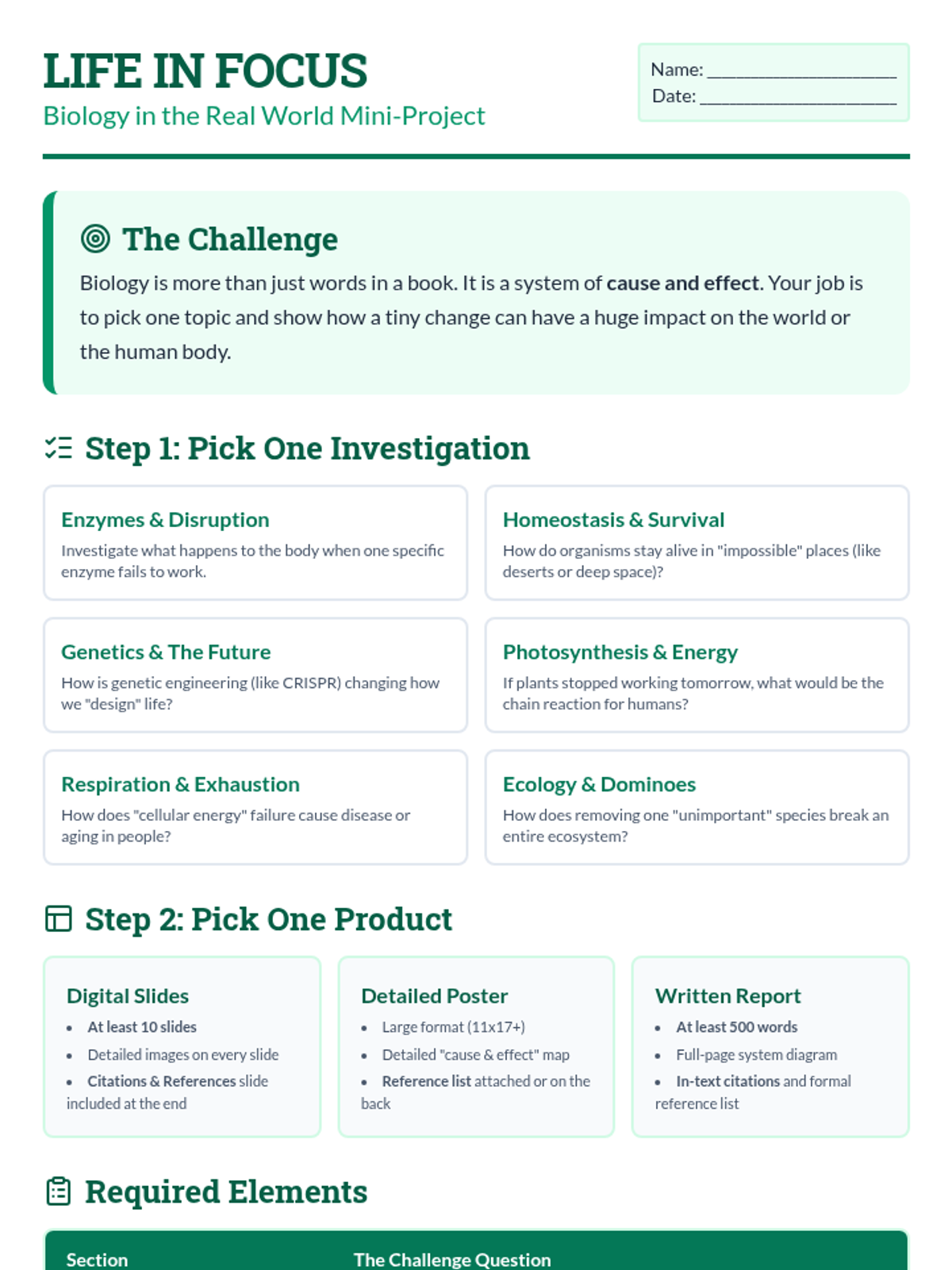 A mini-project for students not taking the STAAR test, focusing on connecting biology concepts to real-world applications through independent research and creative products.