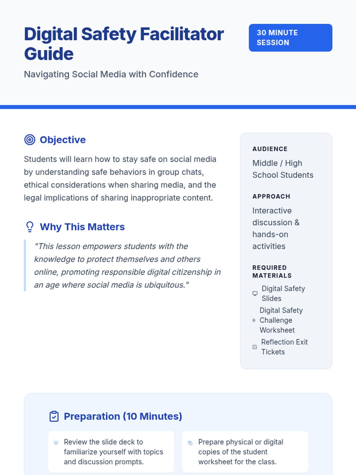 A comprehensive 30-minute lesson teaching middle and high school students about group chat etiquette, ethical media sharing, and the legal consequences of inappropriate online content.
