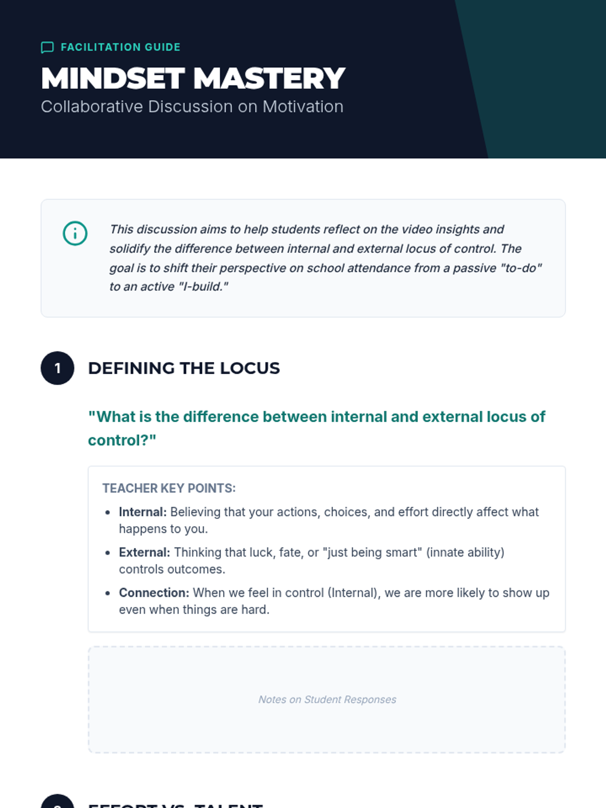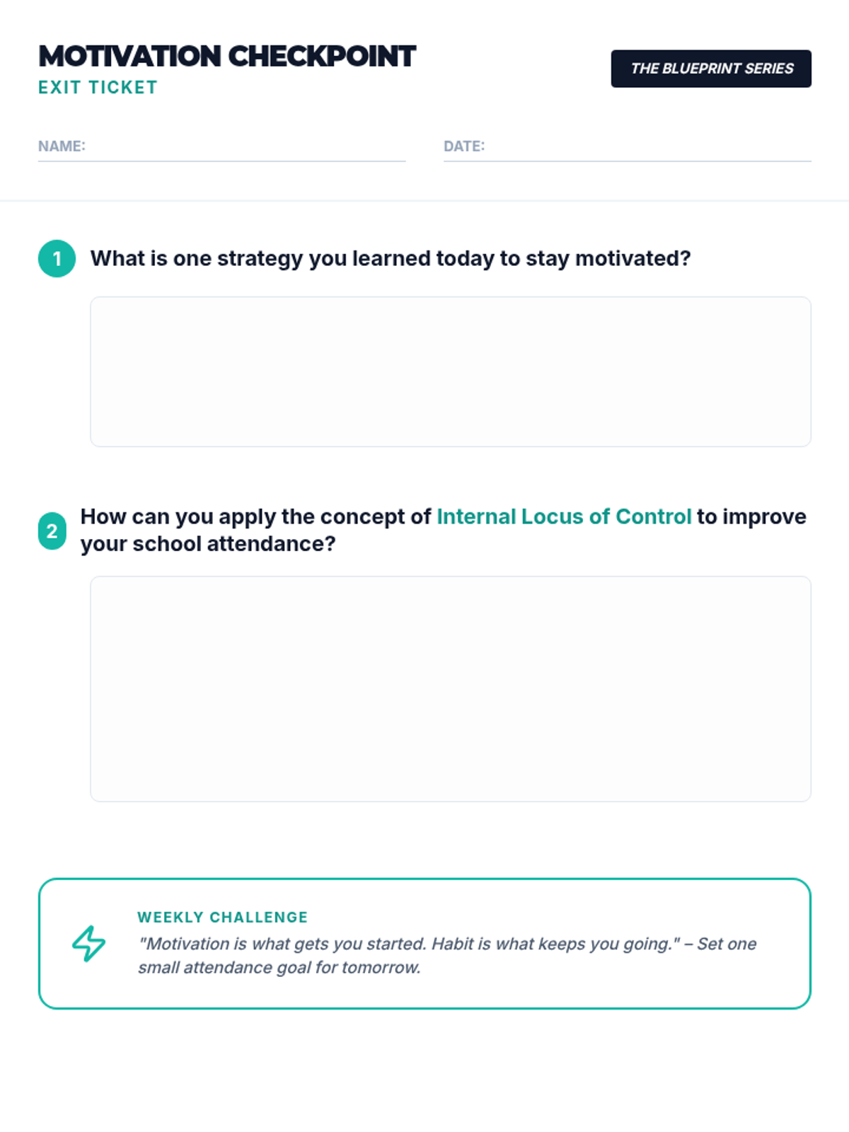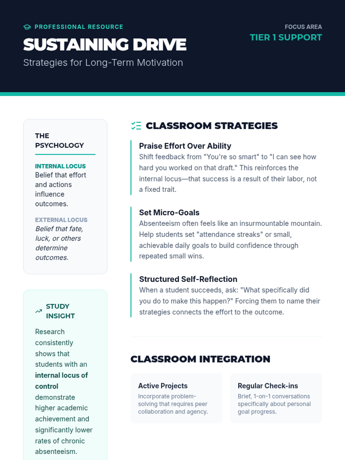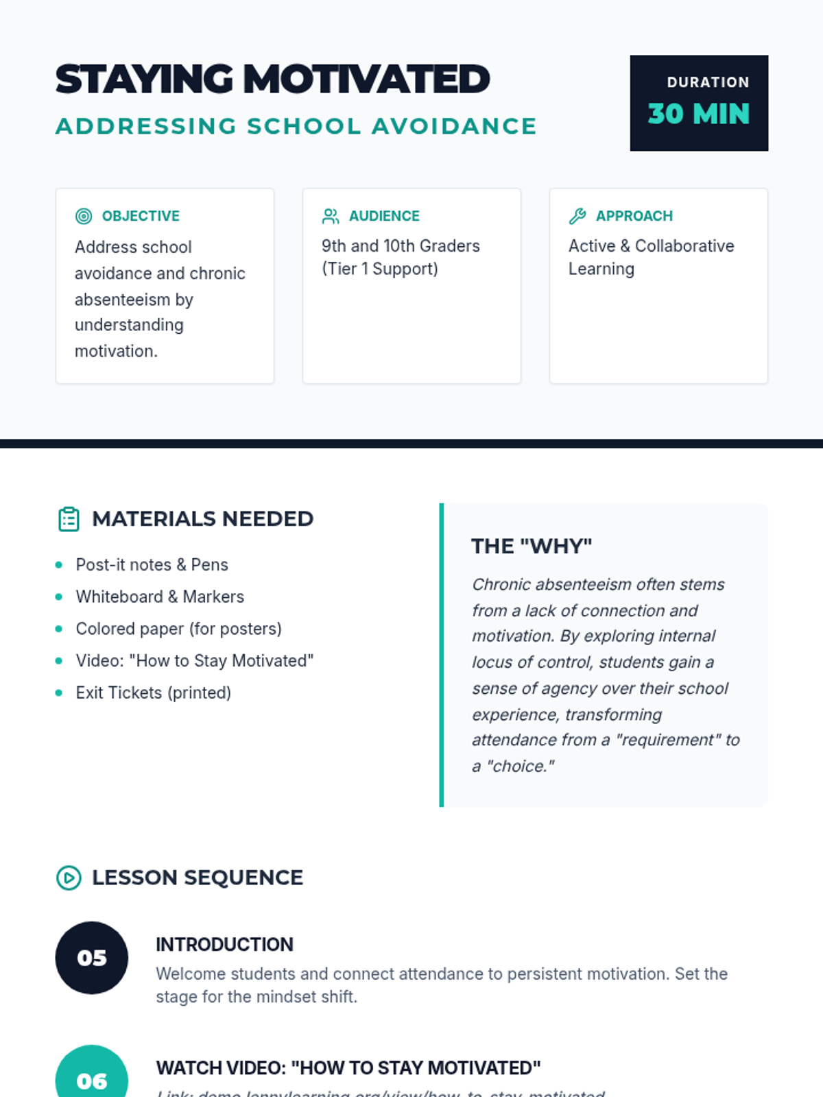 This lesson helps 9th and 10th-grade students understand the psychology of motivation to combat school avoidance. It focuses on internal vs. external locus of control and provides practical strategies for staying engaged with school.