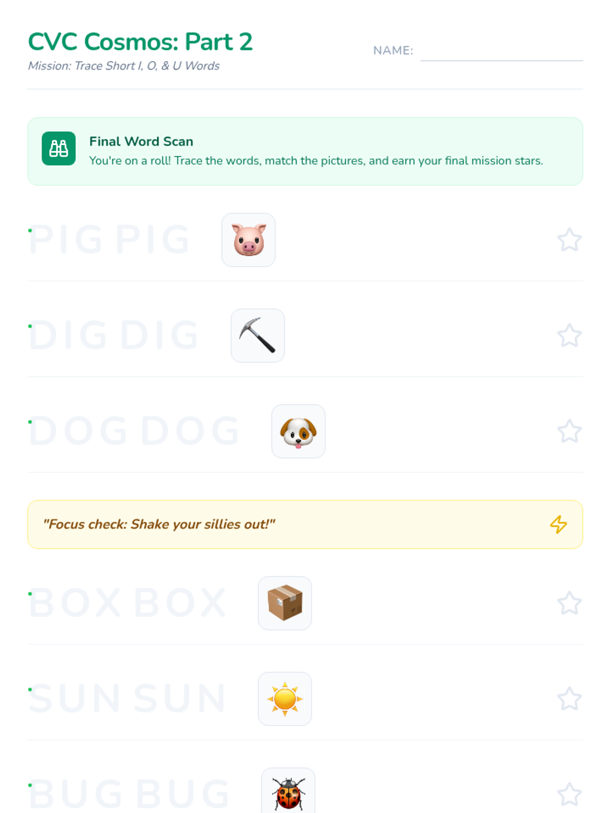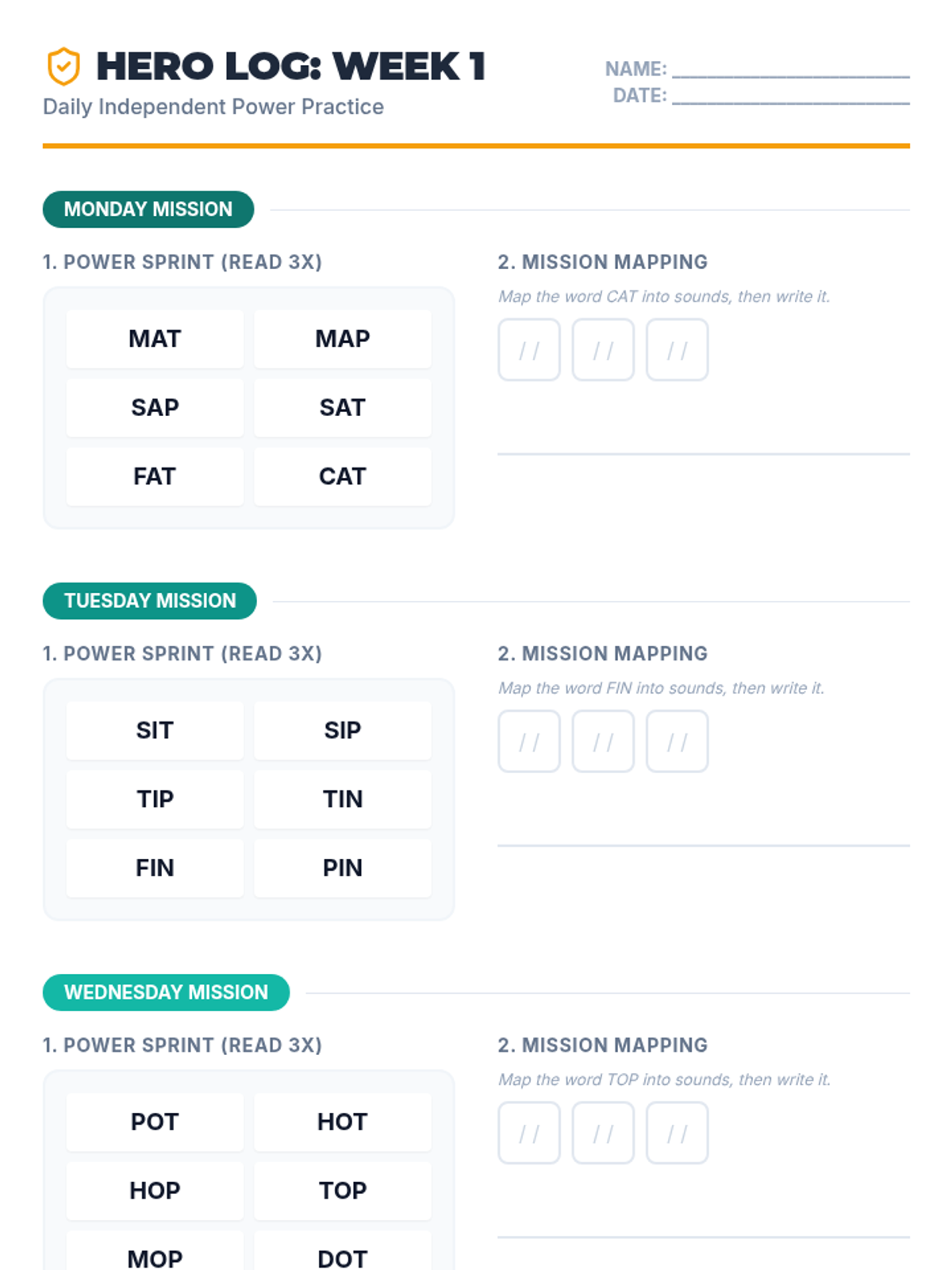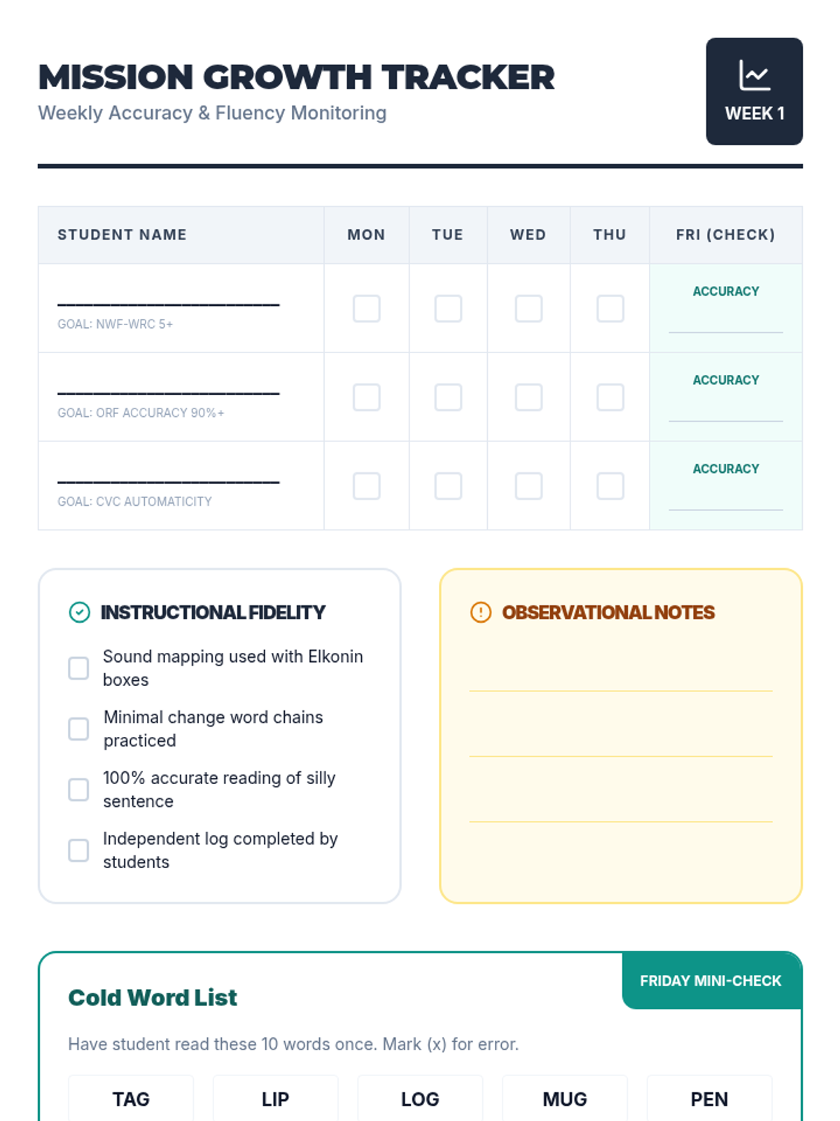 A foundational week of daily 20-minute routines focusing on CVC blending, phoneme-grapheme mapping, and sentence fluency to build student confidence and accuracy.
