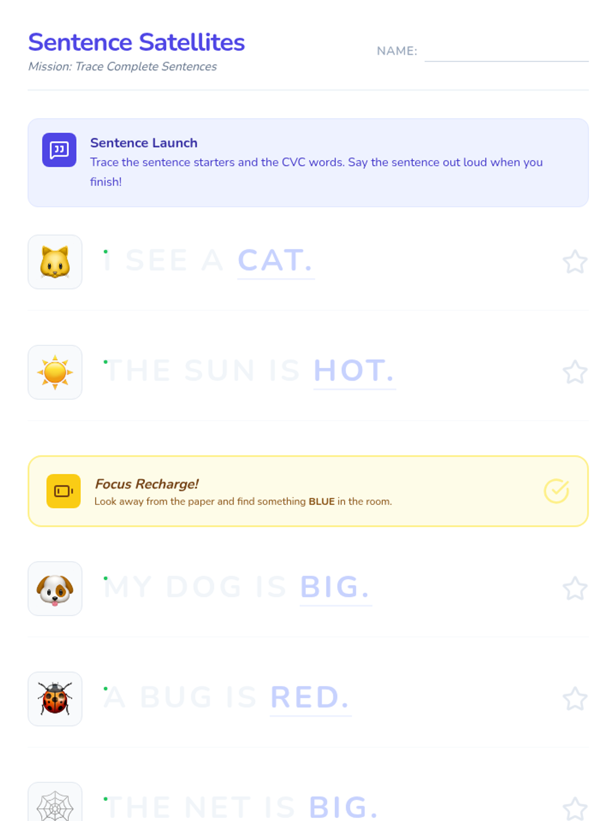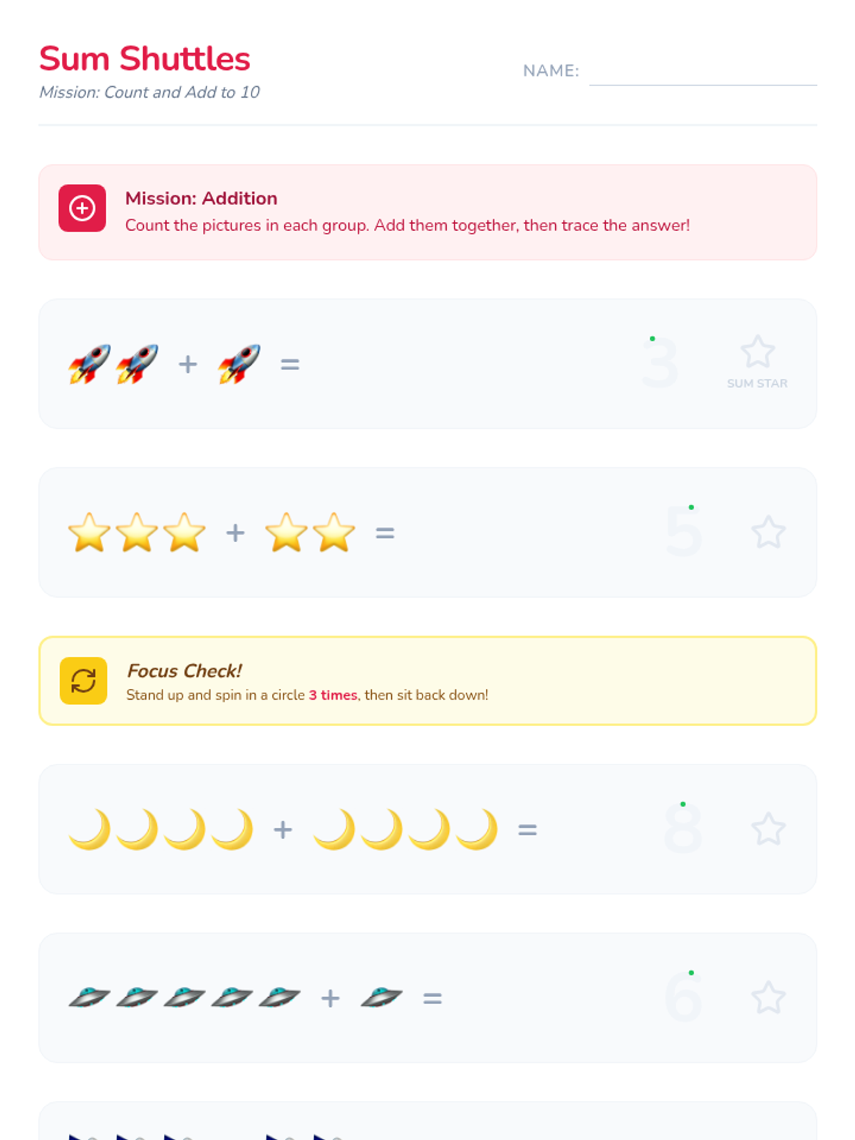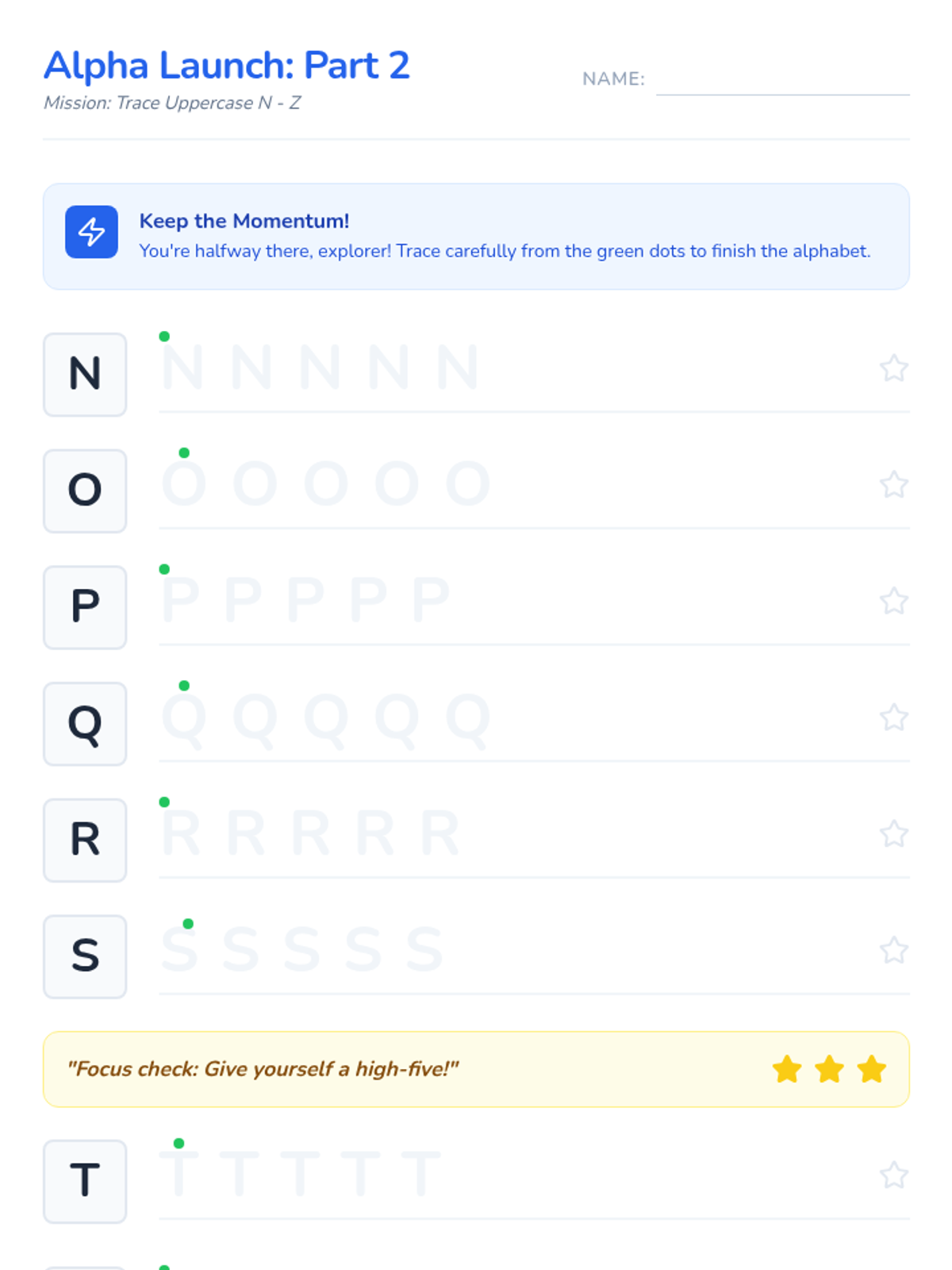 A series of focused tracing worksheets for 1st grade students with ADHD, featuring high-contrast paths, minimal distractions, and integrated reward stars.
