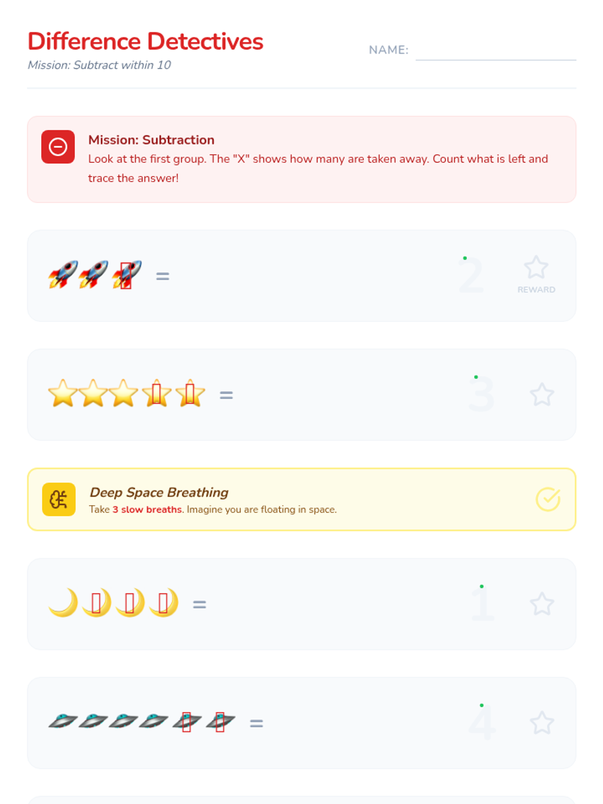 A comprehensive behavior tracking system designed for a 1st-grade student struggling with work refusal and transitions. The system uses a 30-minute incremental tracker, visual desk reminders, and a teacher implementation guide to foster safety and academic engagement.