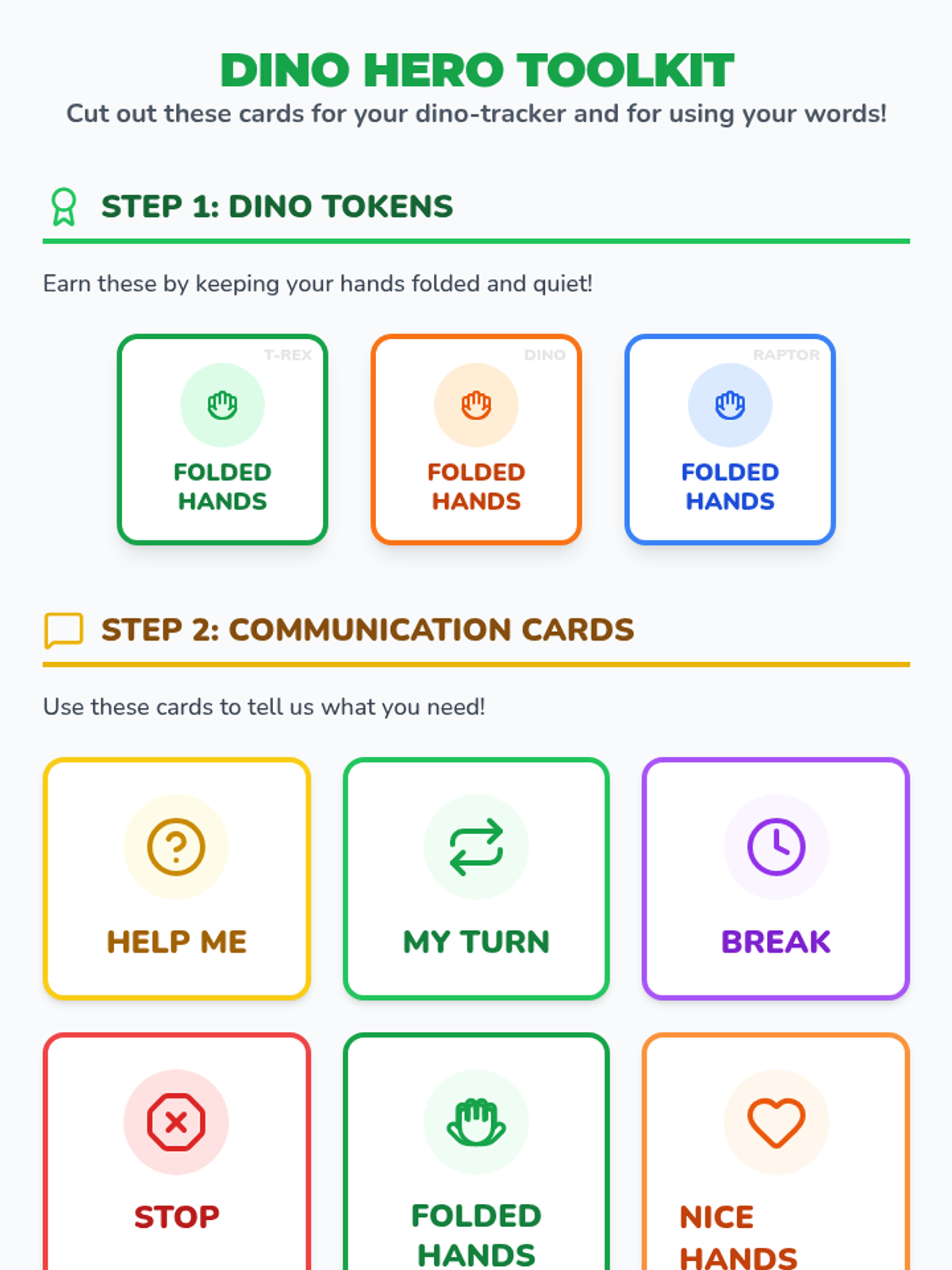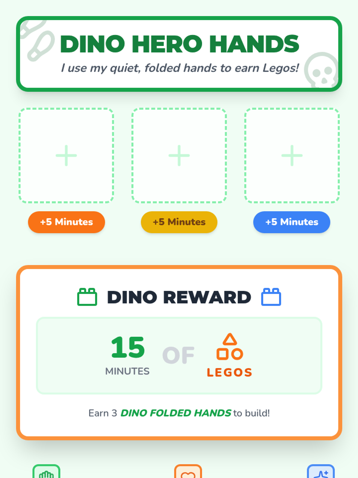 A visual behavior support system designed for a 4-year-old to encourage safe hands and functional communication using Lego-themed rewards.