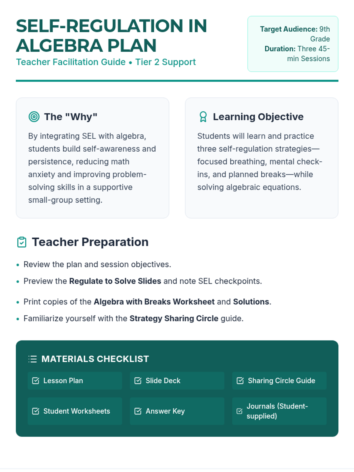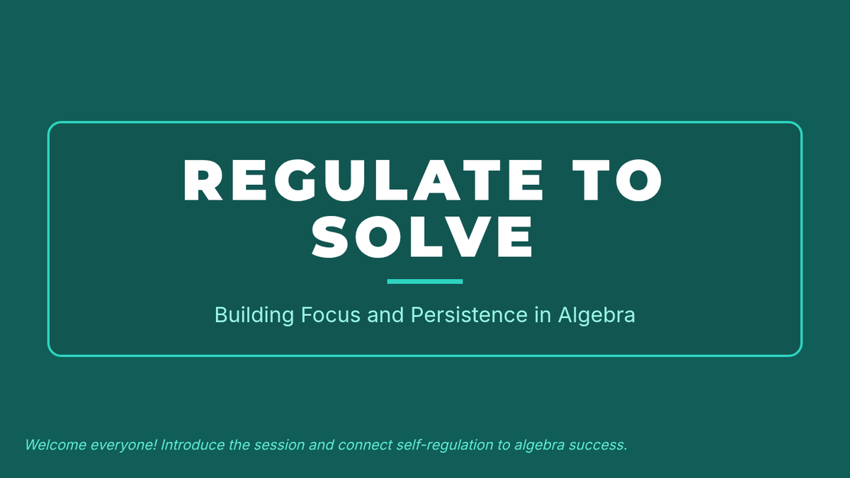 Introduce focused breathing as a tool for algebra success, focusing on one-step equations and grounding techniques.