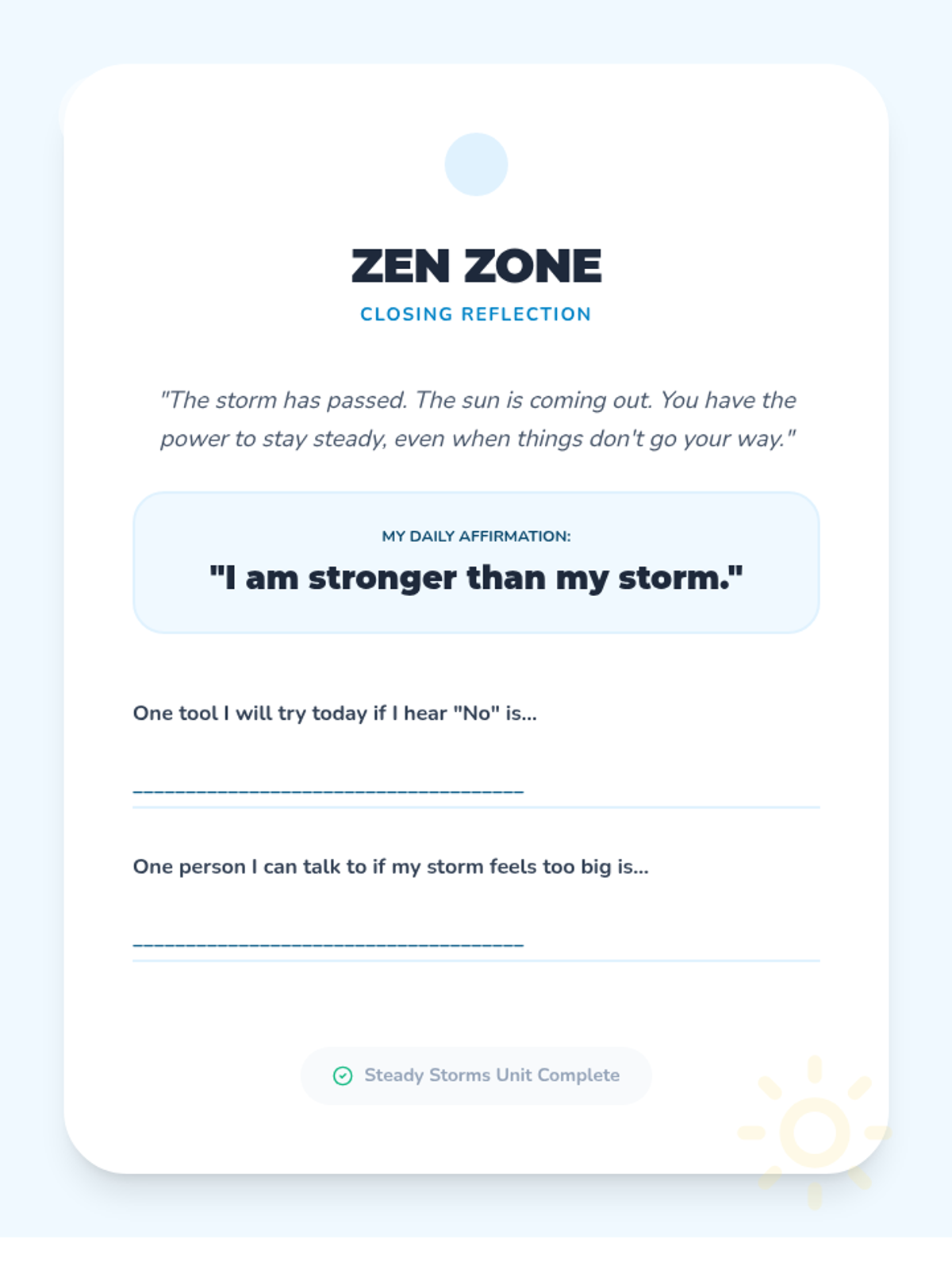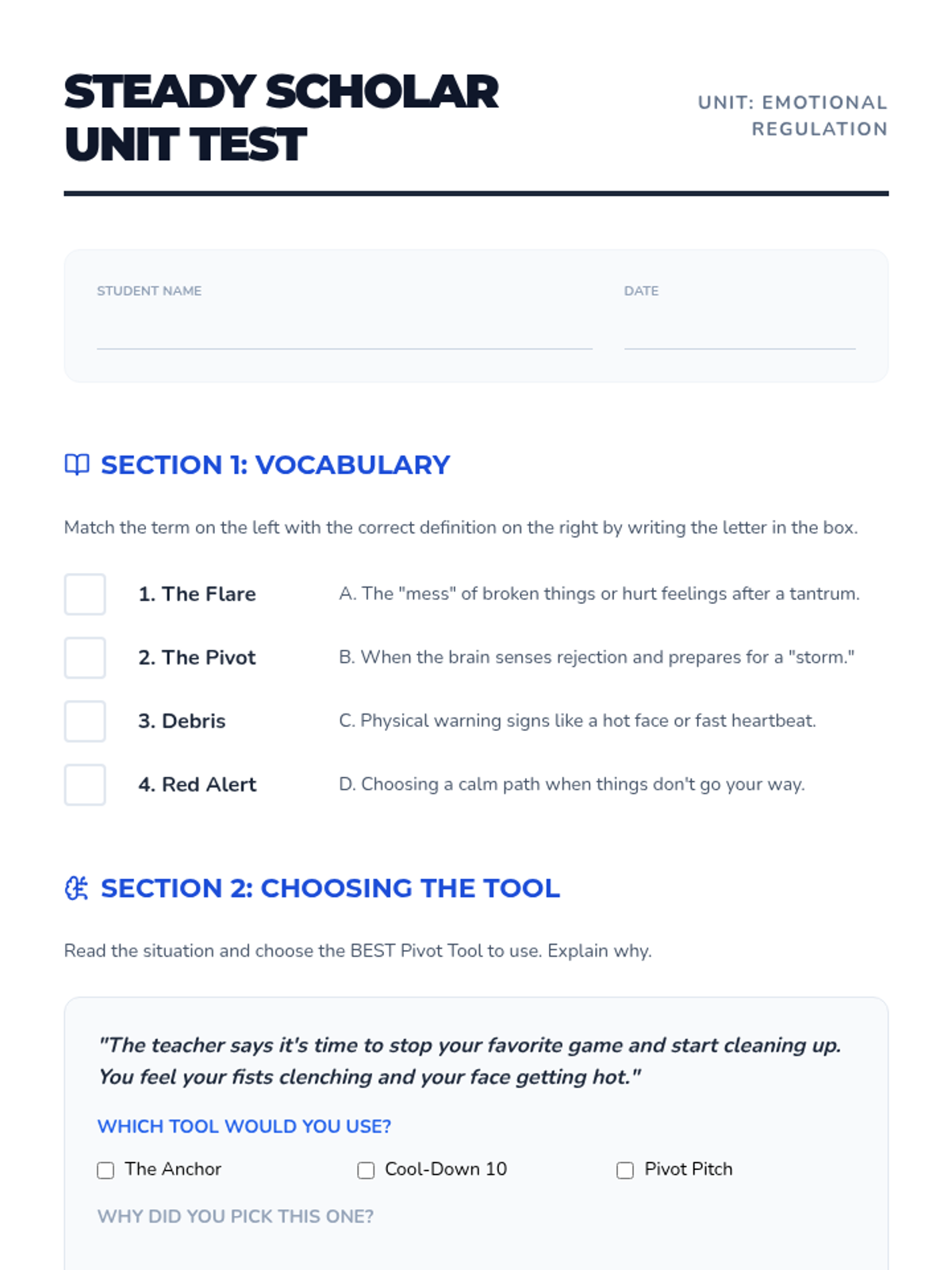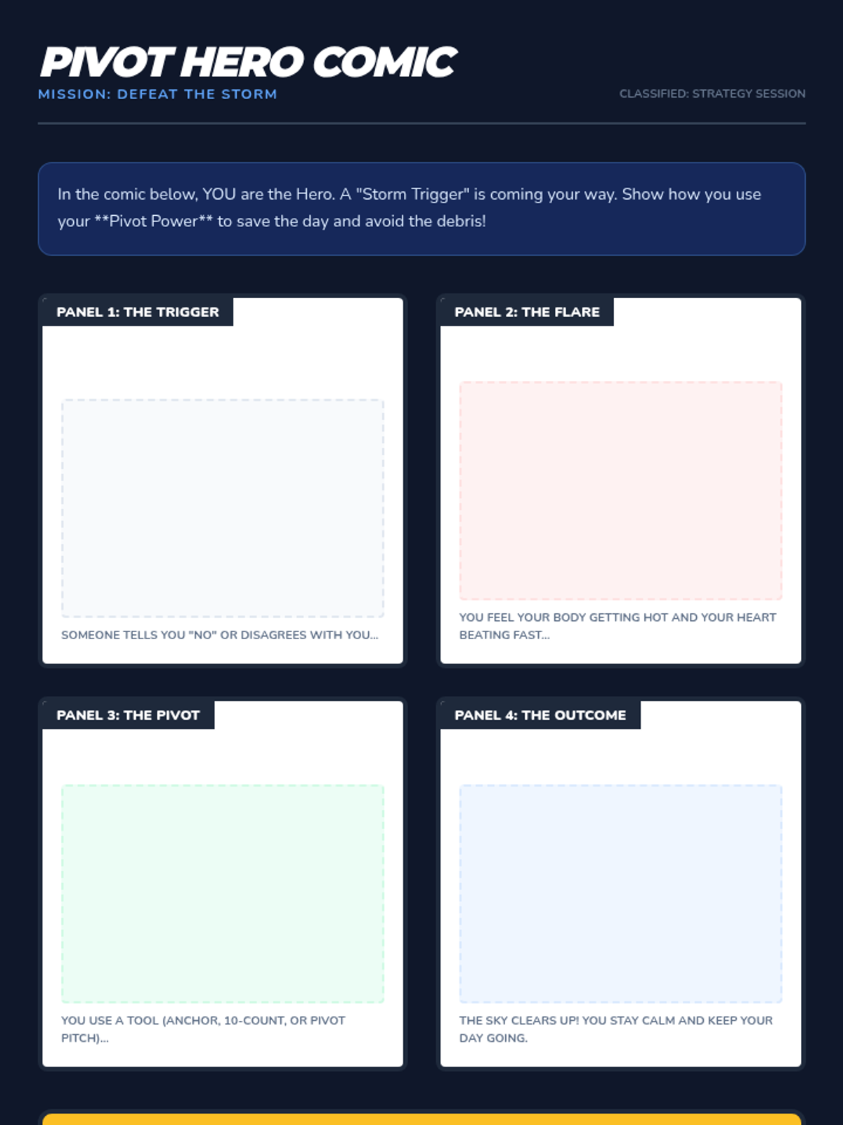 A comprehensive Social-Emotional Learning lesson focused on managing big emotions like anger and sadness when faced with disappointment, rejection, or disagreement. Students learn to identify their 'inner weather' and use 'pivoting' strategies to stay calm.