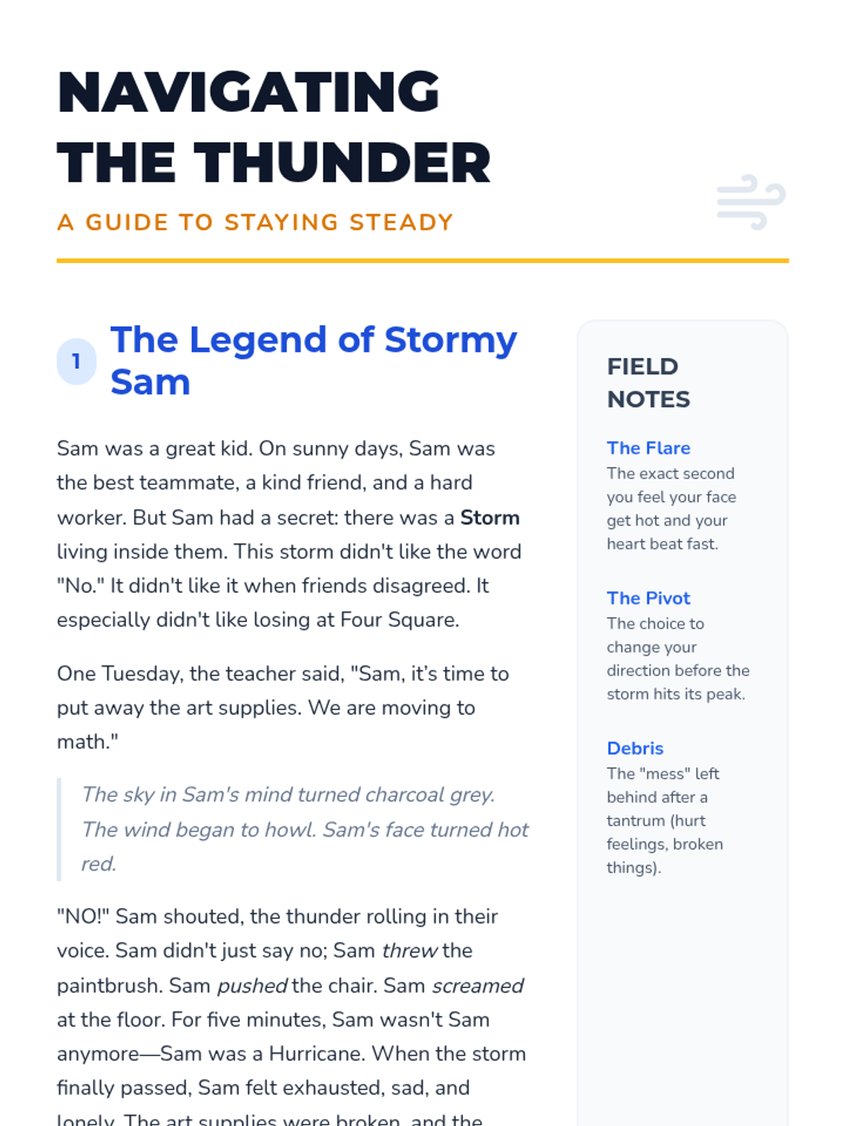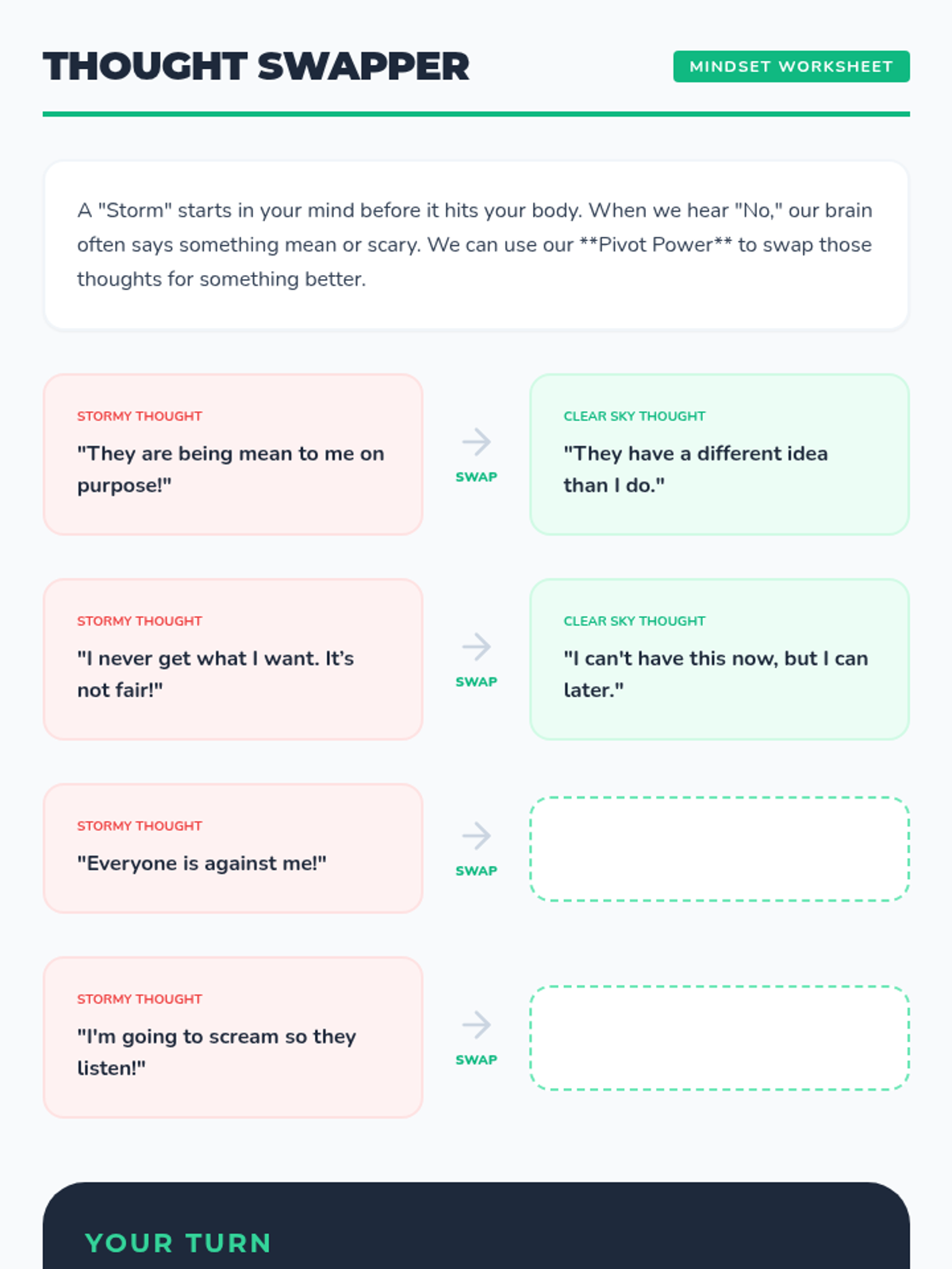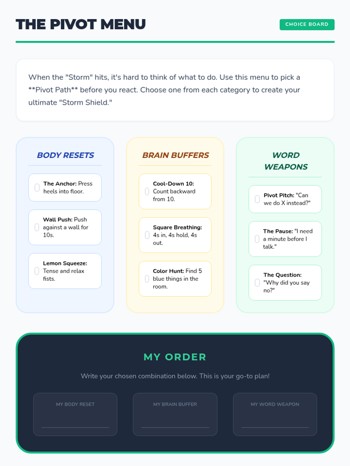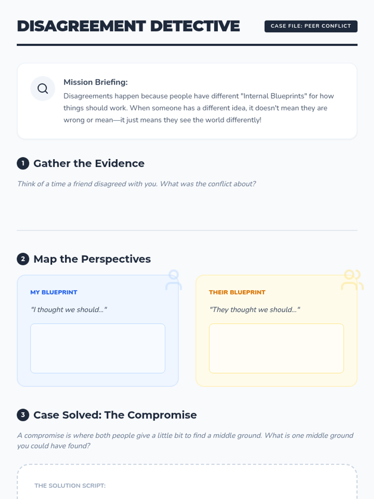 A comprehensive Social-Emotional Learning lesson focused on managing big emotions like anger and sadness when faced with disappointment, rejection, or disagreement. Students learn to identify their 'inner weather' and use 'pivoting' strategies to stay calm.