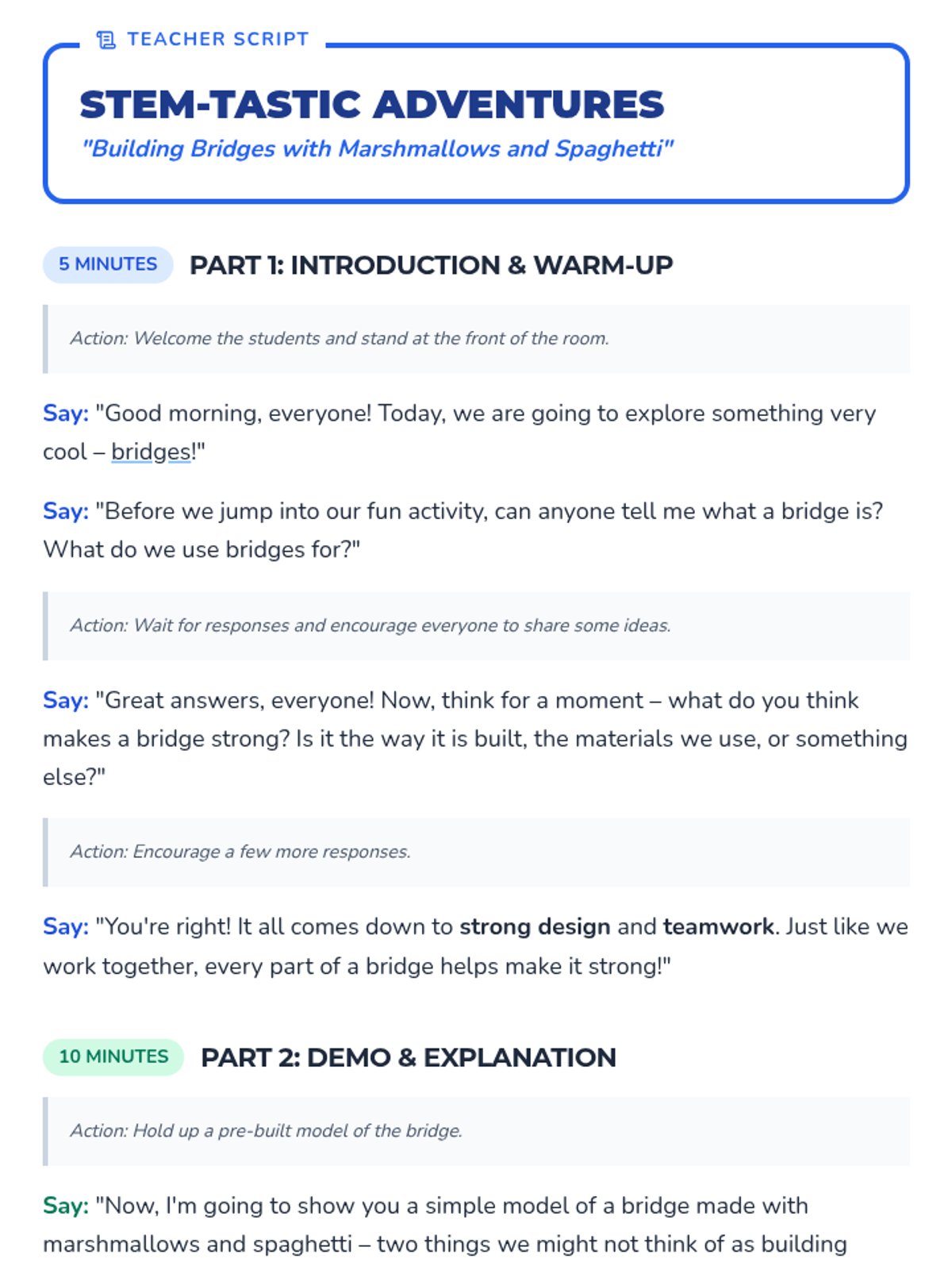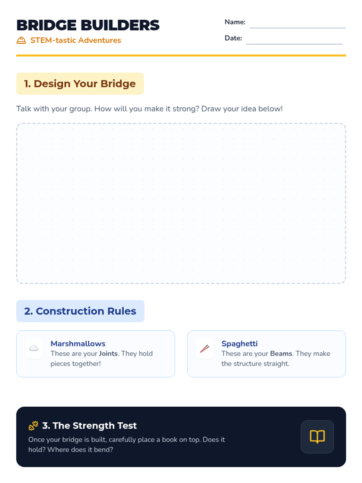 A hands-on STEM lesson for K-2 students exploring basic engineering through building bridges with marshmallows and spaghetti.