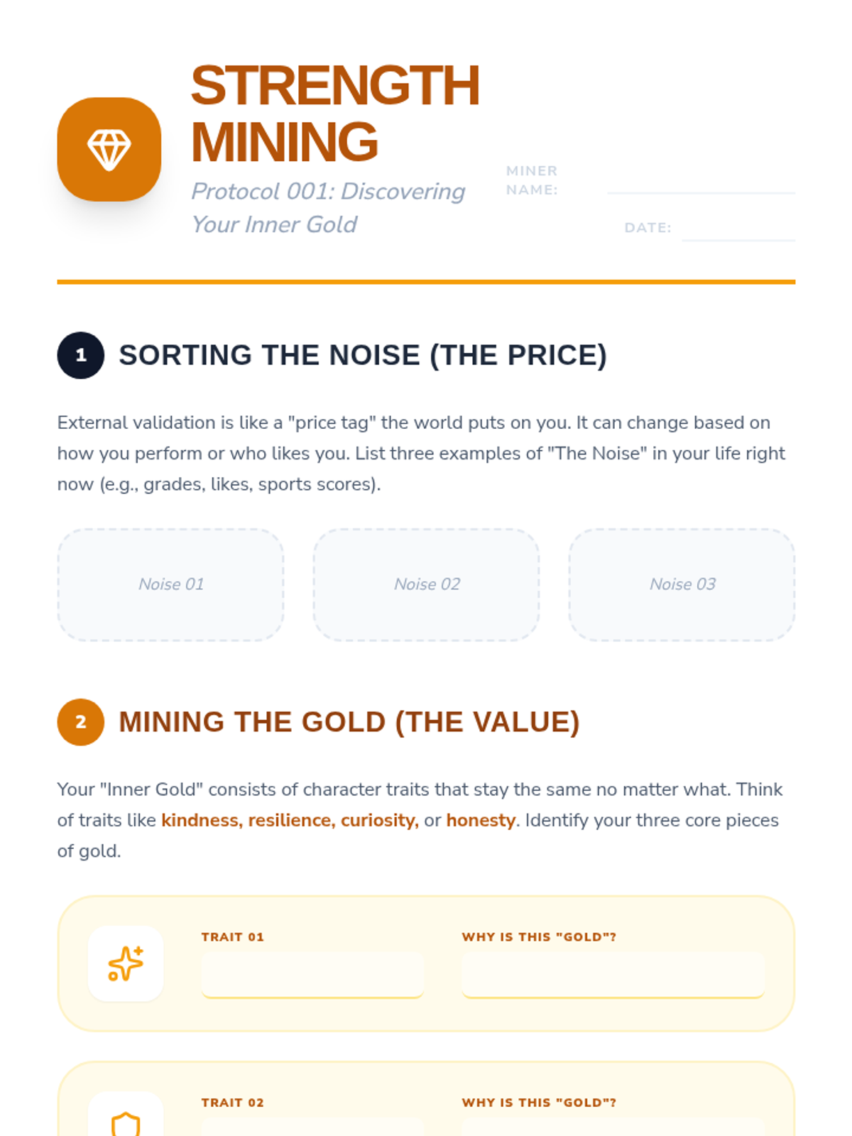 A 30-minute foundational session for middle schoolers on self-worth, distinguishing between internal value and external validation through the 'Inner Gold' metaphor.