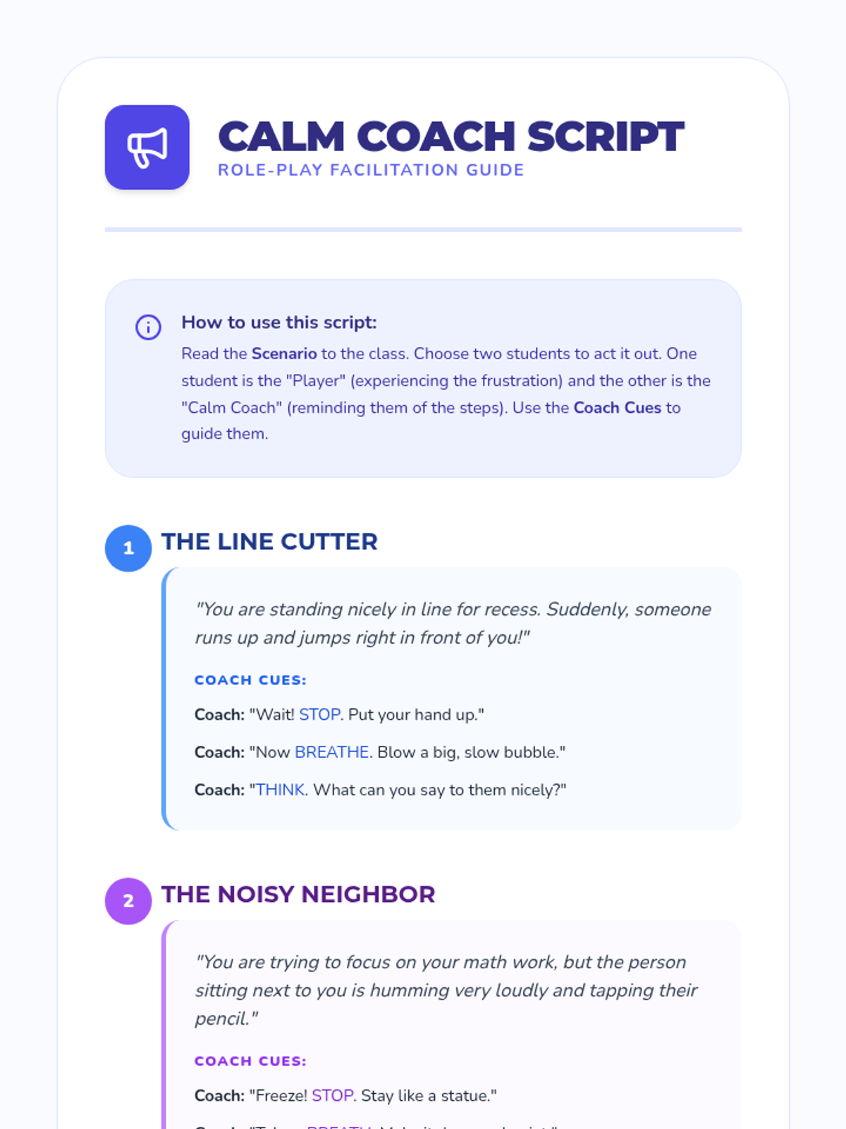 A lesson designed to help students distinguish between Small and Big Problems and choose safe regulation strategies instead of physical reactions. It includes a social story, practice worksheet, and strategy reference guide.