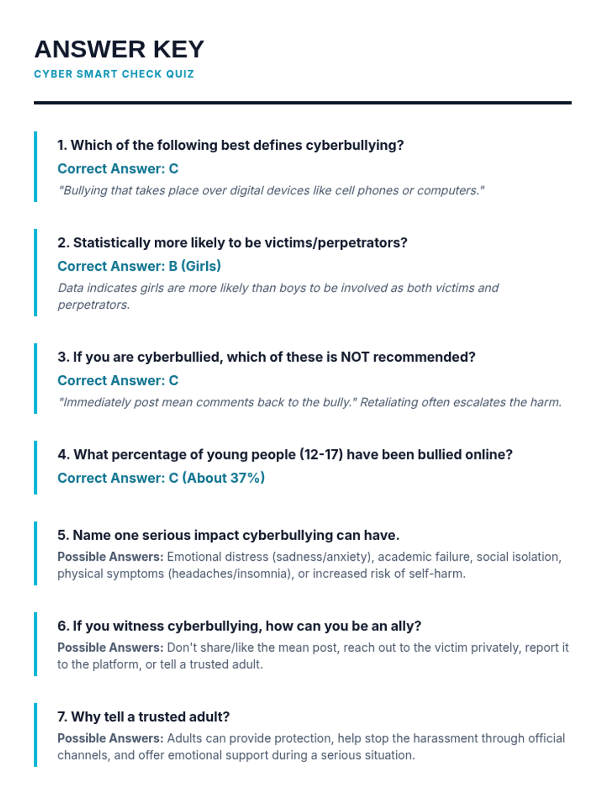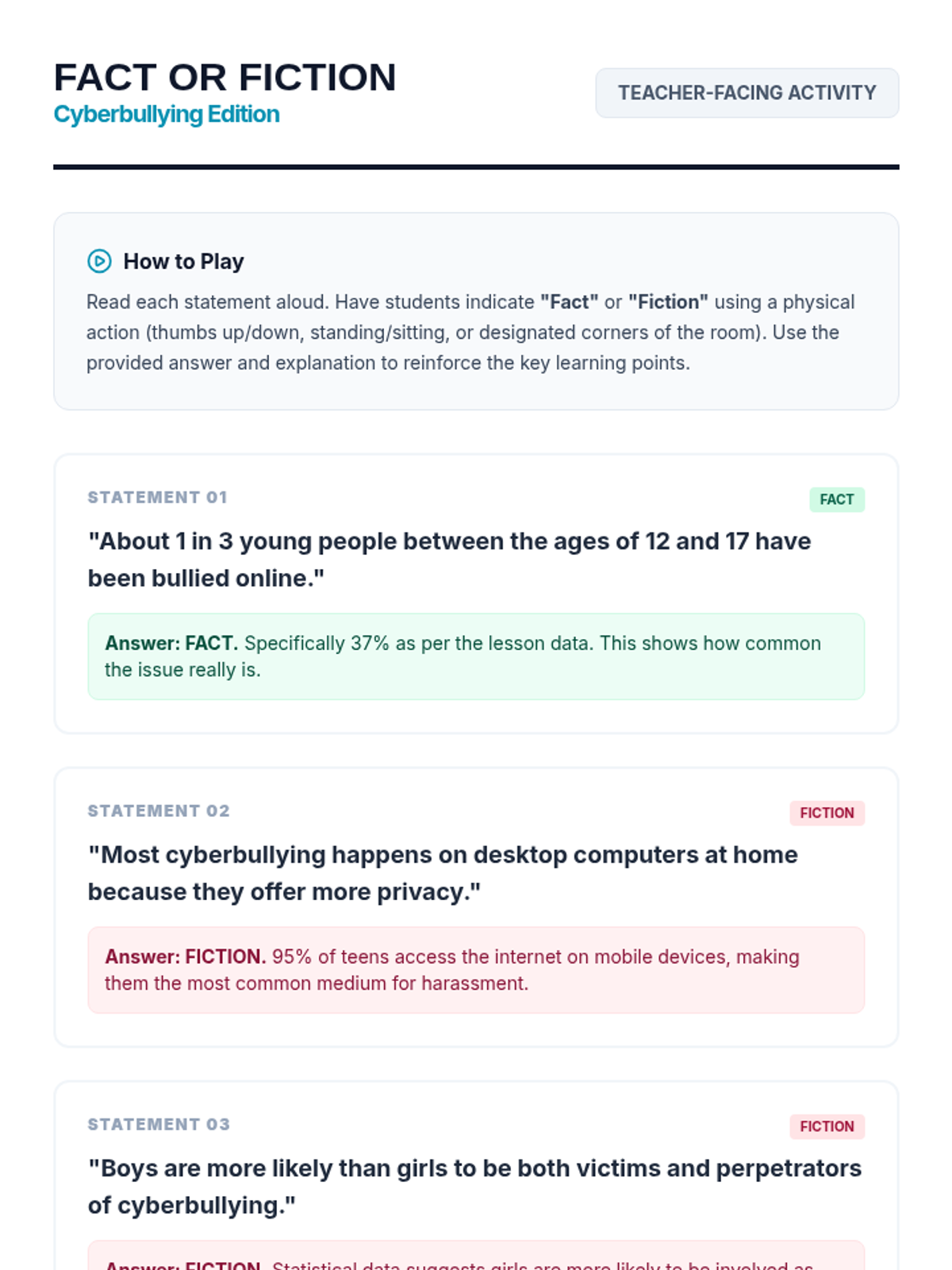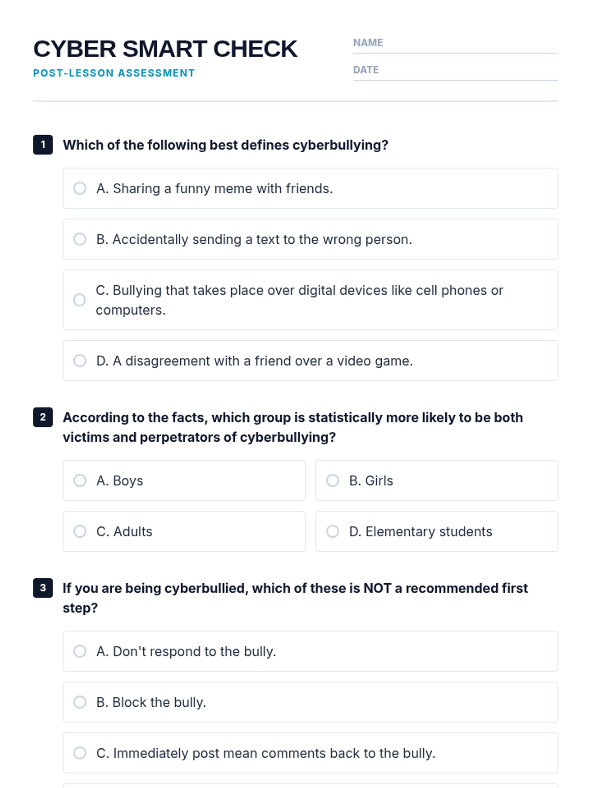 This 45-minute lesson for youth explores the prevalence and impact of cyberbullying, empowering students to identify, prevent, and respond to online harassment. Students will learn how to be allies and advocate for a safer online environment.
