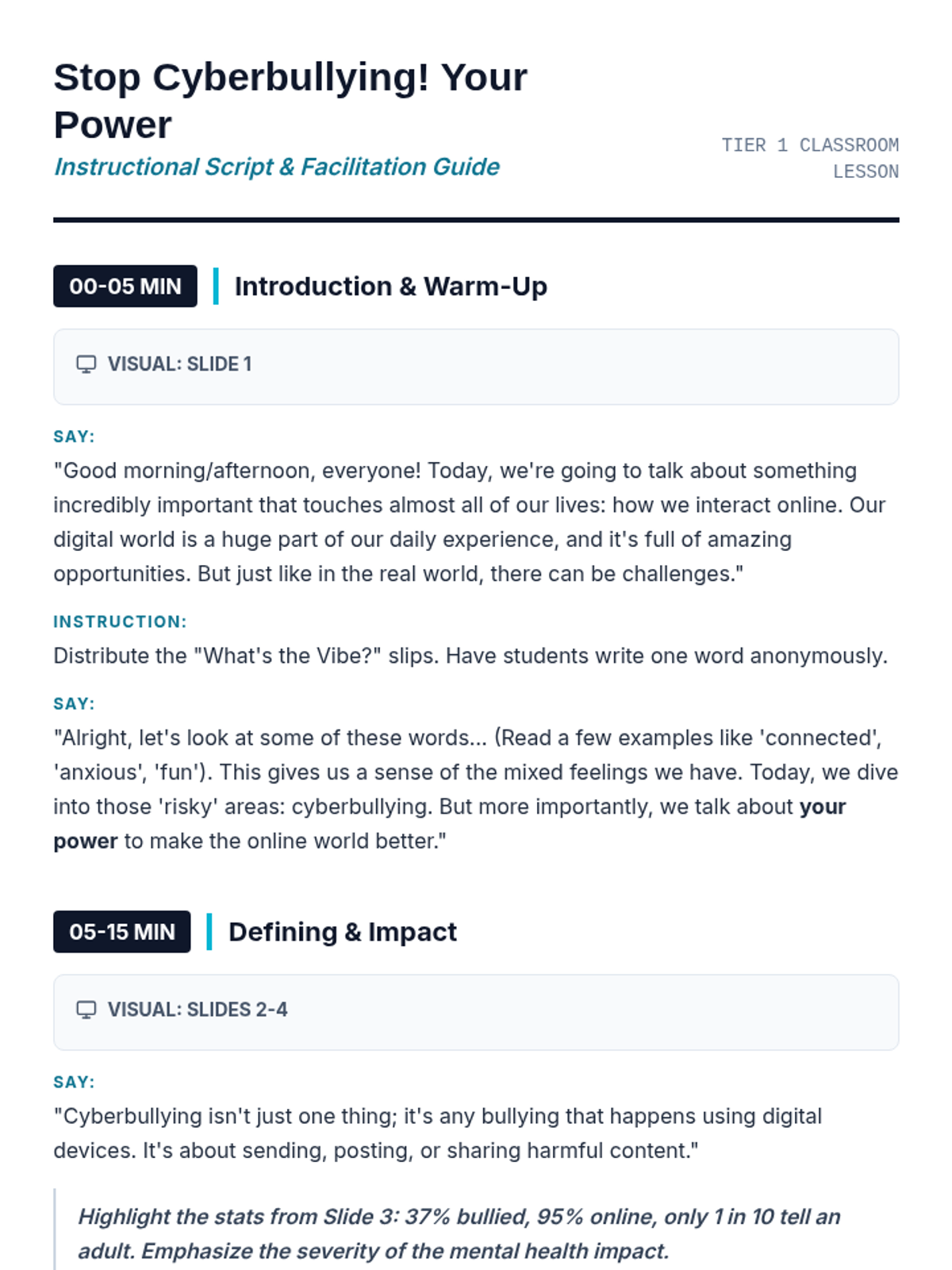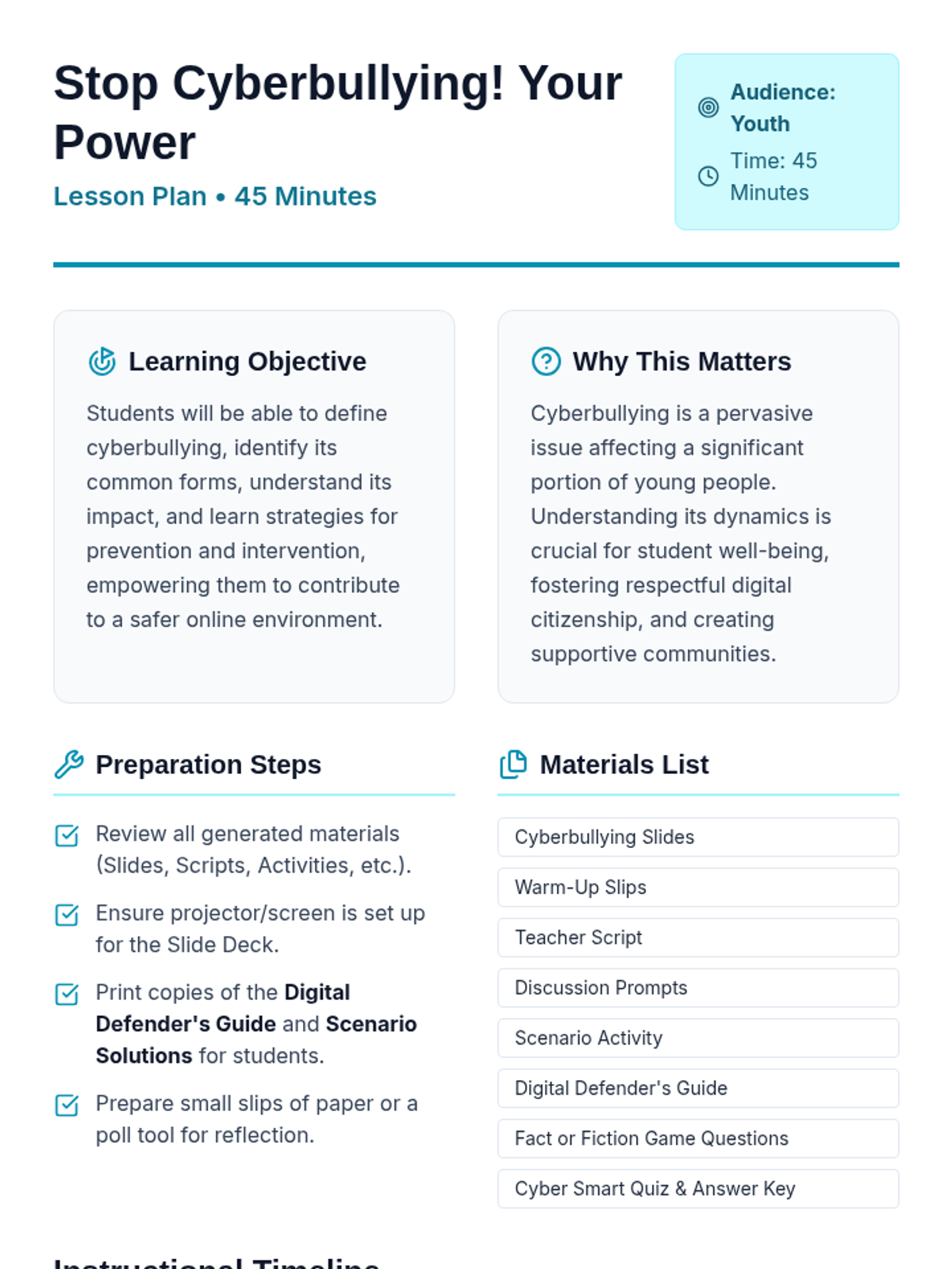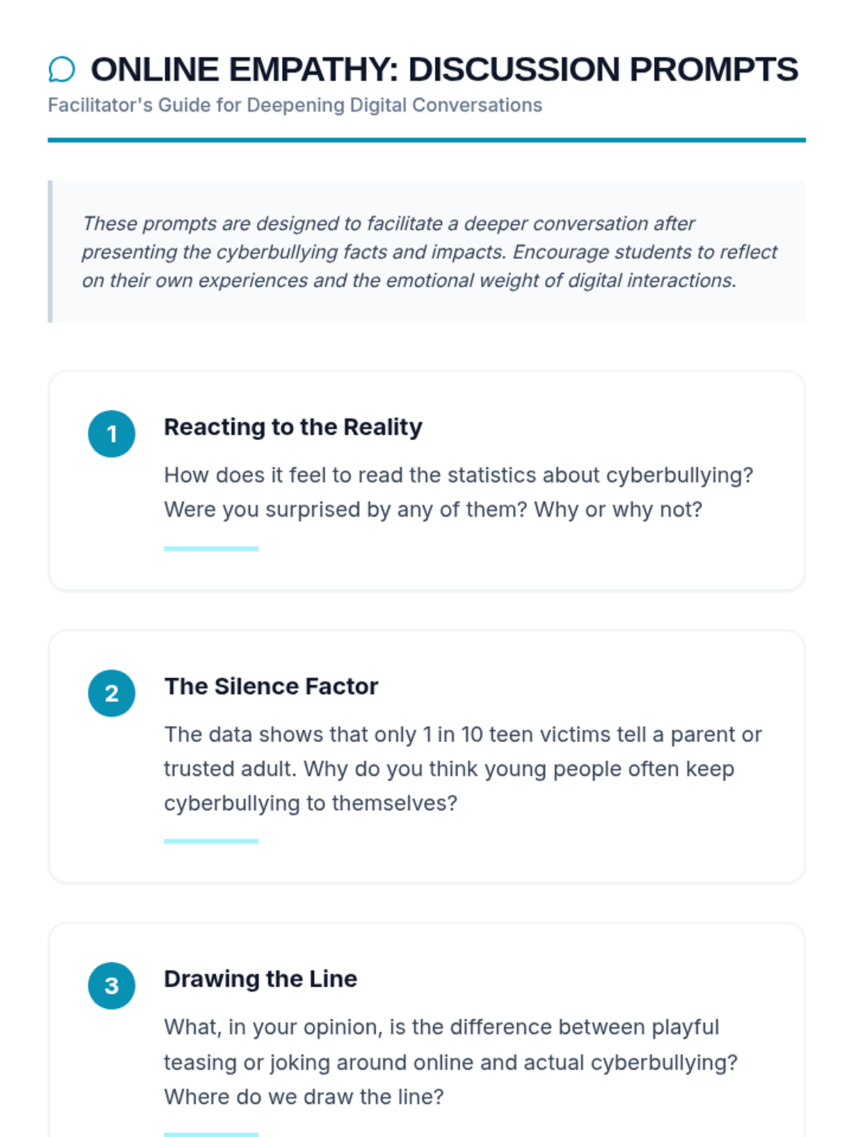 This 45-minute lesson for youth explores the prevalence and impact of cyberbullying, empowering students to identify, prevent, and respond to online harassment. Students will learn how to be allies and advocate for a safer online environment.
