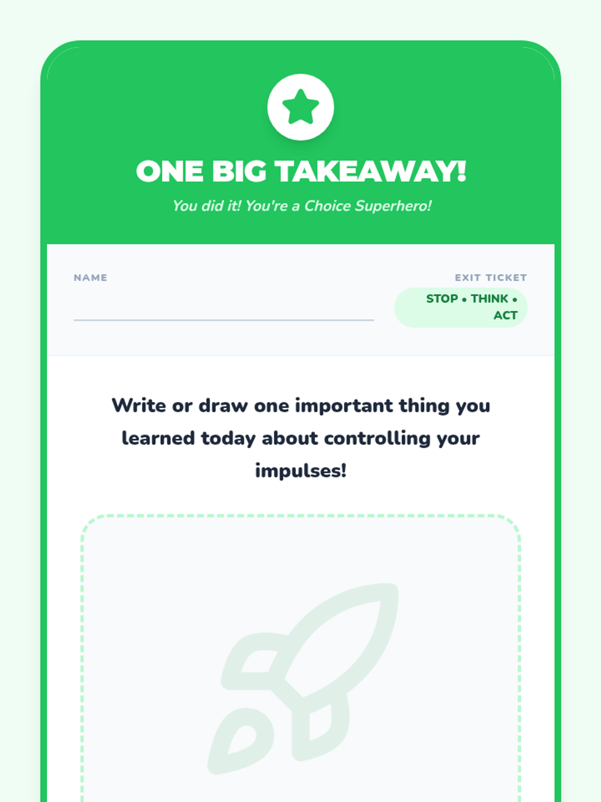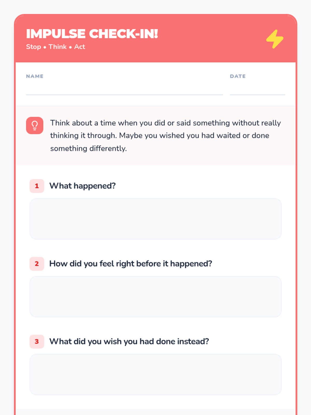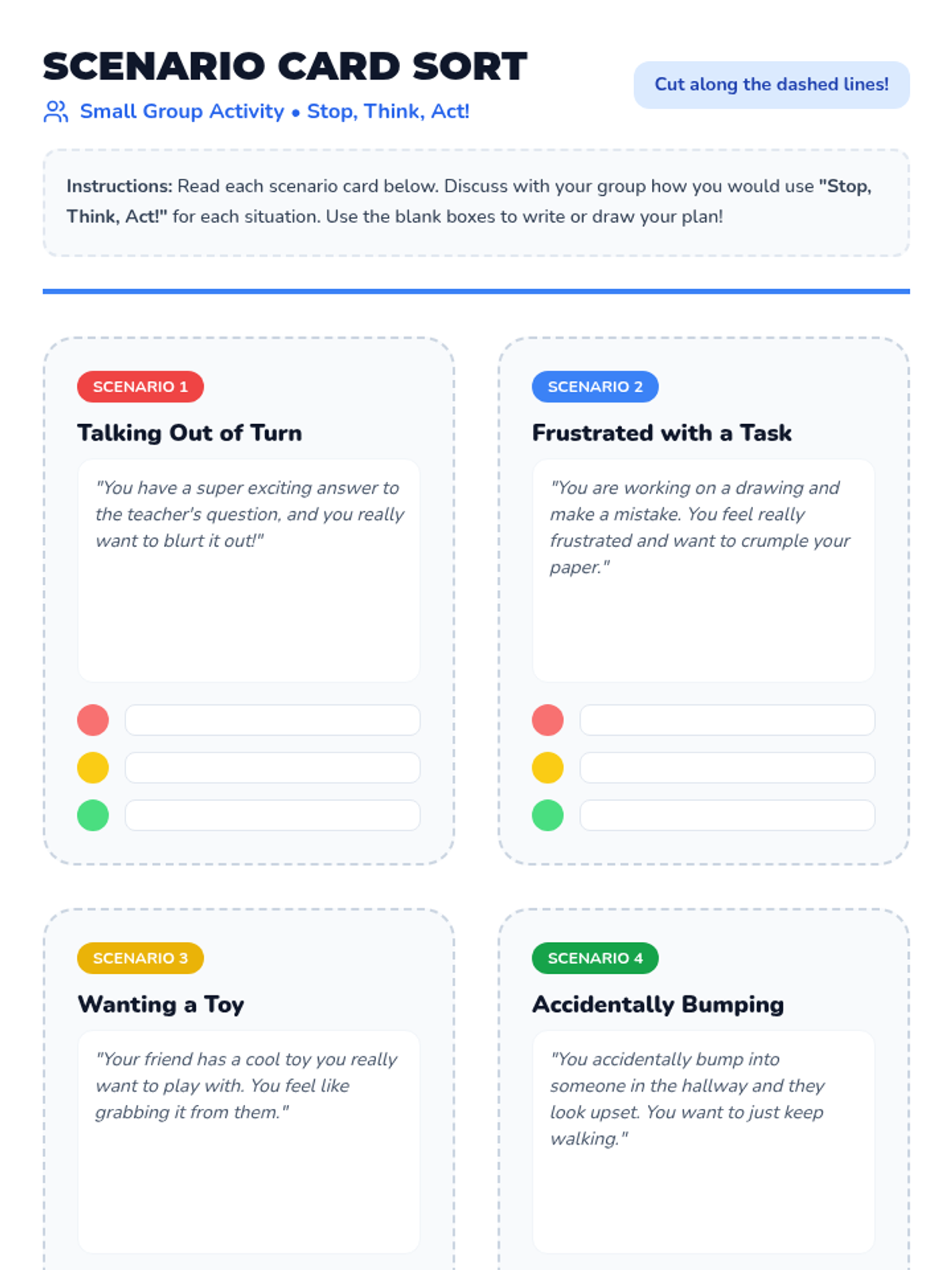 A 25-minute Tier 2 small group lesson for 2nd grade students focused on self-regulation and impulse control using the 'Stop, Think, Act' strategy. Students learn to identify impulses and apply a three-step process to make positive classroom choices.