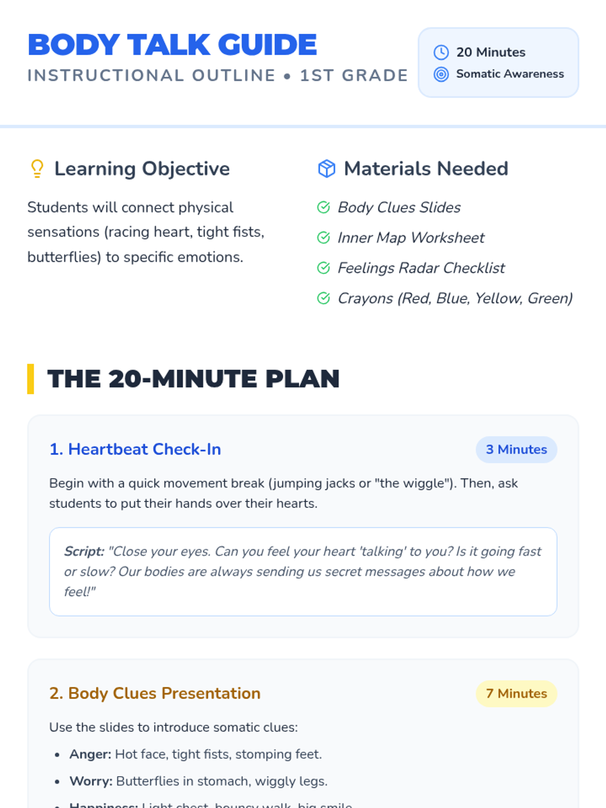 A 30-minute counseling lesson focused on identifying the fight-or-flight response and utilizing grounding 'anchors' to prevent regressive panic behaviors. Students will learn to recognize physical 'storm signals' and deploy immediate soothing techniques.