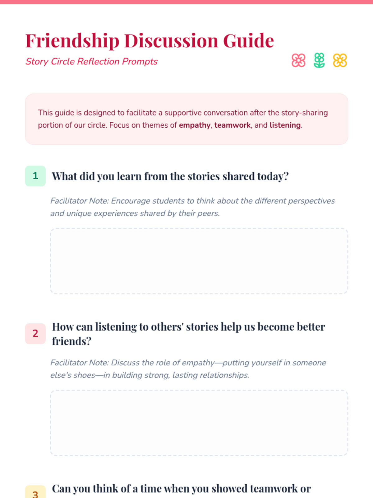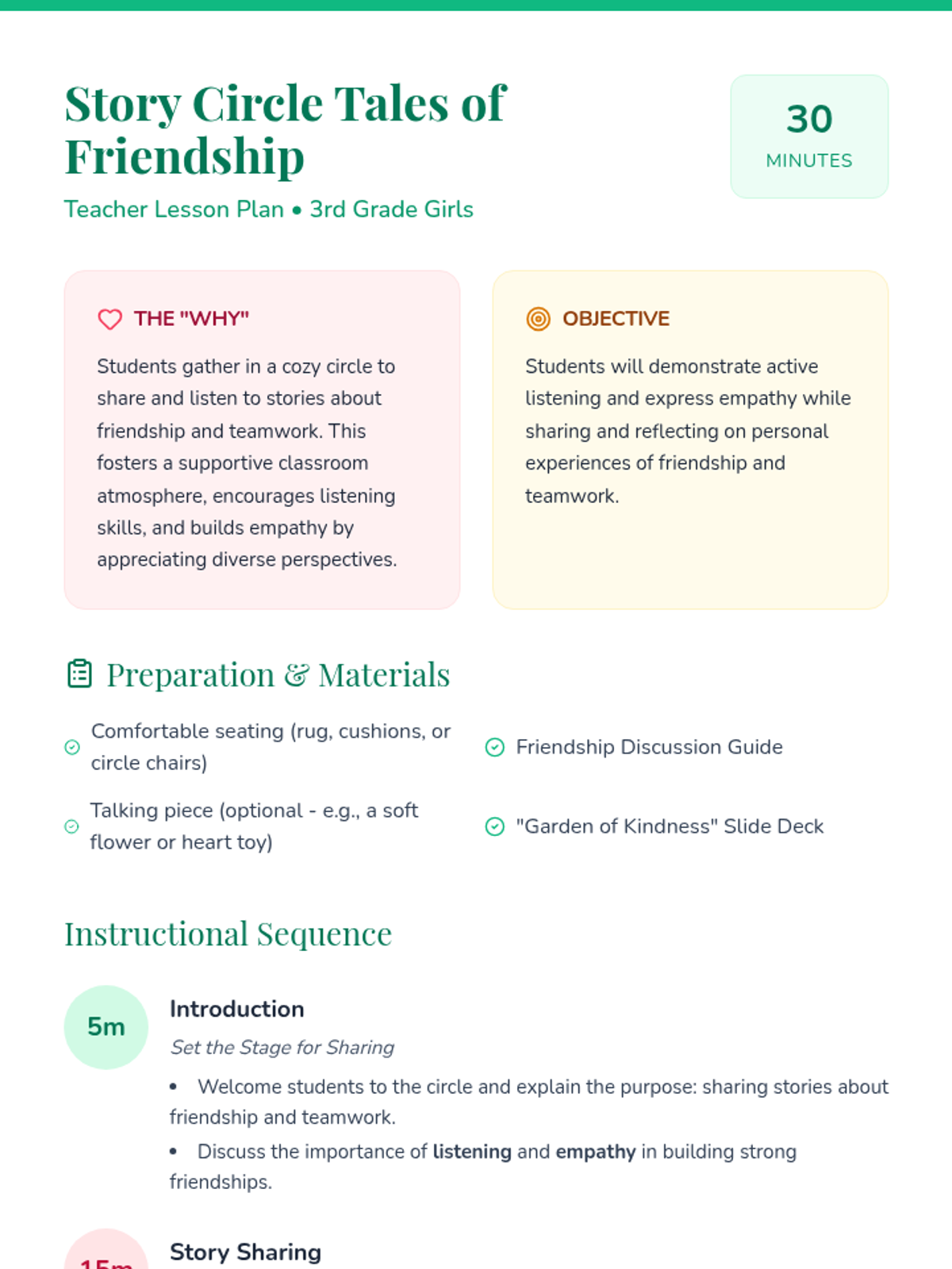 A 30-minute classroom activity for 3rd grade girls focused on building empathy and listening skills through personal story sharing in a supportive circle.
