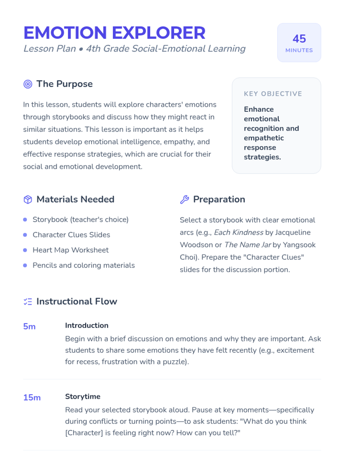 A 4th-grade social-emotional learning lesson that uses storybooks to help students identify character emotions and connect them to their own lives.