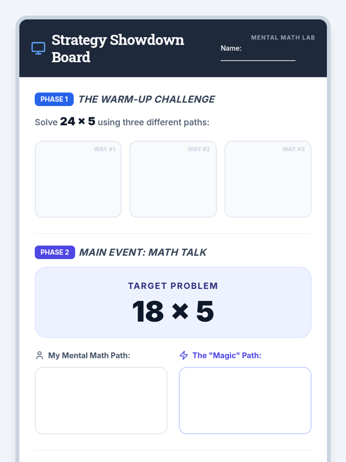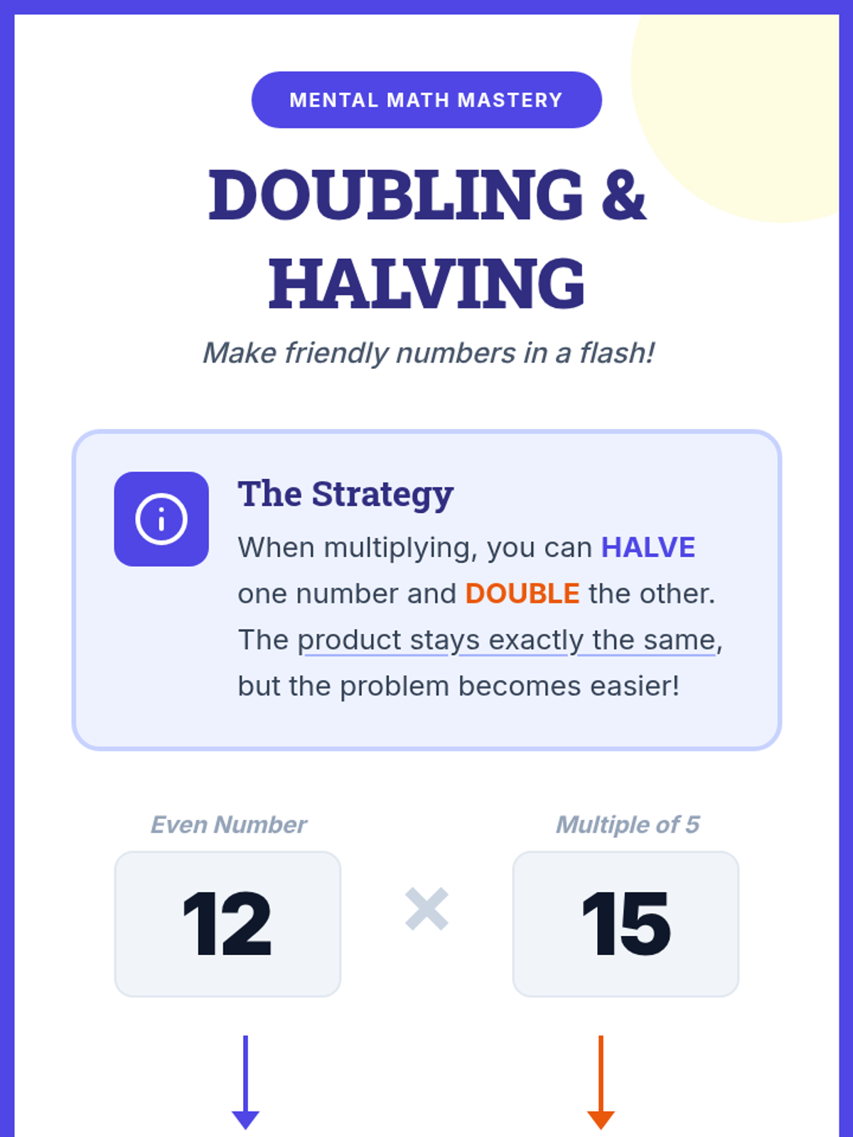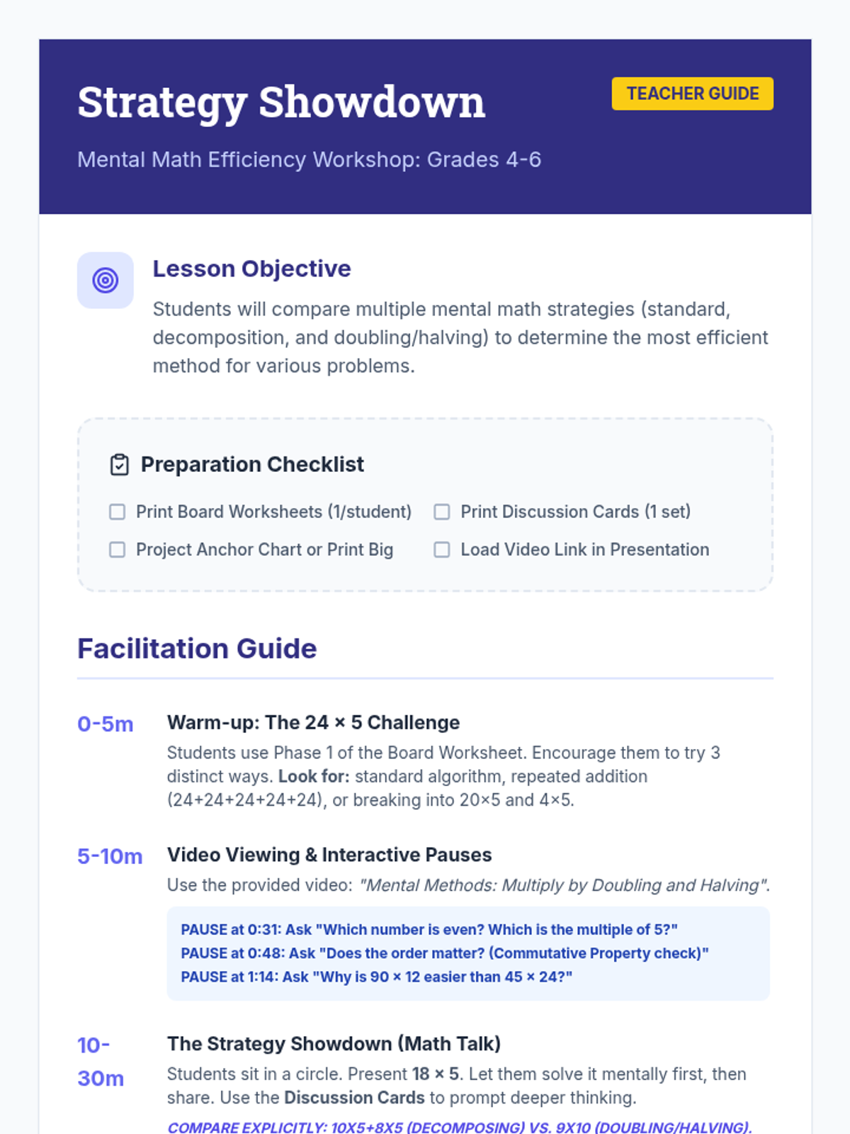 A mental math workshop where students compare strategies like doubling and halving to find the most efficient way to solve multiplication problems.