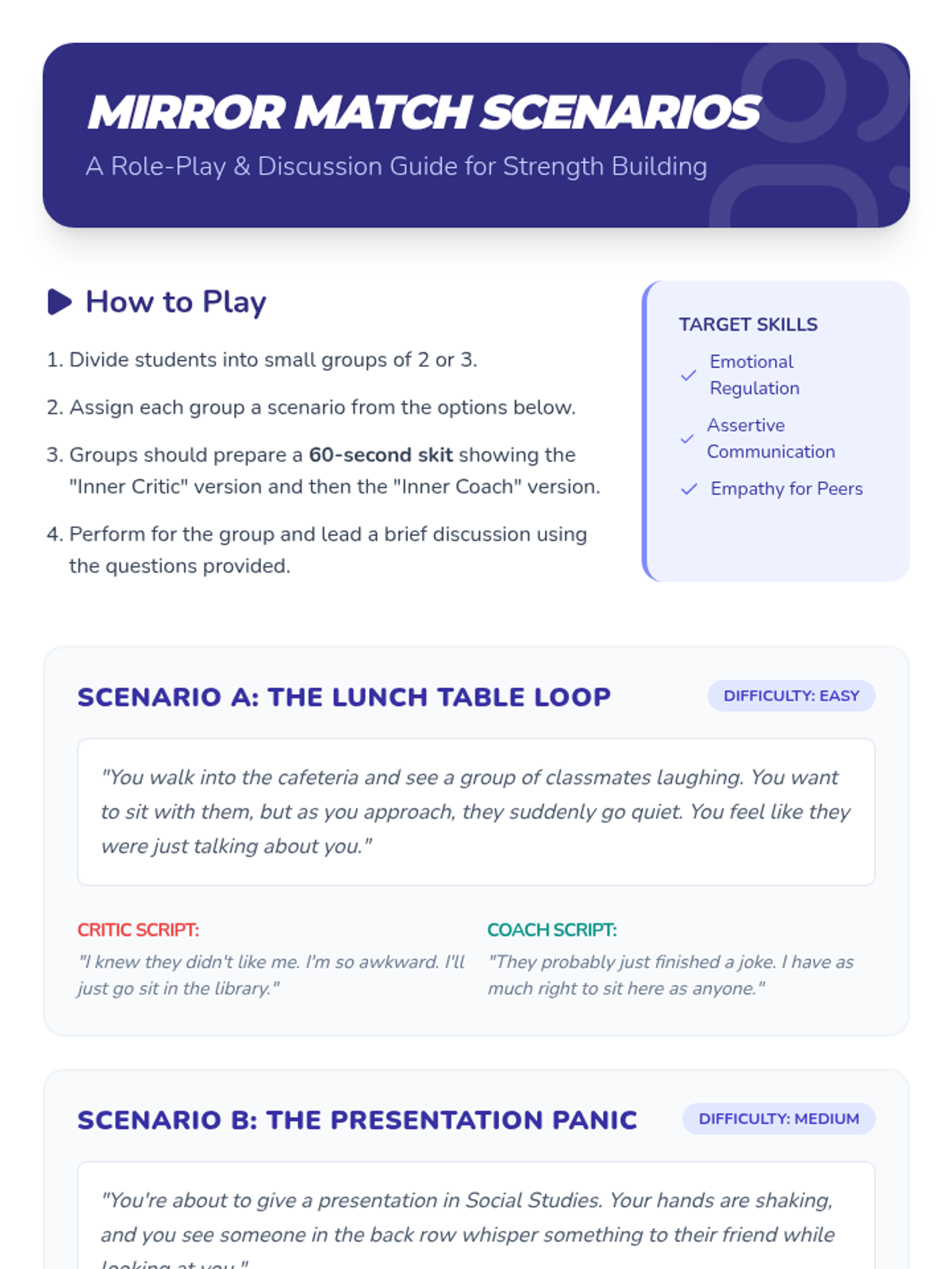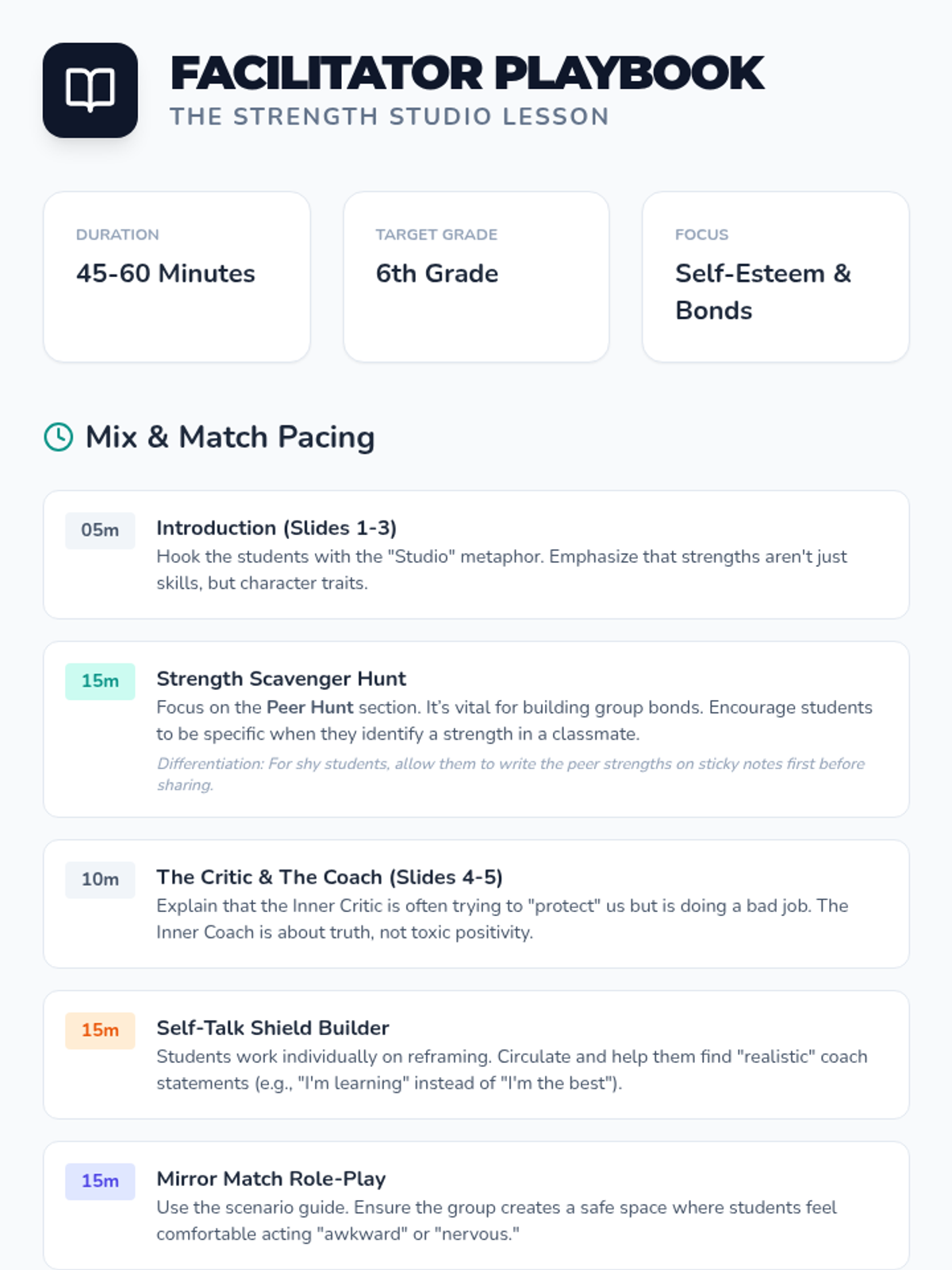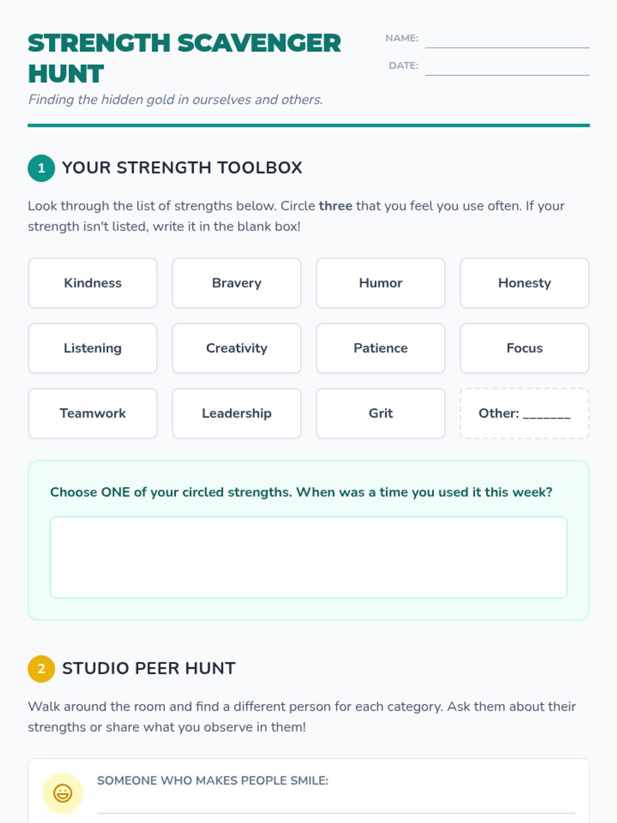 A lesson focused on building self-esteem and group cohesion through identifying personal strengths and practicing positive self-talk.