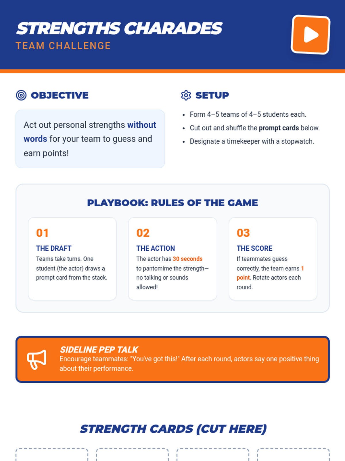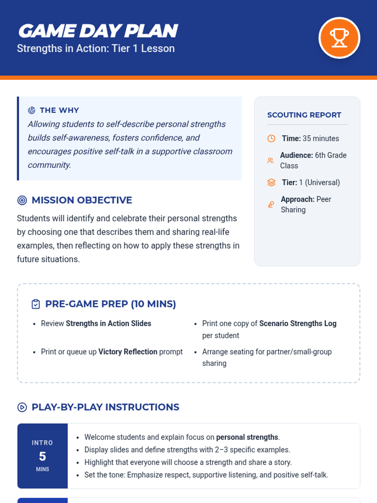 A high-energy game-based lesson for 6th graders to discover personal strengths in real-life scenarios, encouraging quick thinking and positive self-talk. This Tier 1 session equips students with awareness and confidence in their unique abilities.